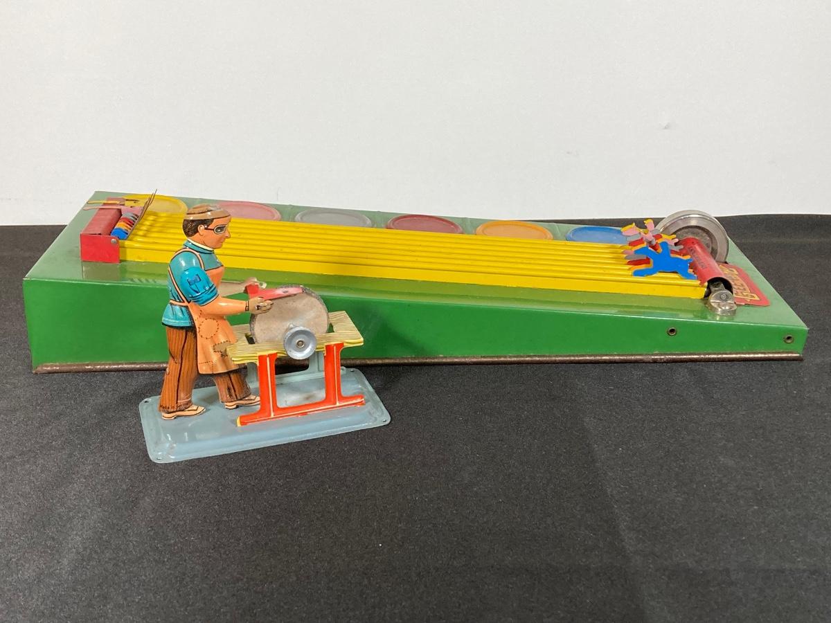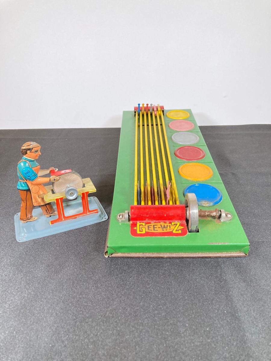LOT 27J: Vintage Tin Toy Collection - Grinding Stone and Gee Wiz