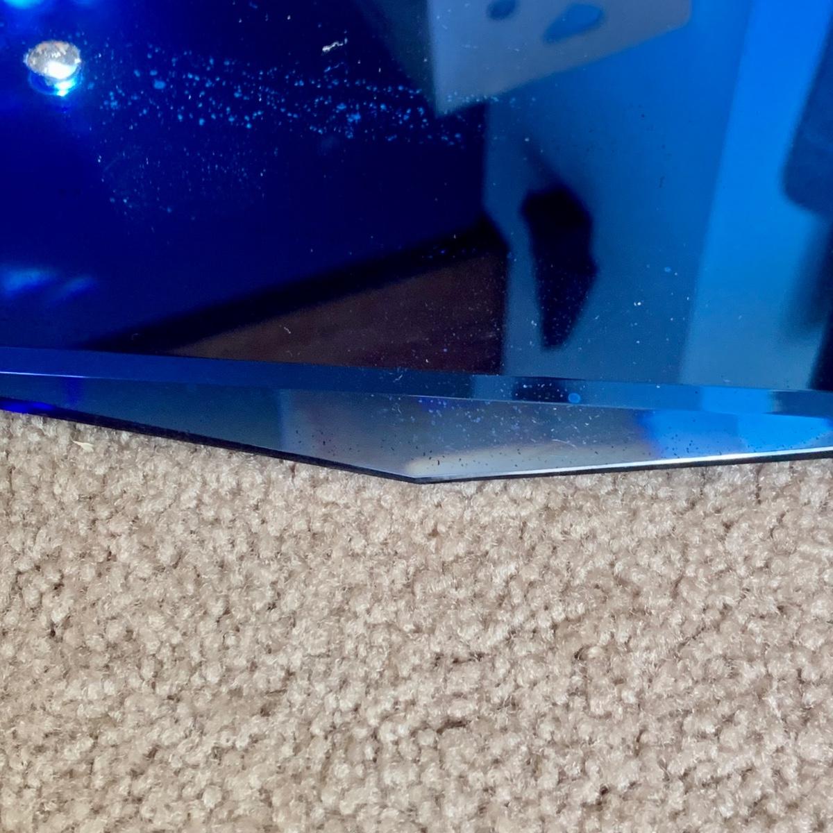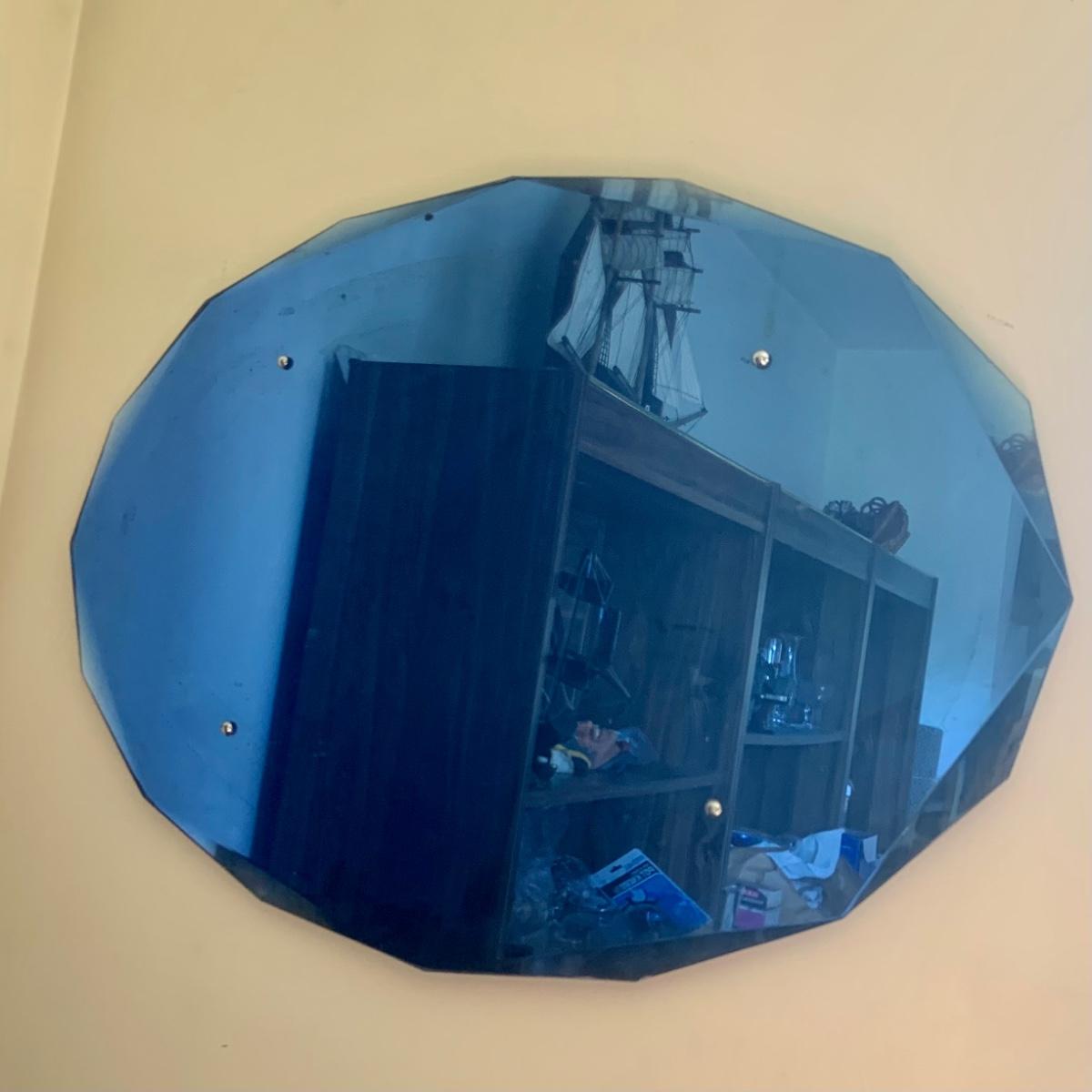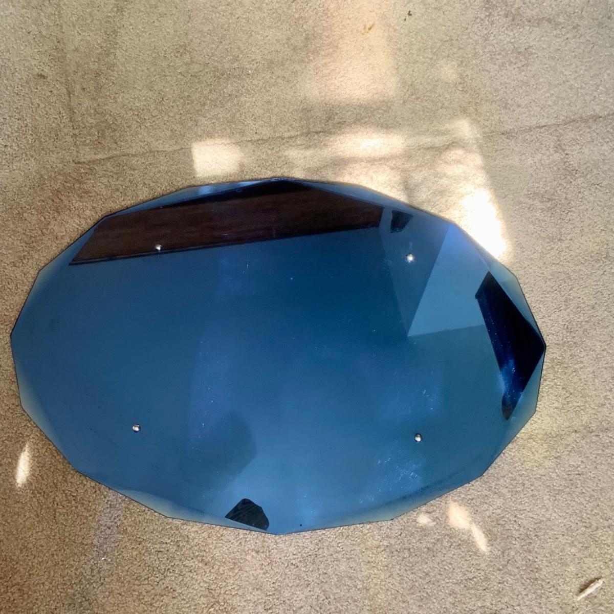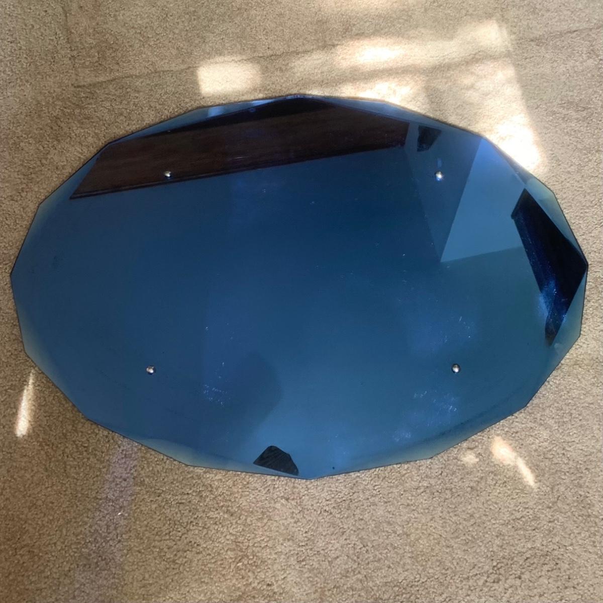 LOT:28G: Art Deco Oval Shape Bevelled Blue Smoked Glass Mirror