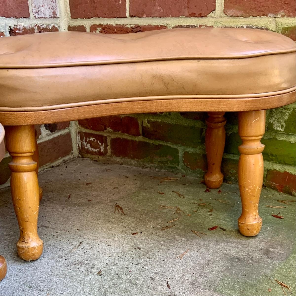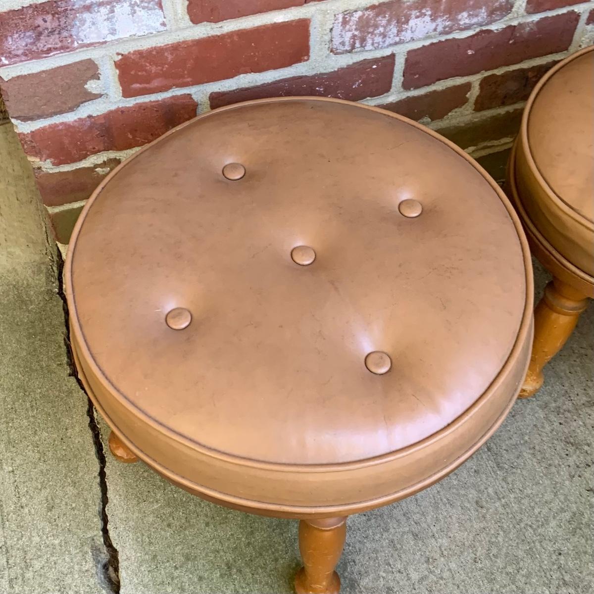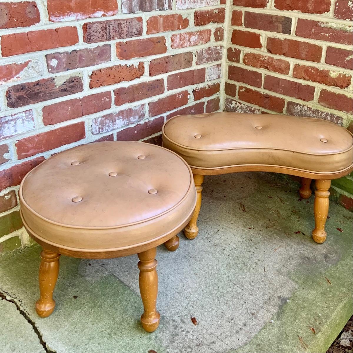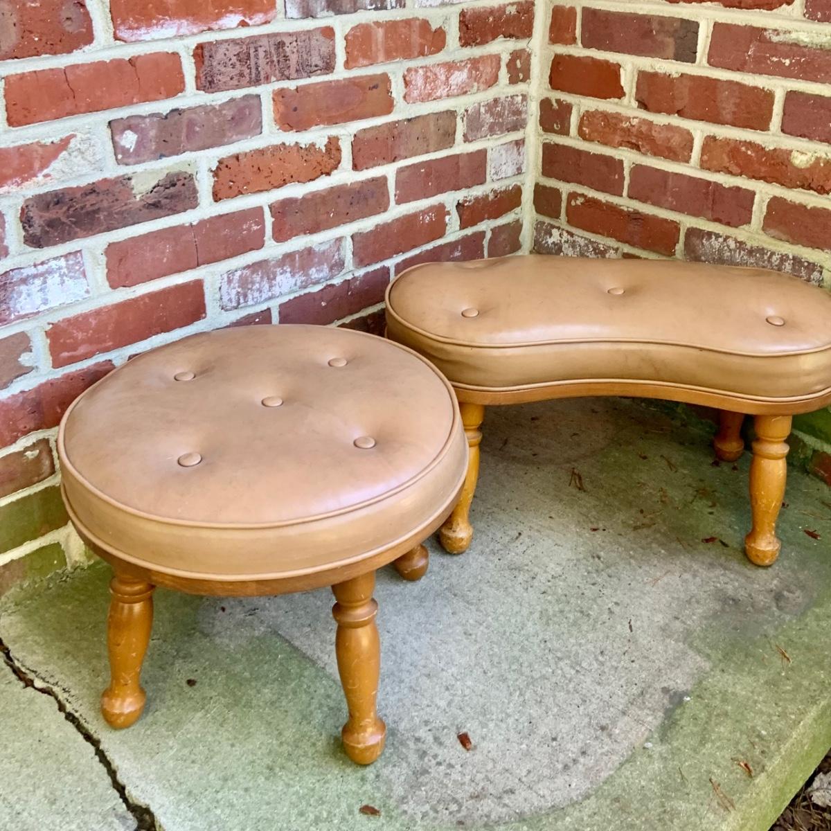 Lot:31G: Fireside Furniture - Mid Century Round and Kidney Shaped Wood Footstools with Vinyl Cushon Seat