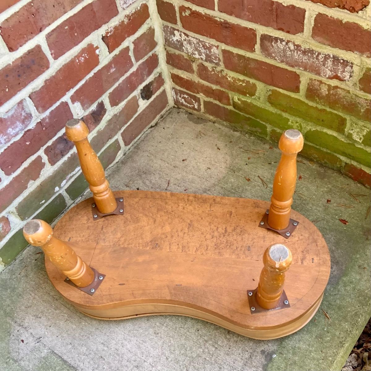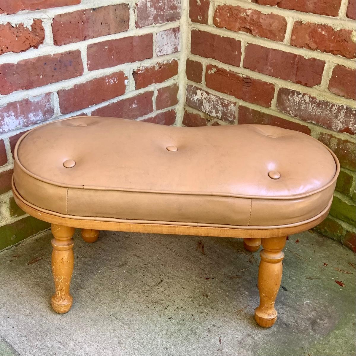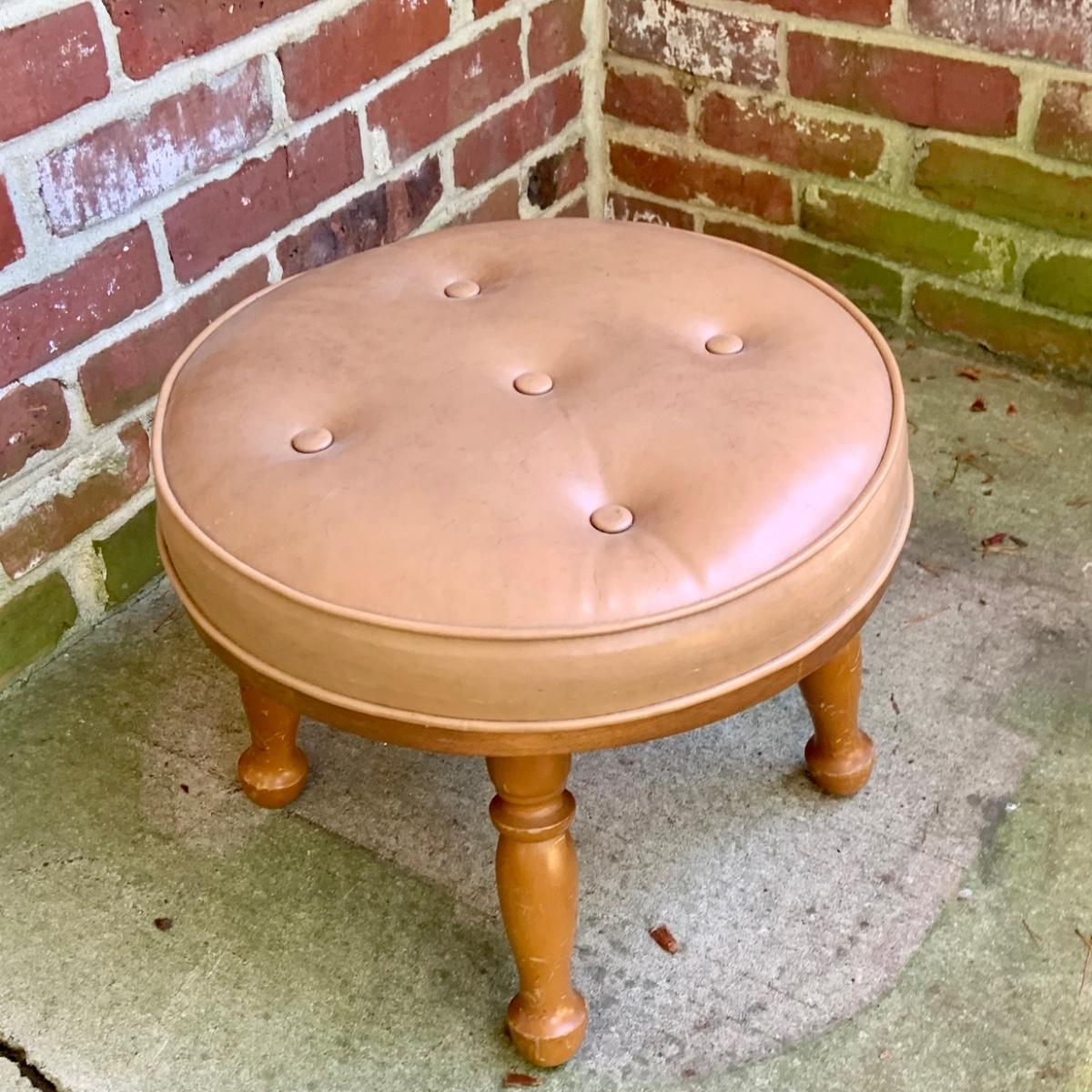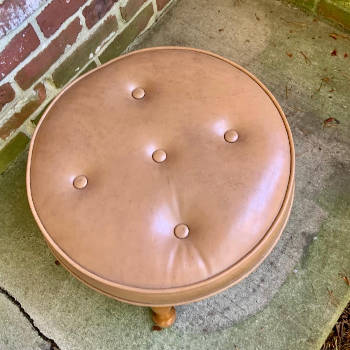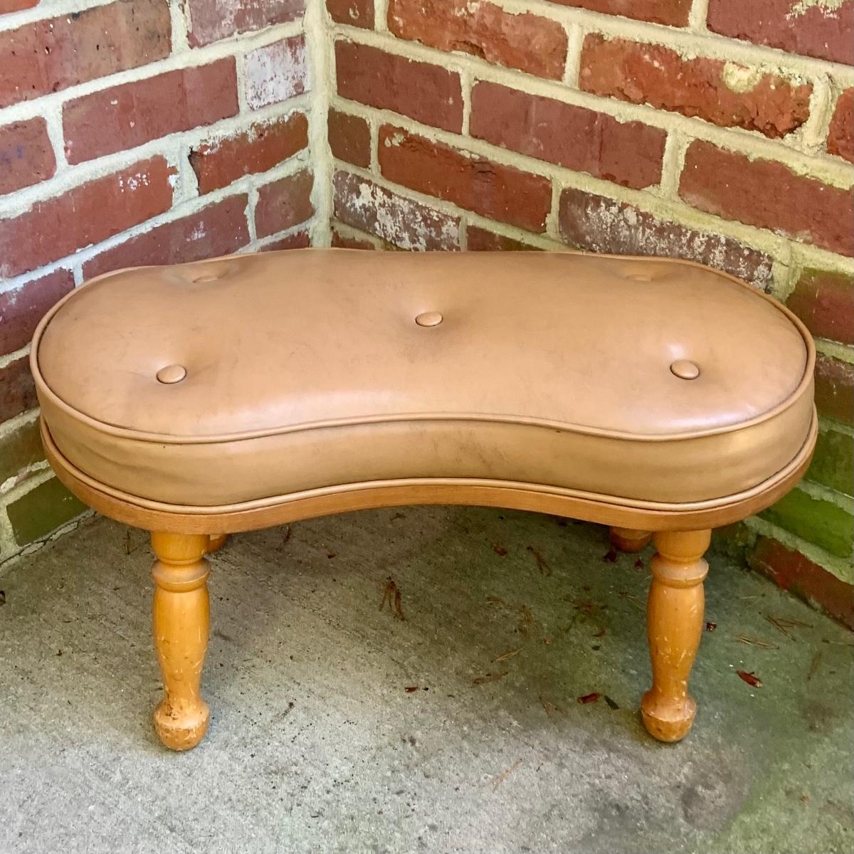 Lot:31G: Fireside Furniture - Mid Century Round and Kidney Shaped Wood Footstools with Vinyl Cushon Seat
