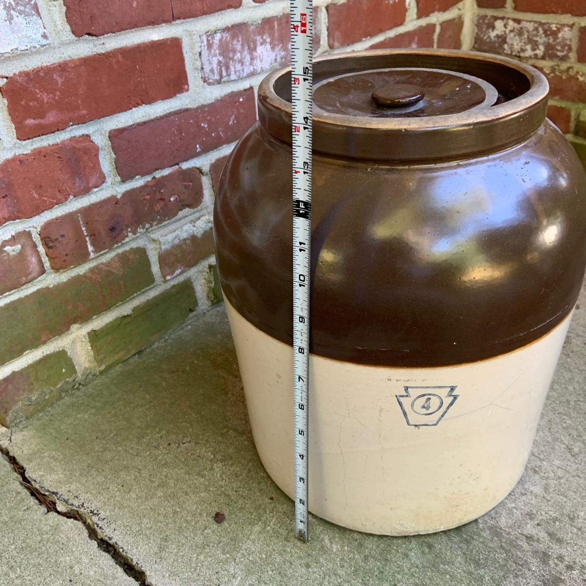 The crock and lid have some crack and chips. In Please see all pictures as they are the best representation of the items. The pictures show condition, measurements if taken, and what is included in the lot. Due to the large amount that we photograph and the time frame, we are not always able to take measurements. All items unless noted, are pre-owned and have been used. If you purchased furniture, you must bring help. We do not allow one person to carry large furniture out on their own. Bring help, tools and a truck for the safety of our client’s homes, and your personal safety. Any damages that result to the property including walls, and floors due to moving of the furniture will be charged to the buyer. Company policy. Thank you.