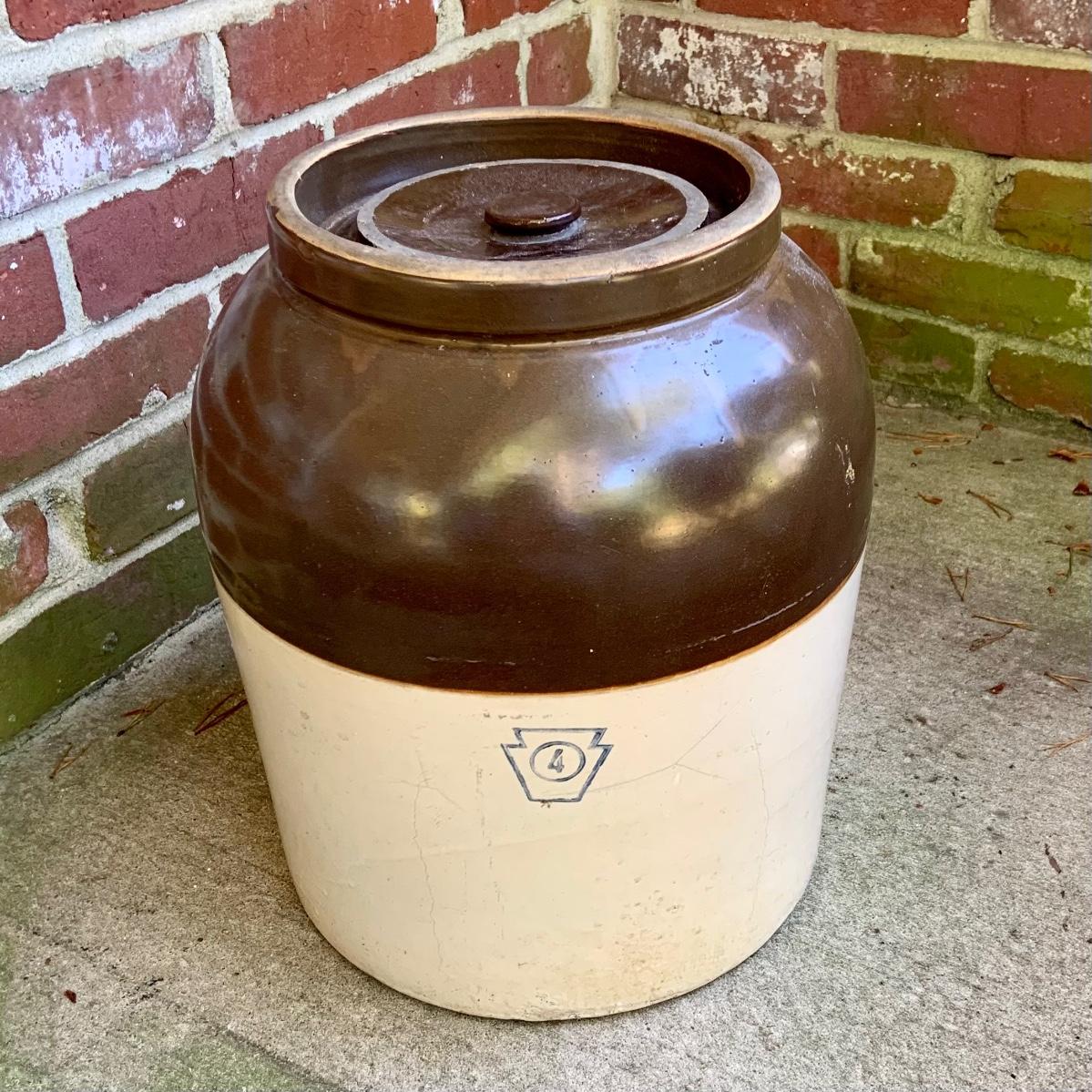 LOT:32G: Vintage Pfaltzgraff 4 Gallon Stoneware Crock with Lid