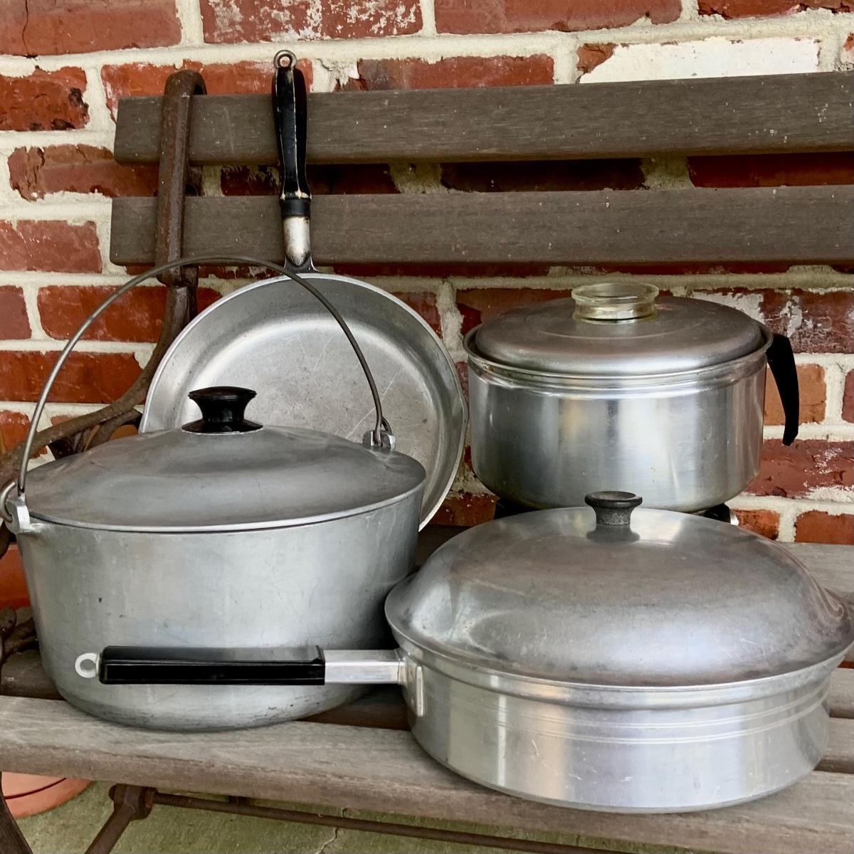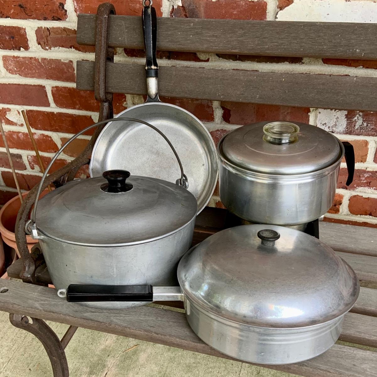 LOT:41G:Vintage Aluminum Cookware Pots and Pans with Lids Including Club, Westbend Mirro Electric Popcorn Popper
