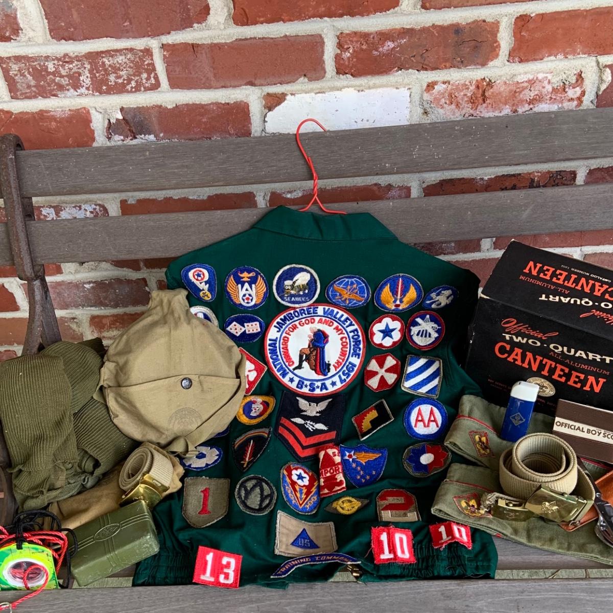 LOT:42G: Boy Scout Collection - Featuring an Official Jacket Loaded with Patches; Canteens, Hats, Socks, Belts and Much More