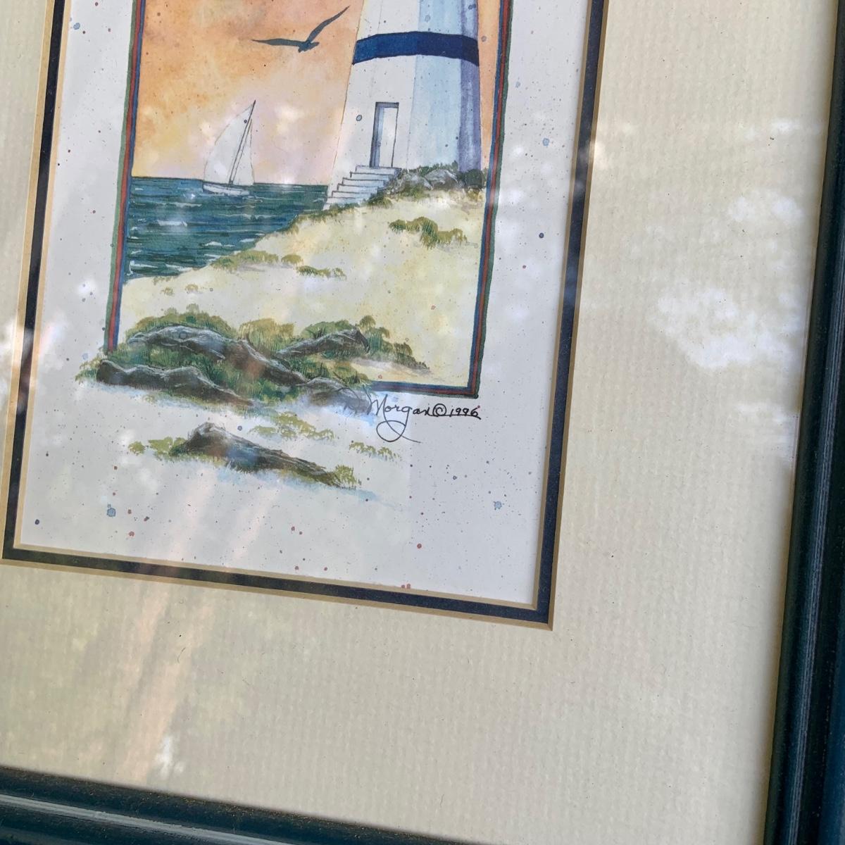 LOT:45G: By the Sea Collection of Signed Wall Art - D. Morgan Lighthouse and Barbara Ostrander Marina