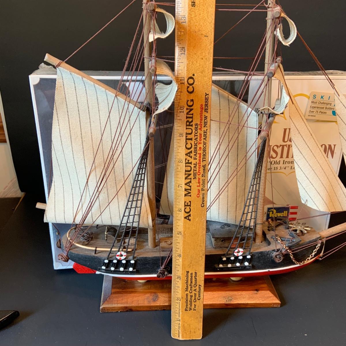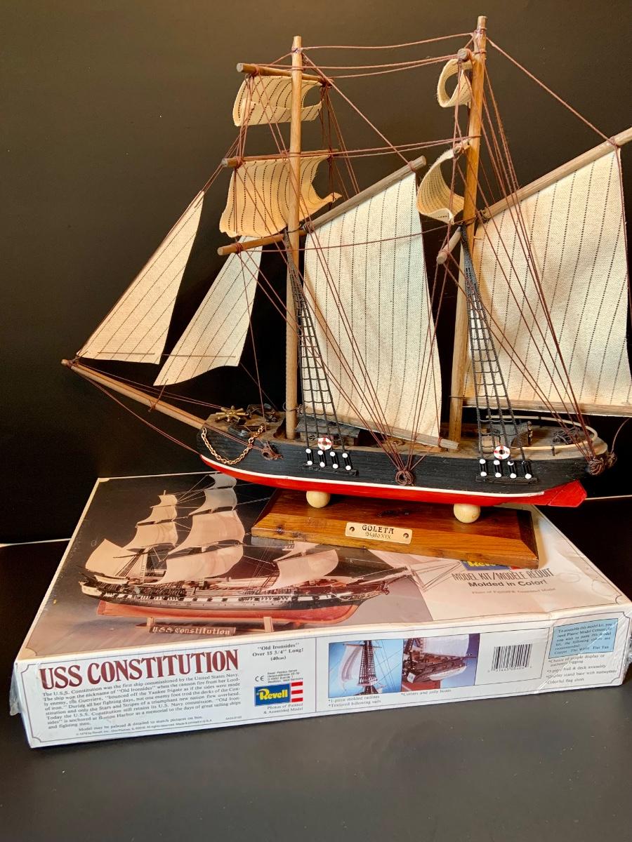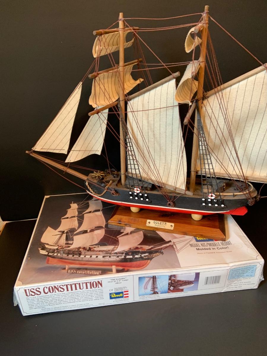 LOT:49G: Unopened Rivell USS Constitution Model Ship and a Wood Ship Model of the Goleta