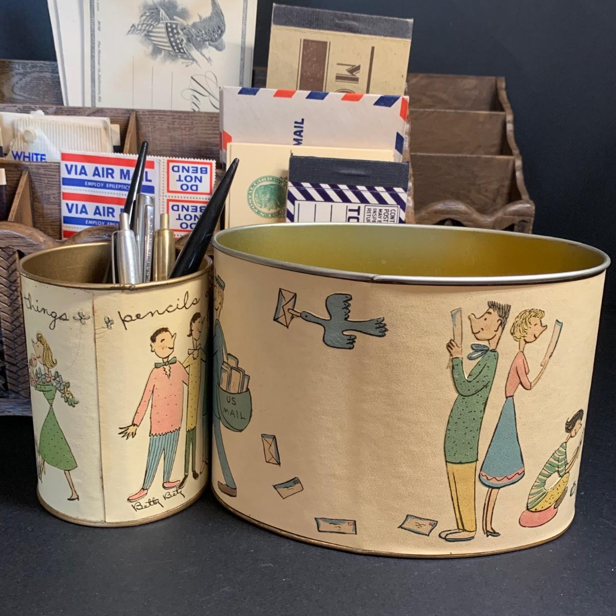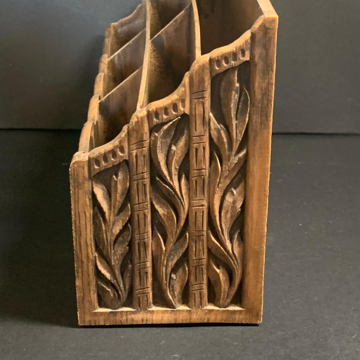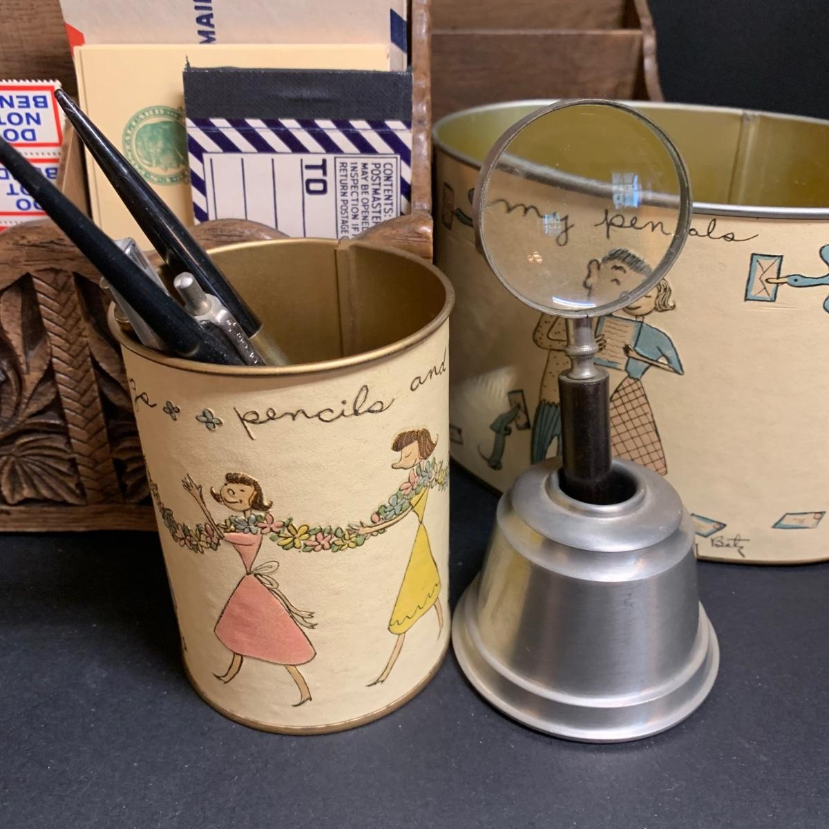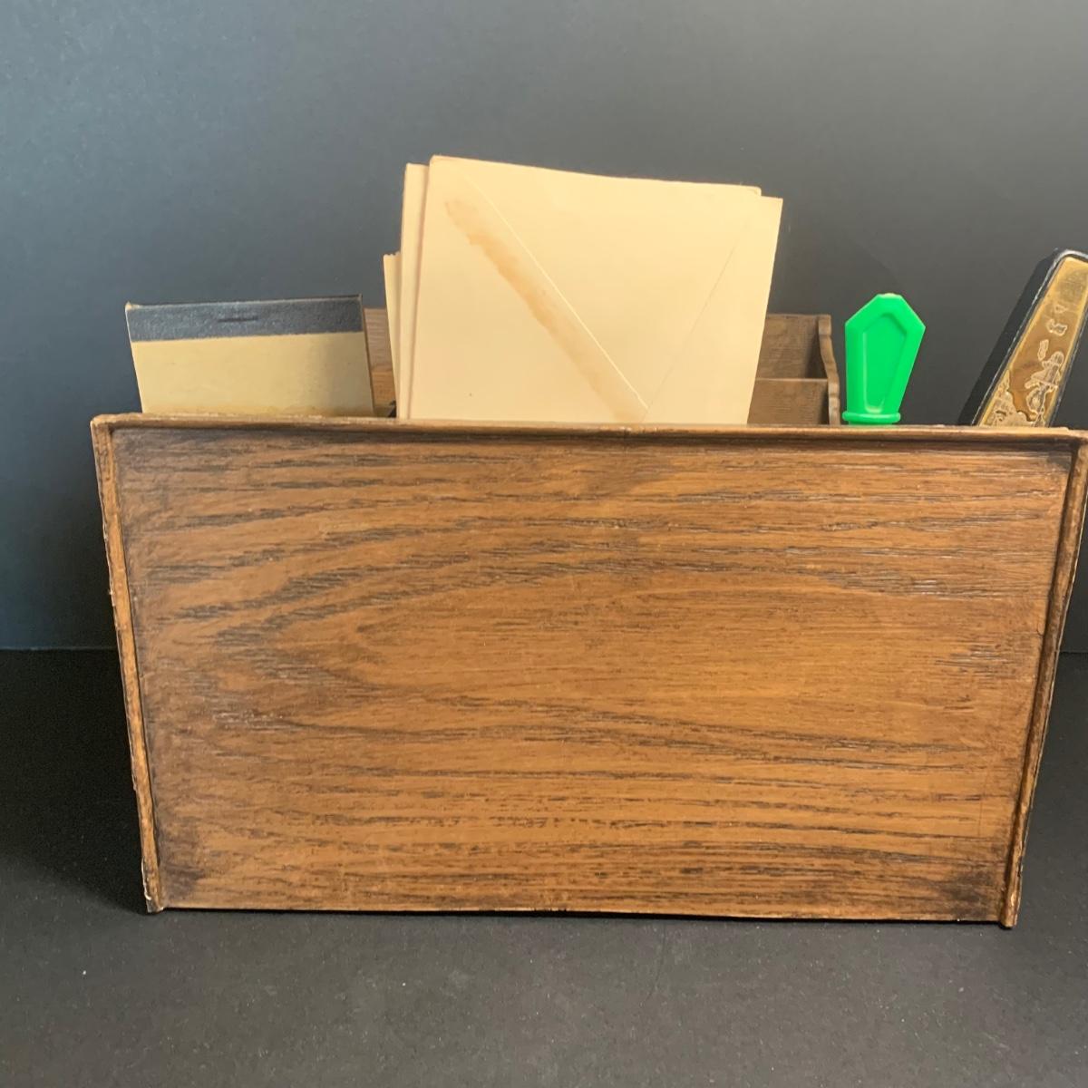 LOT 67R: Vintage Faux Carved Desk Organizers, Vtg. Pewter Inkwell and Desk Accessories