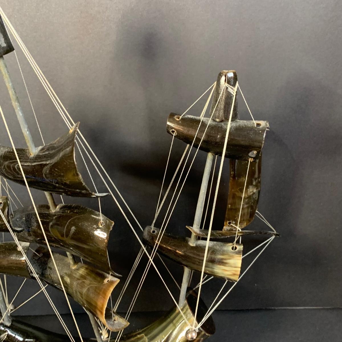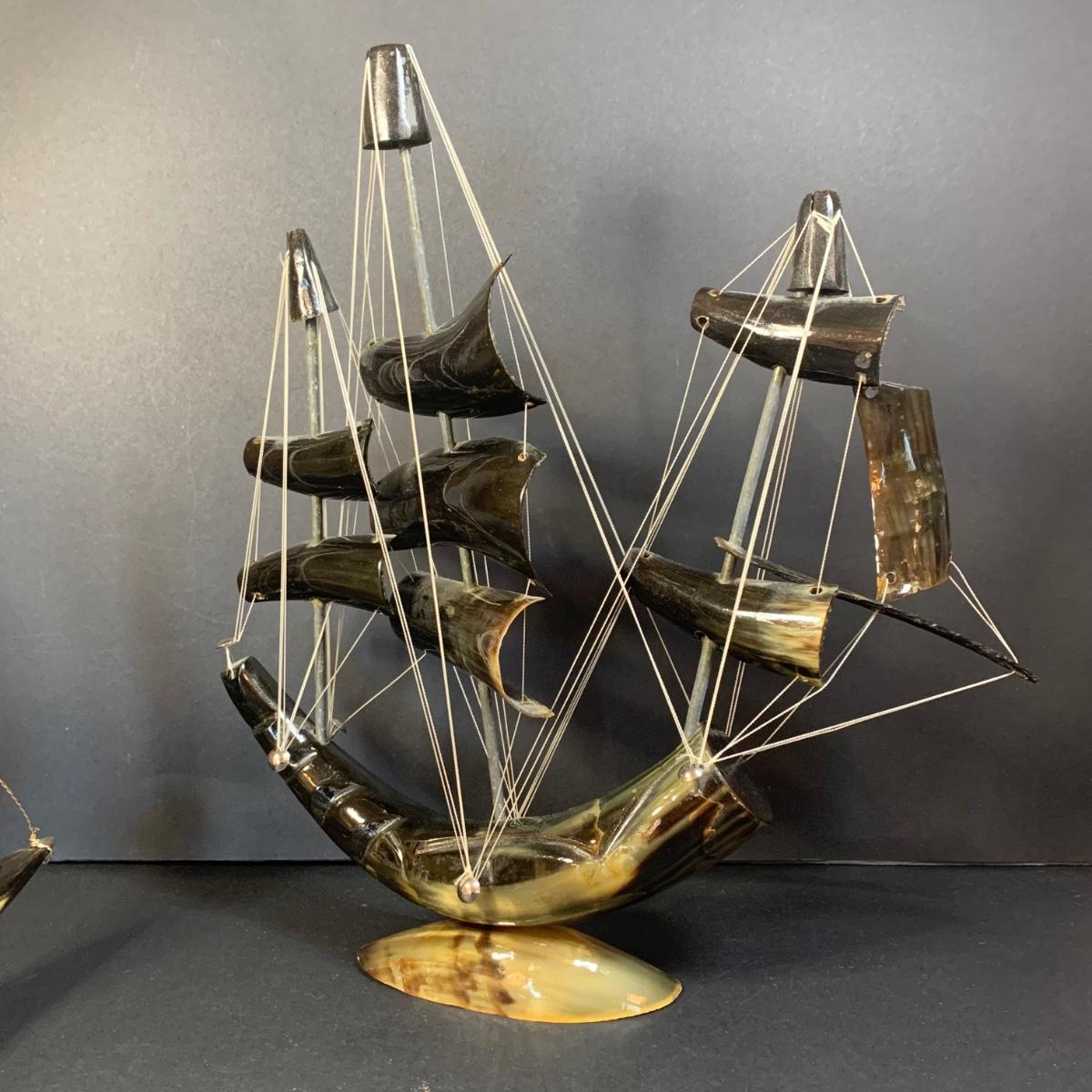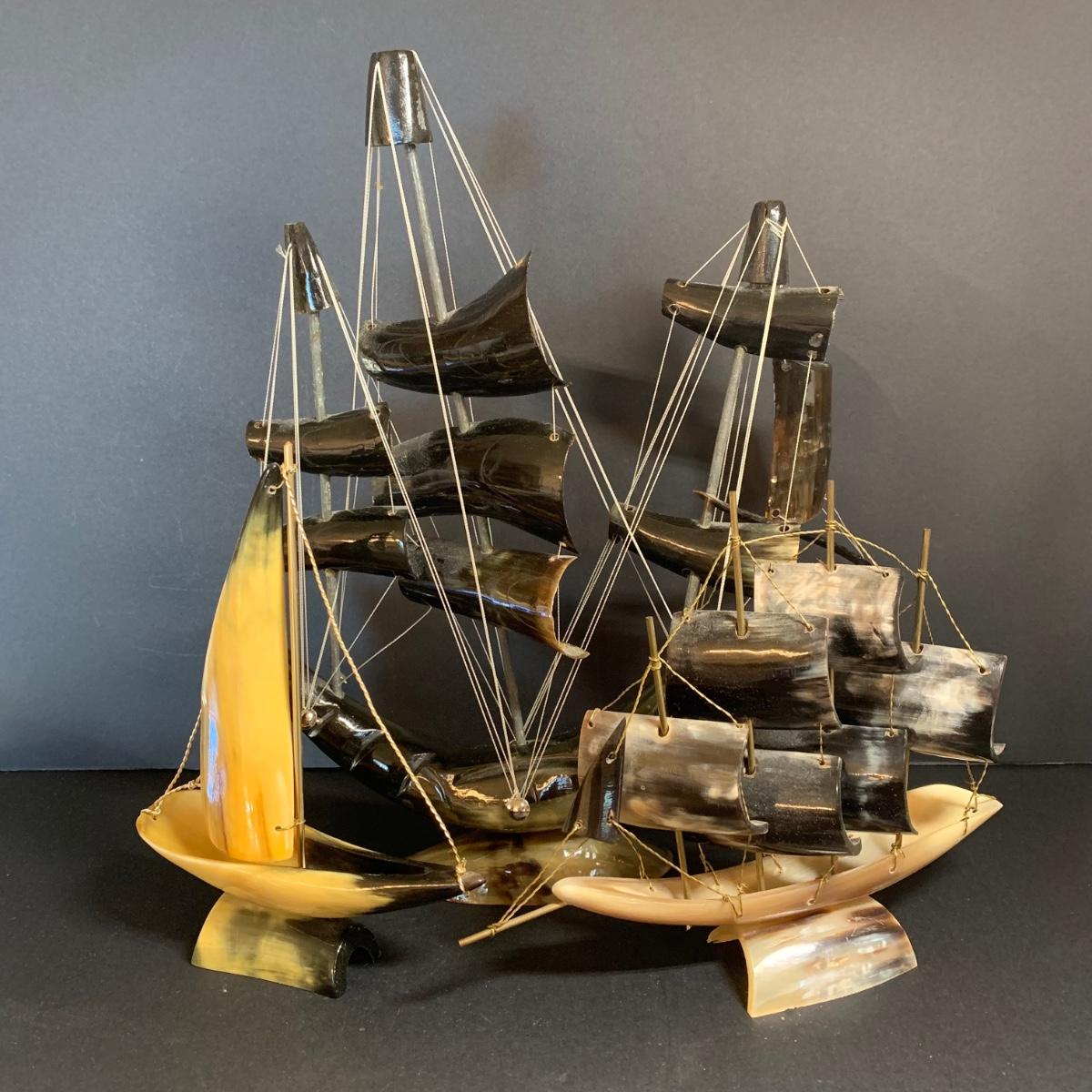 LOT 68R: Vintage Saling Ships Made of Horns