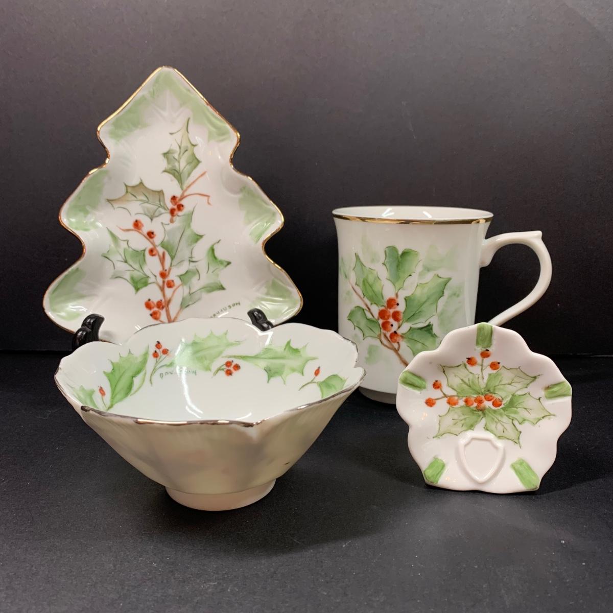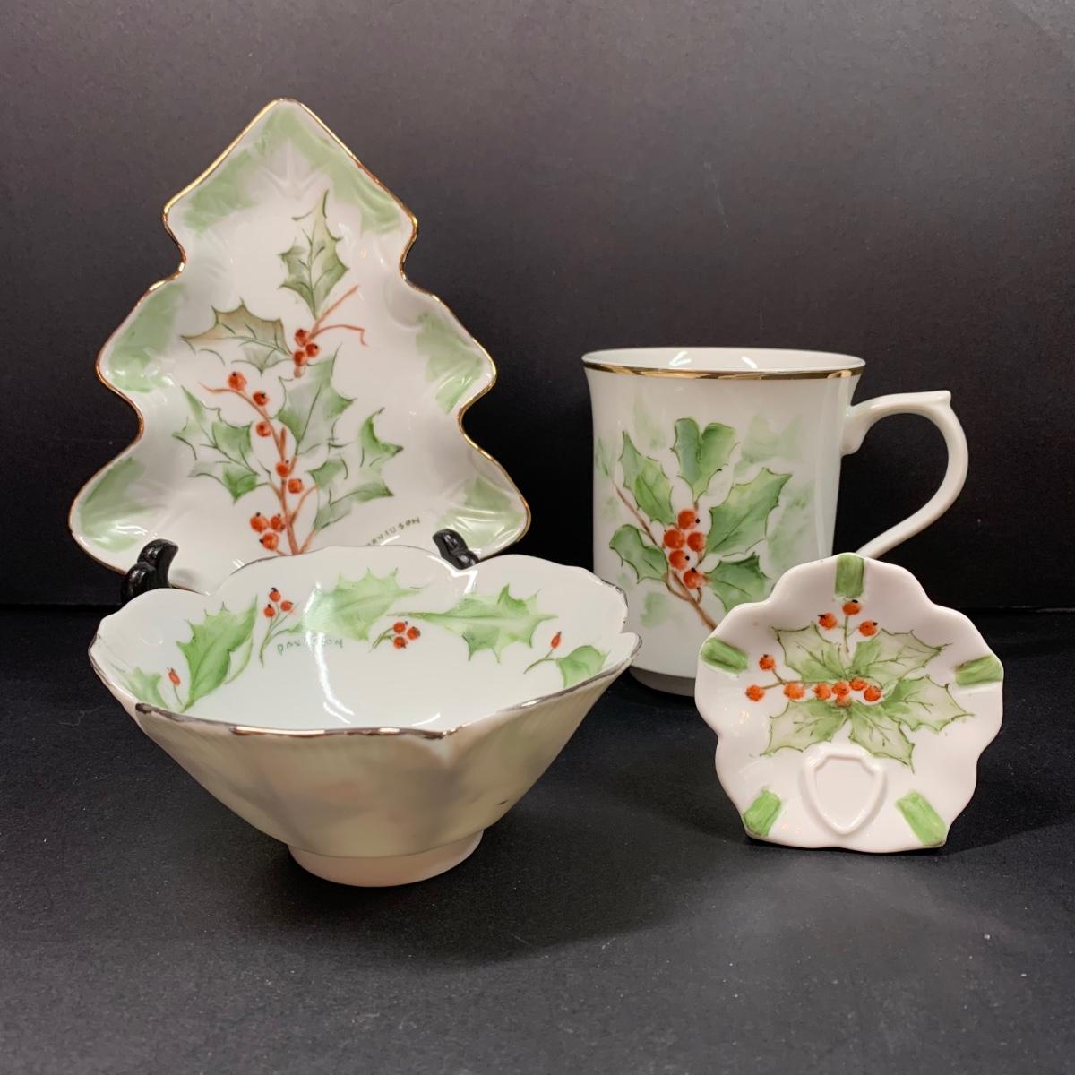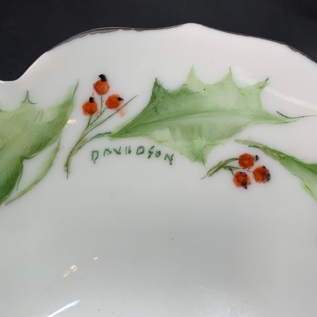 LOT 70R: Vintage Collection of Elma C. Davidson Hand Painted & Signed Pieces on Porcelain: Holly Leaves & Berries