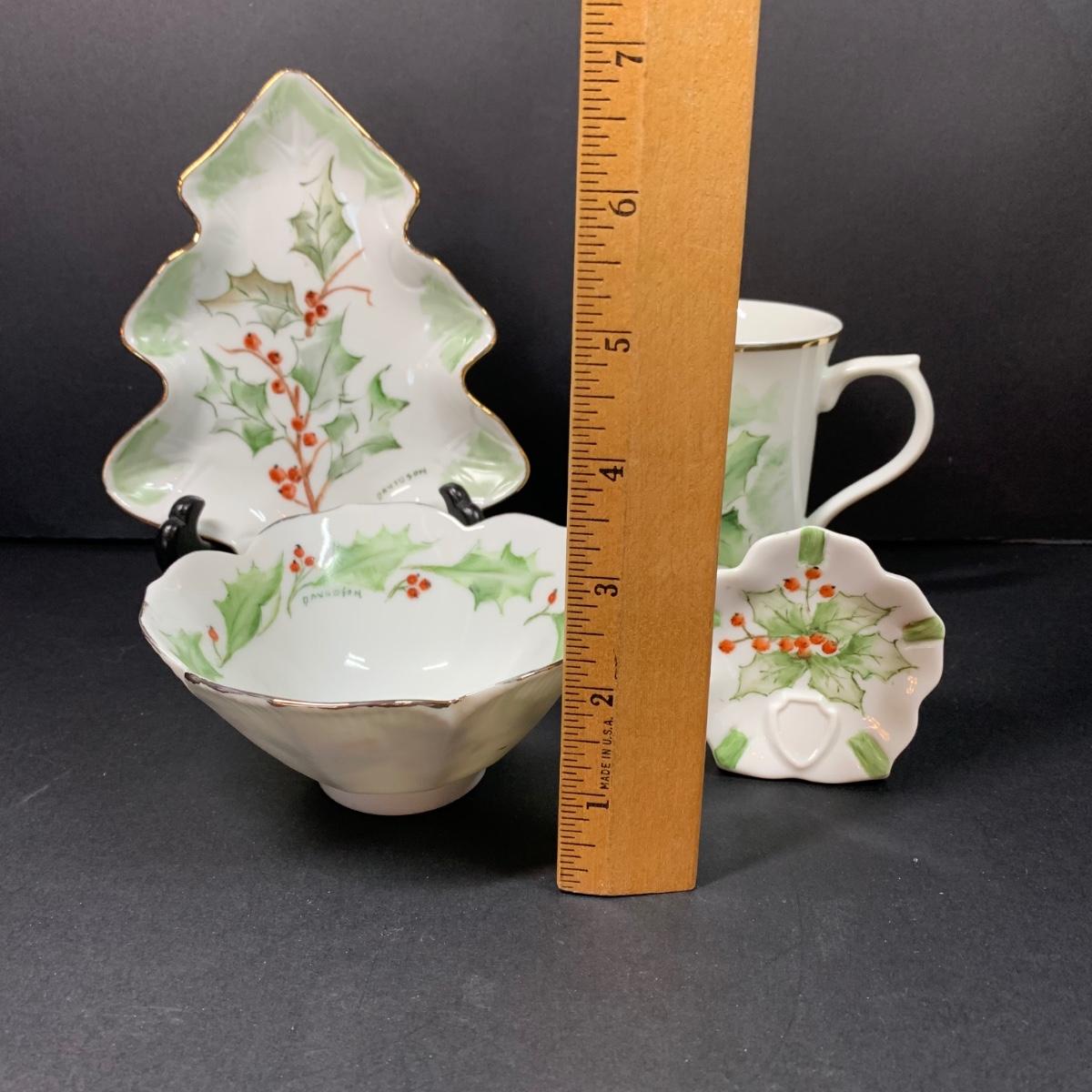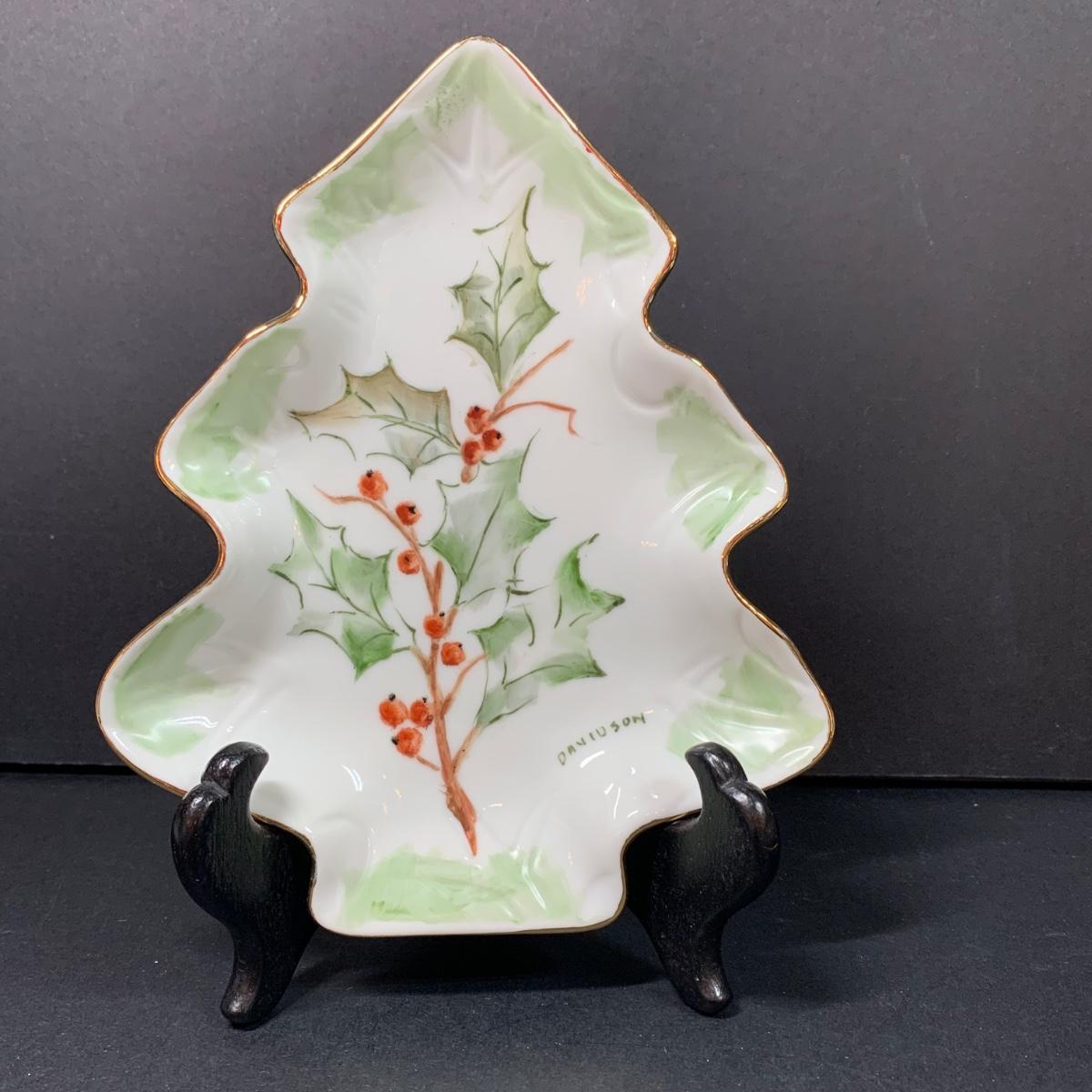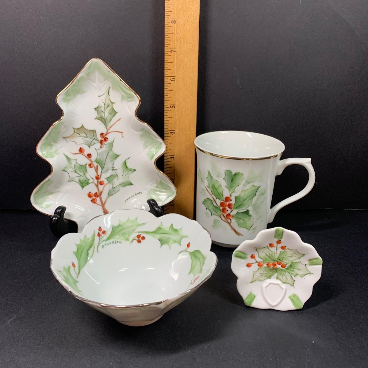LOT 70R: Vintage Collection of Elma C. Davidson Hand Painted & Signed Pieces on Porcelain: Holly Leaves & Berries