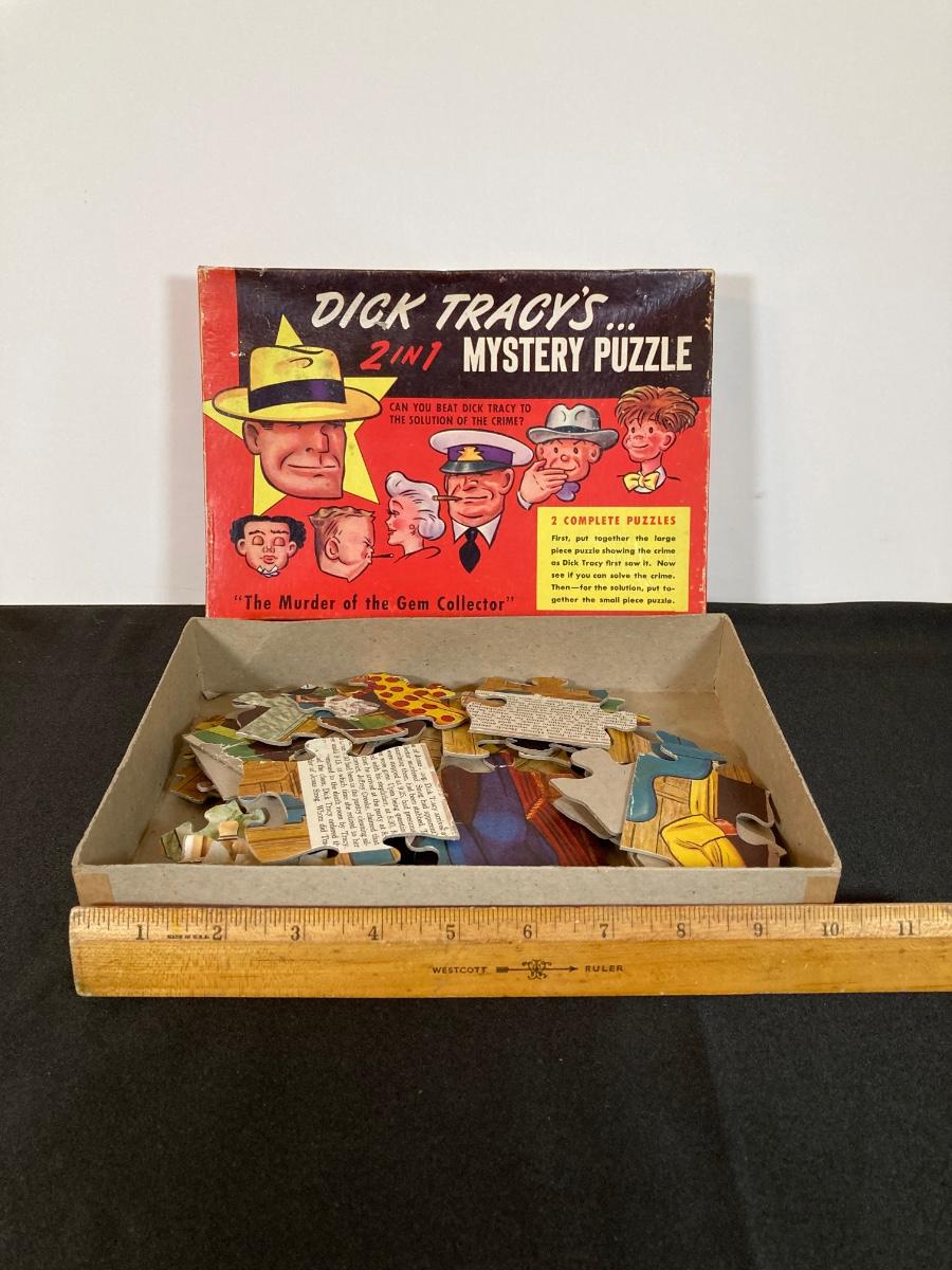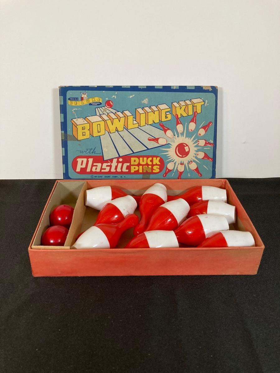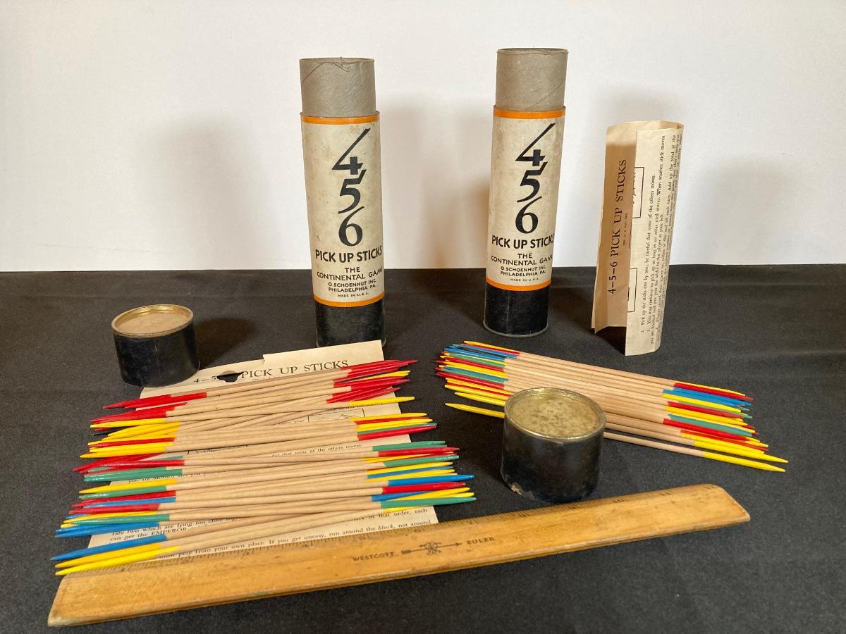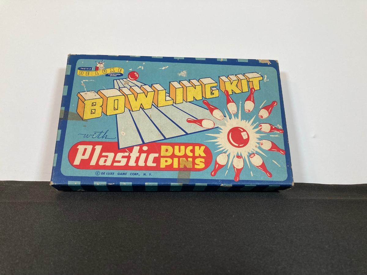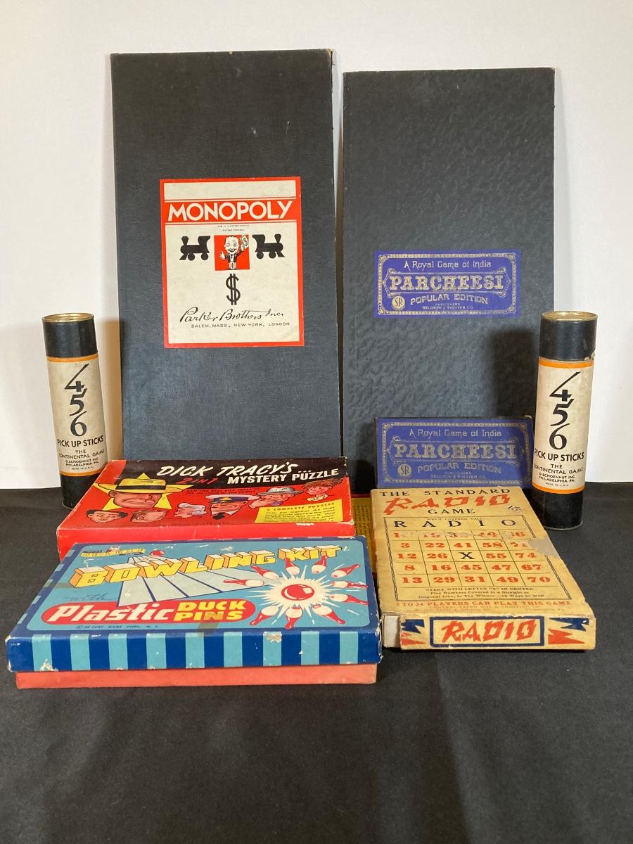 LOT 93J: Vintage Games - Bowling Kit, Pick Up Sticks, Dick Tracy's Mystery Puzzle and More