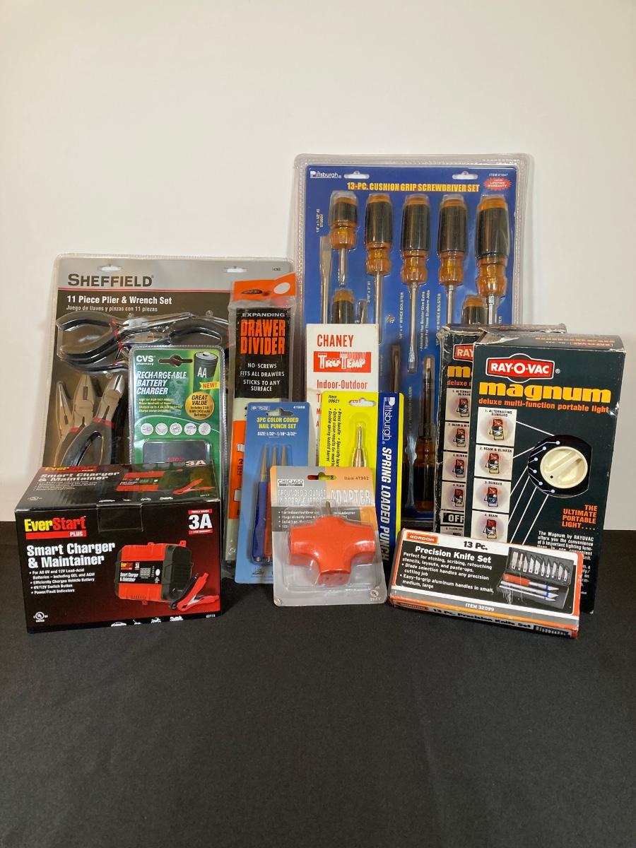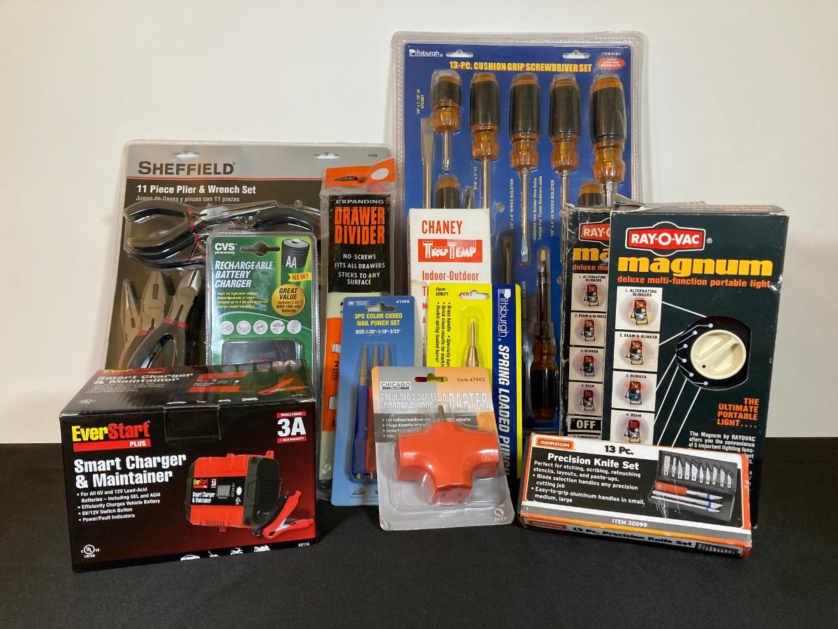 LOT 104J: Collection of Tools, Lights, Chargers and More