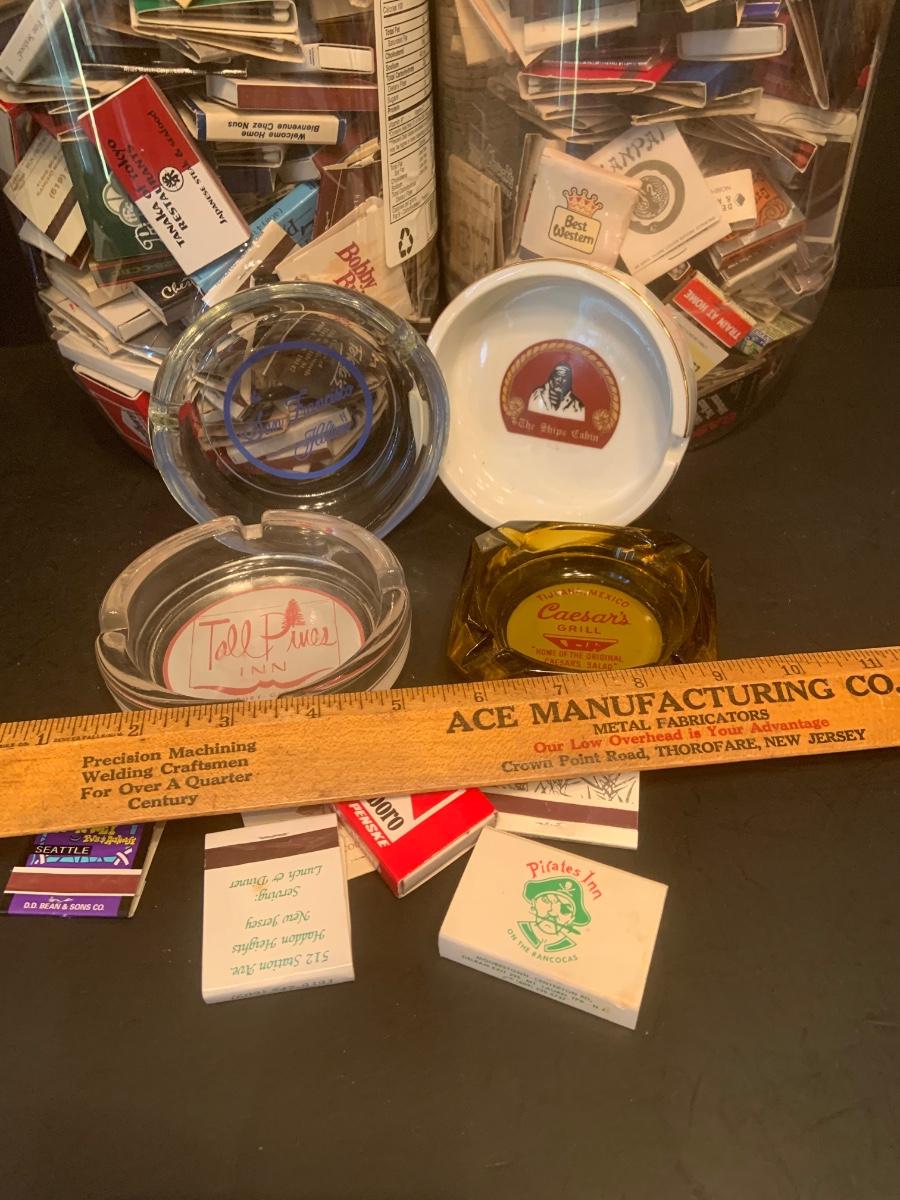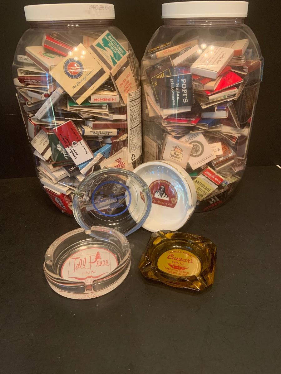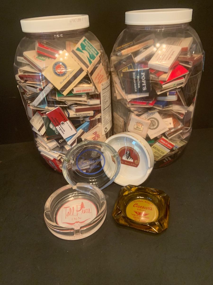 LOT:116G:Souvenir Ashtrays and a Huge Collection of Matchbooks