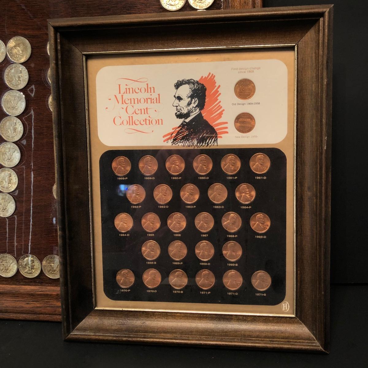 LOT 117M: Framed Lincoln Memorial Cent Collection & Framed 1979 Susan B. Anthony $1 Coins (75)