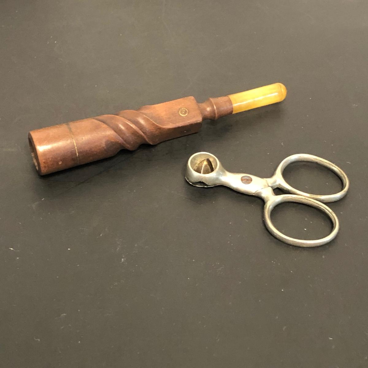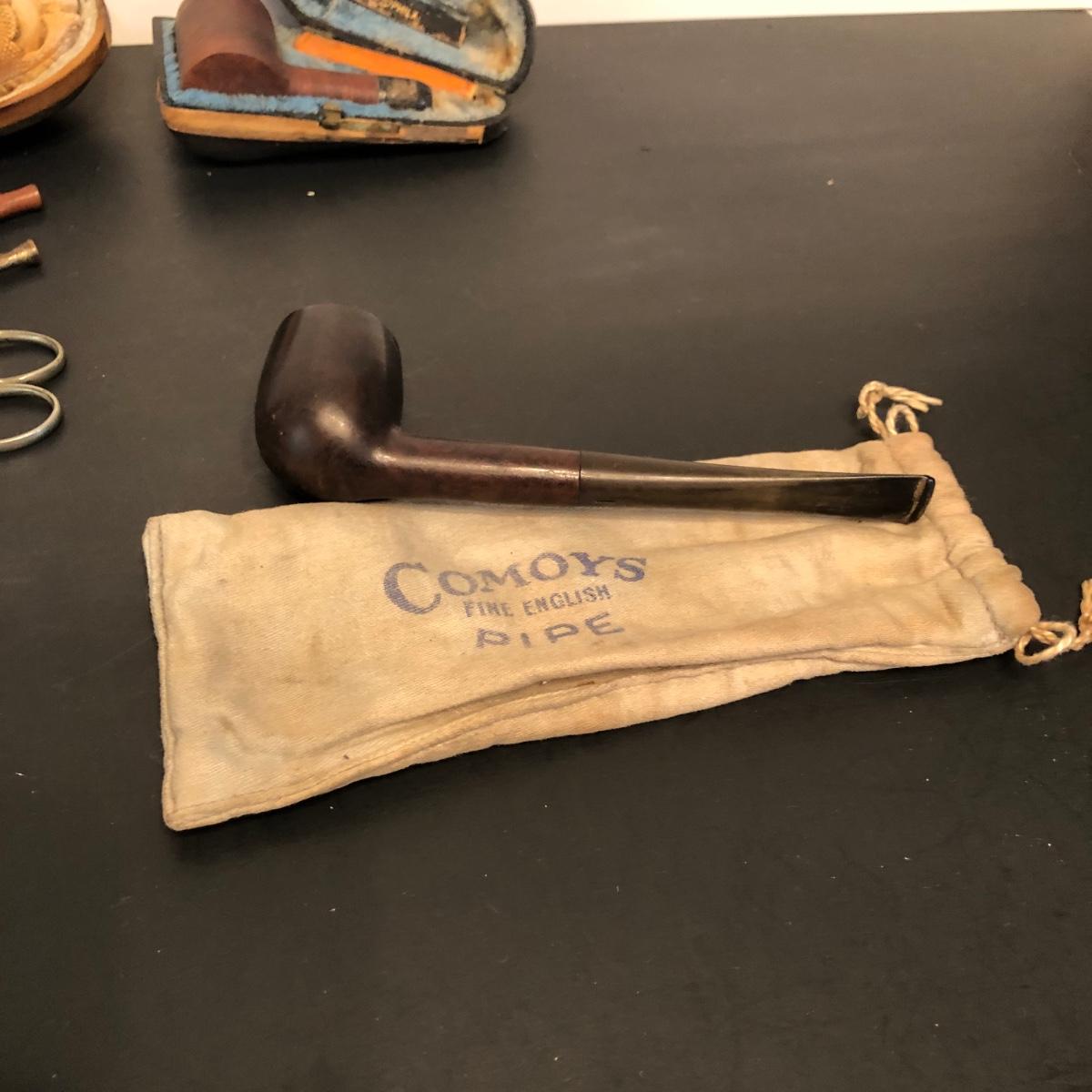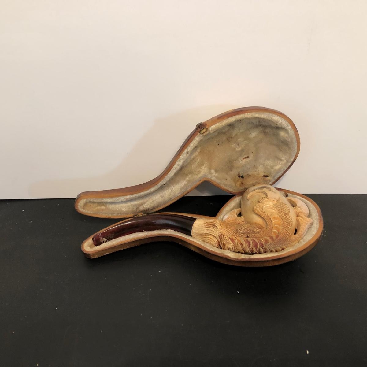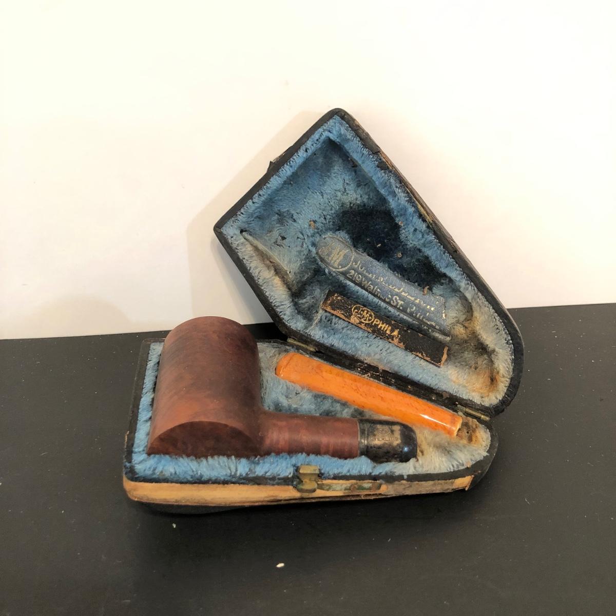 LOT 132M: Vintage Pipes - Meeschaum Carved Pipe w. Case, JM Philadelphia 2-Piece w/ Case, Comoys w/ Bag, Japanes Kiseru Pipes, Wooden Cigarette Holder & Cutter