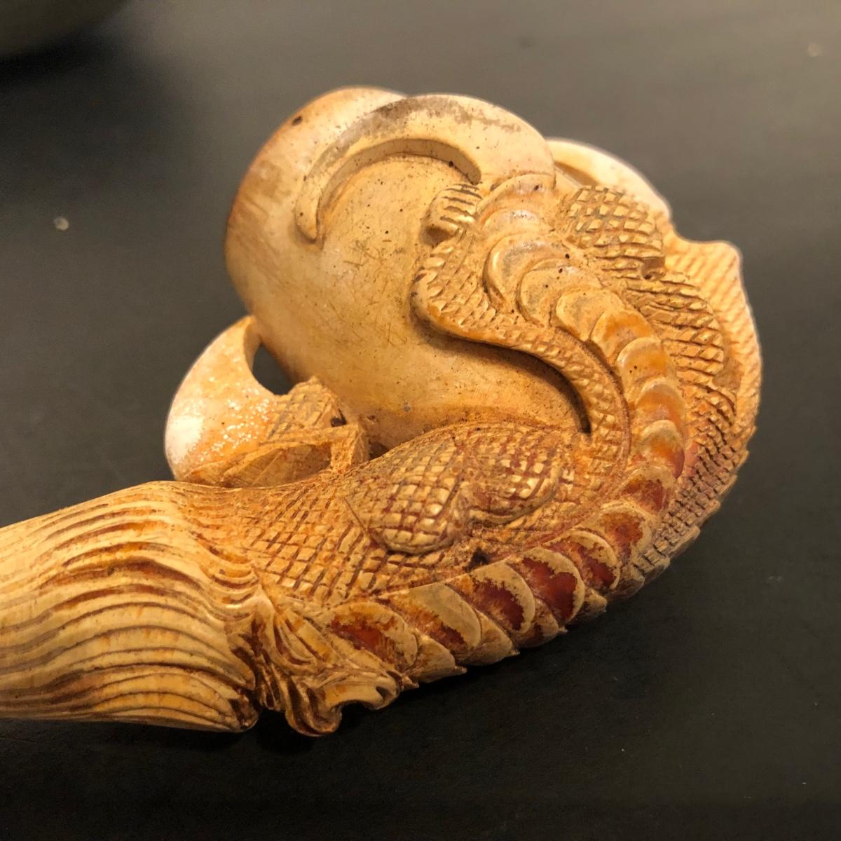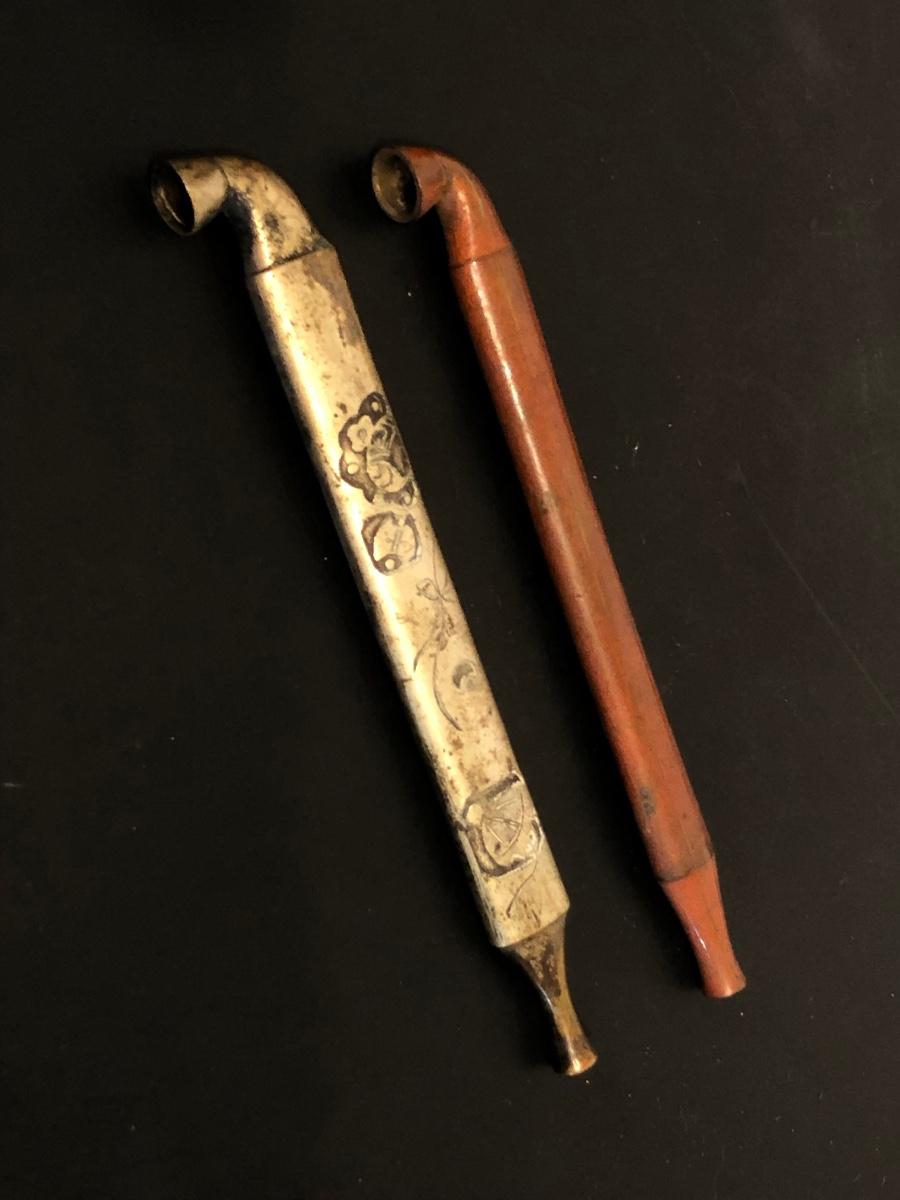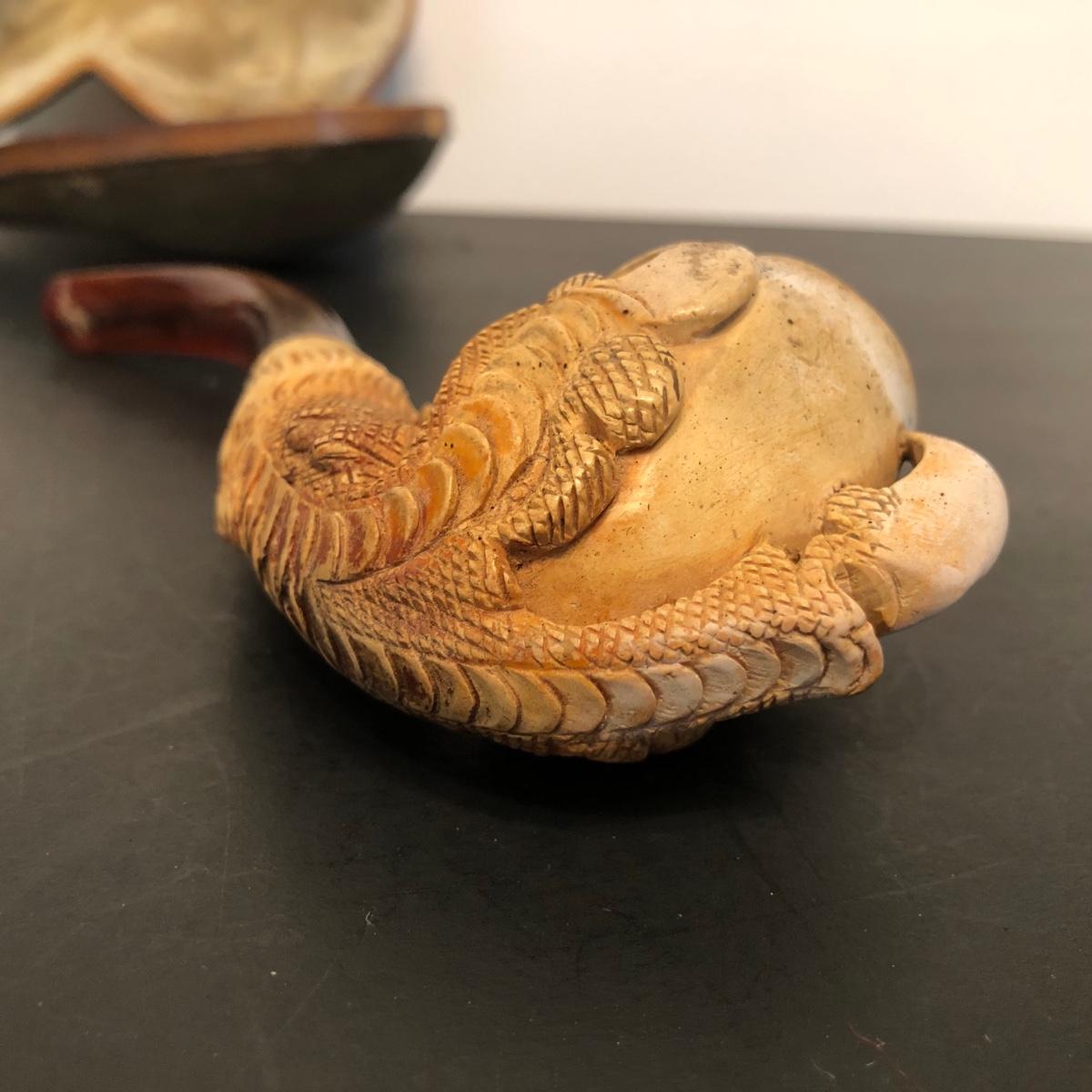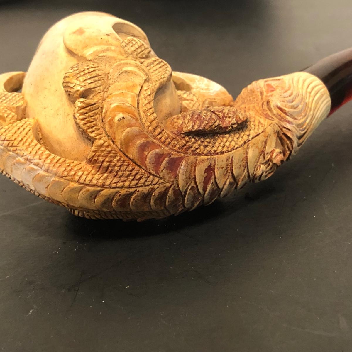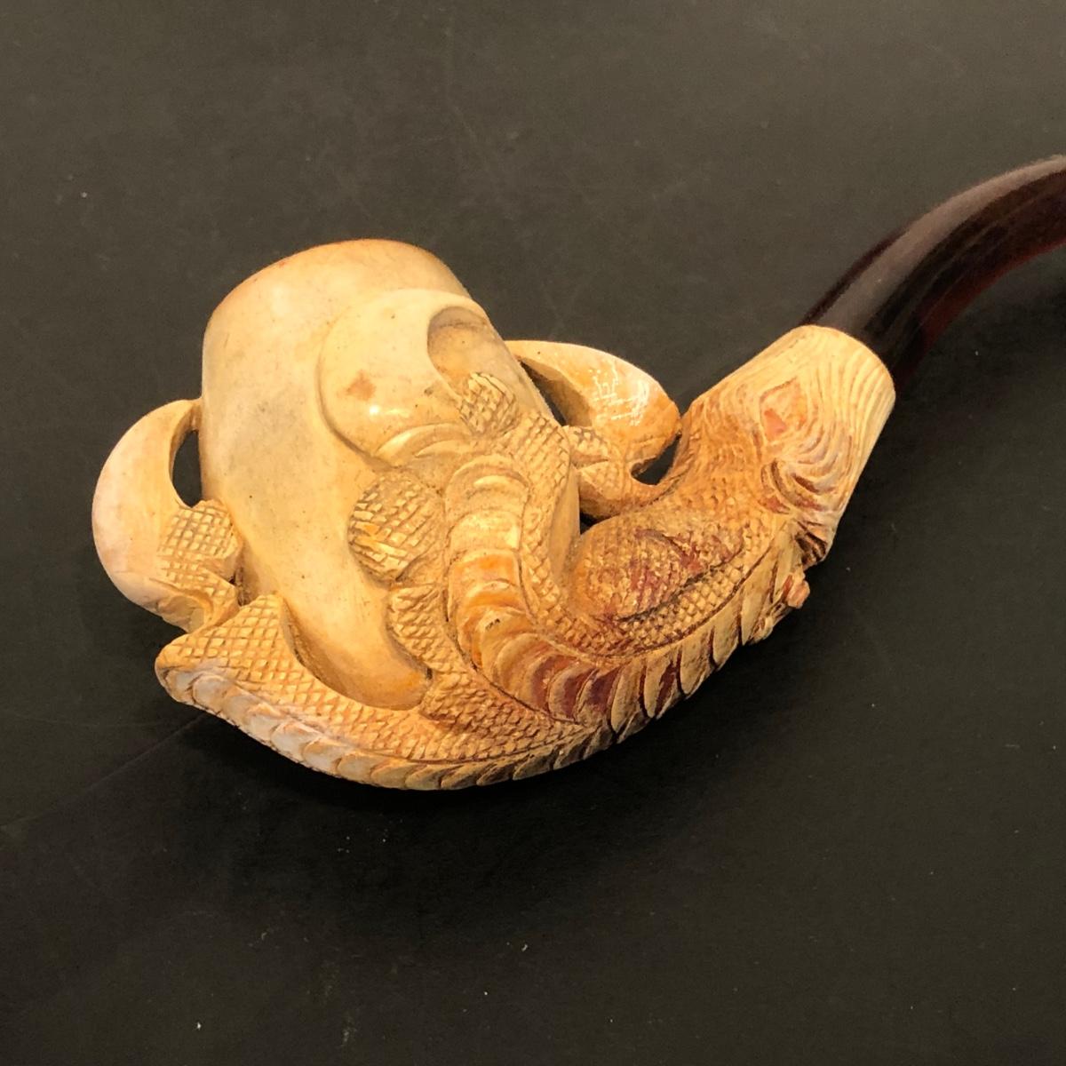 LOT 132M: Vintage Pipes - Meeschaum Carved Pipe w. Case, JM Philadelphia 2-Piece w/ Case, Comoys w/ Bag, Japanes Kiseru Pipes, Wooden Cigarette Holder & Cutter
