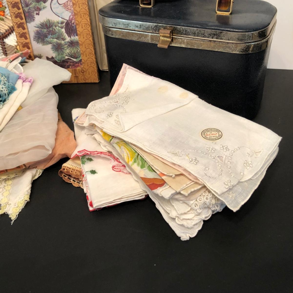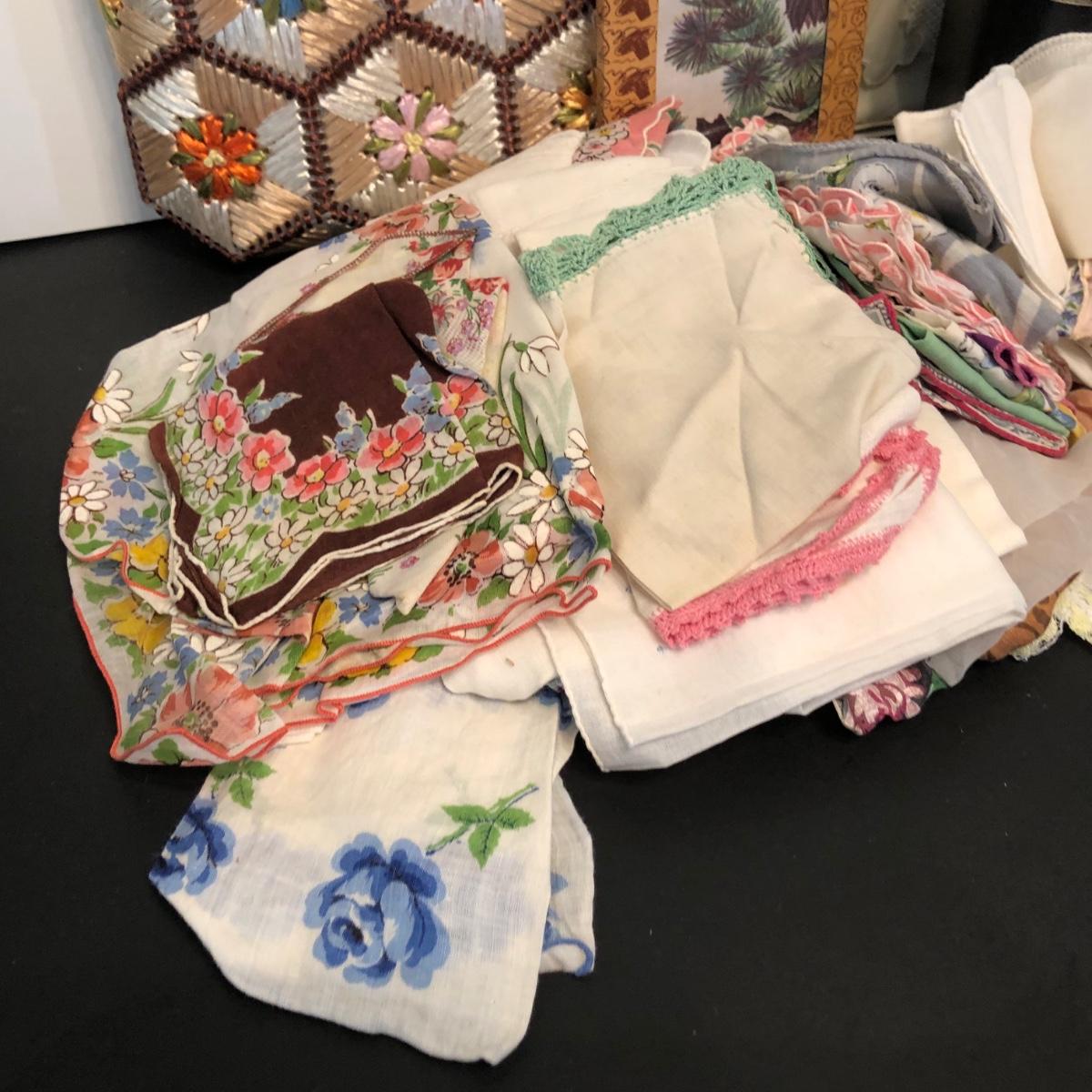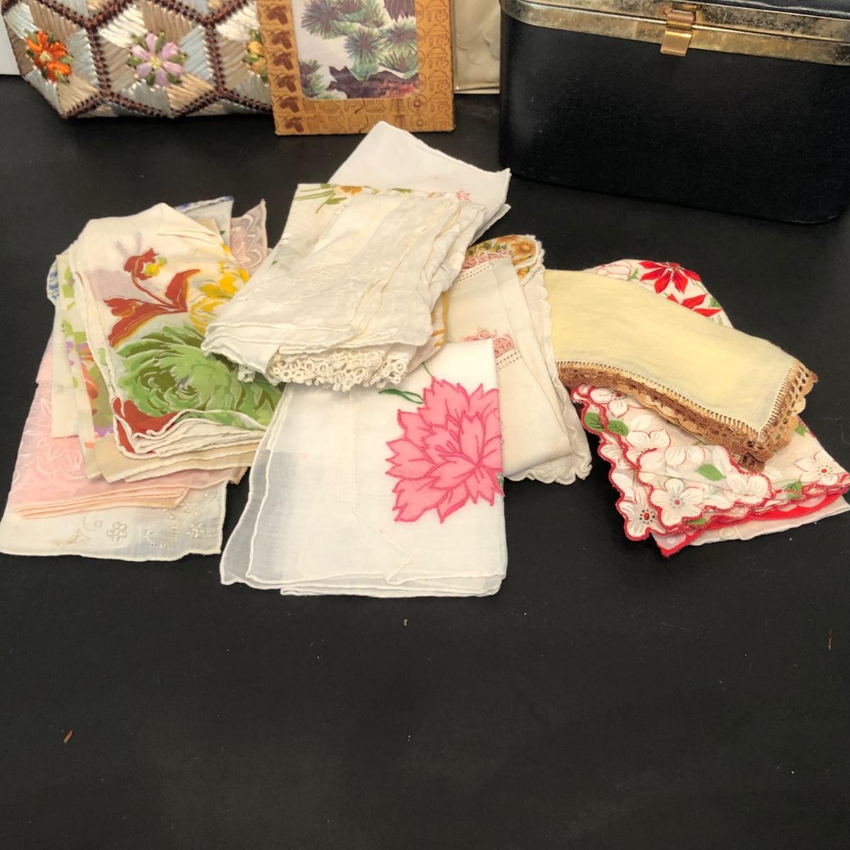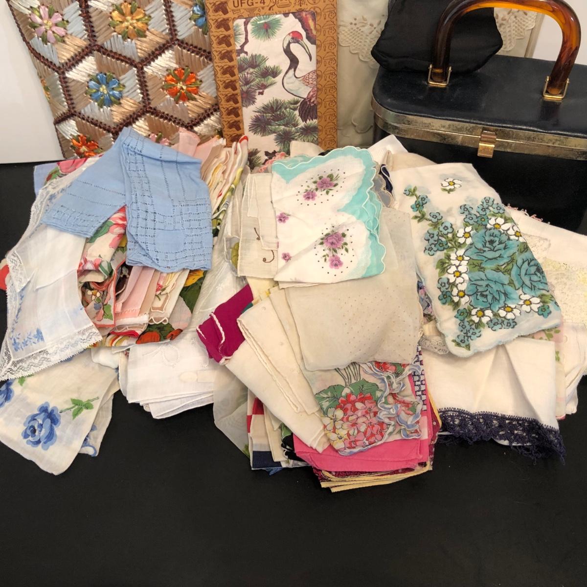 LOT 134M: Vintage JR Florida Box Purse, Woven Handbag & Collection of Vintage Ladies' Handkerchiefs