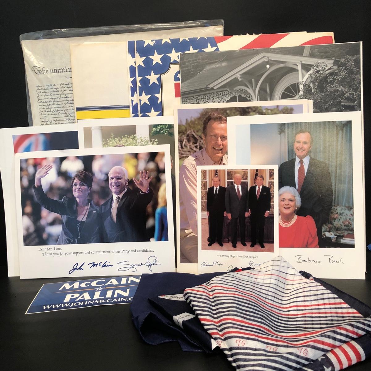 LOT 146M: Republican Collection w/ White House President Photos (Reagan, Bush), McCain/Palin Decal & More