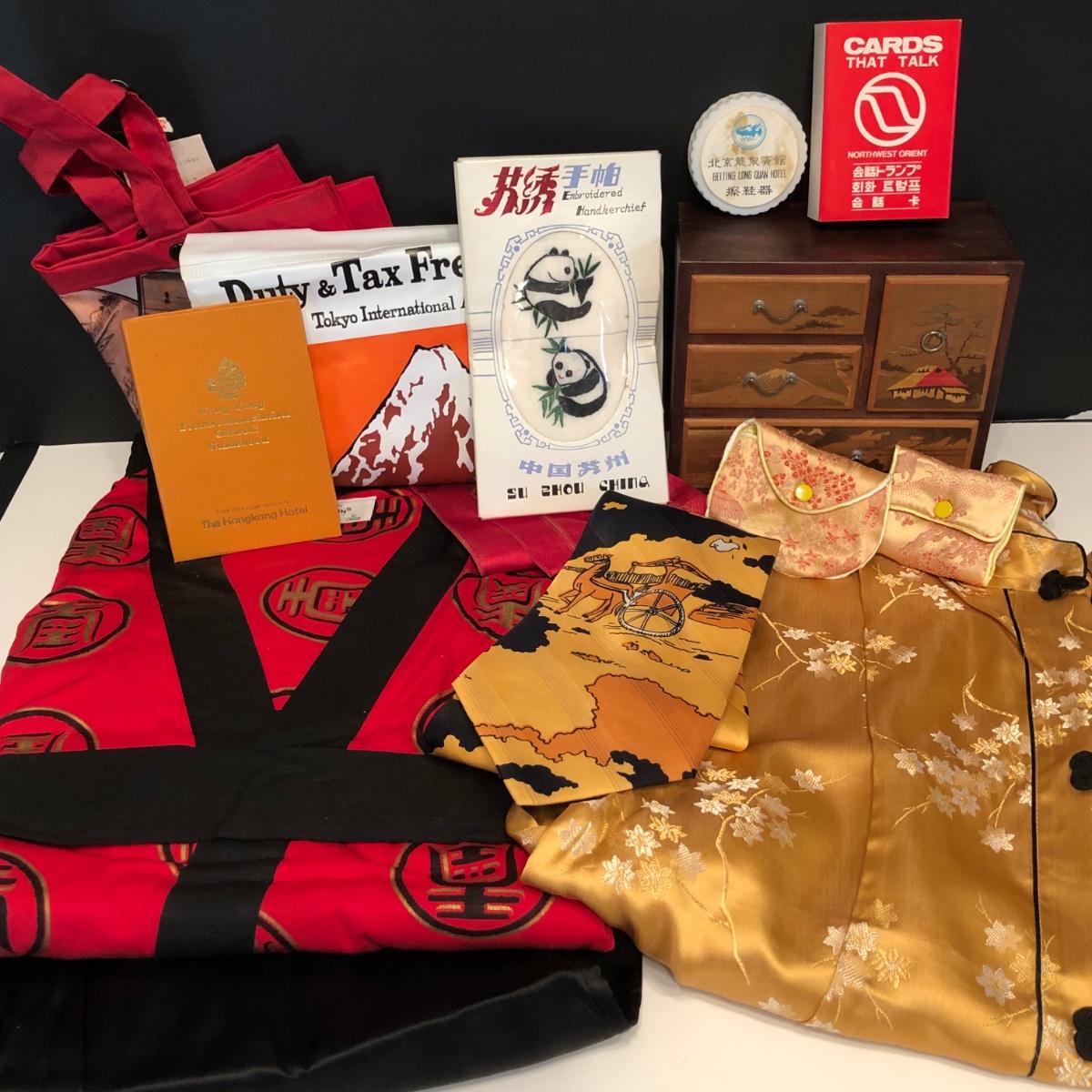 LOT 153M: Weldon Cotton Sleep Set, Orient Silk Tie, Embroidered Panda Handkerchief, Hong Kong Tourist Association Official Guidebook, Coin Purses & More