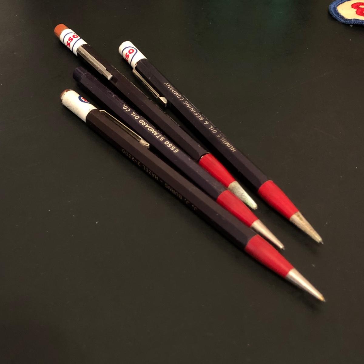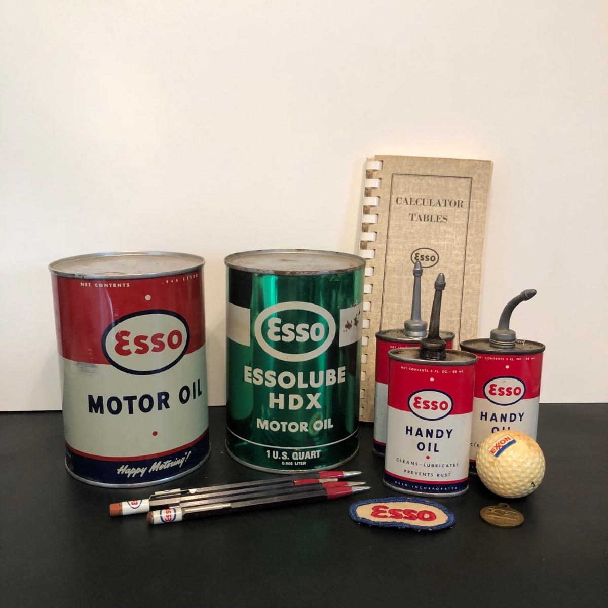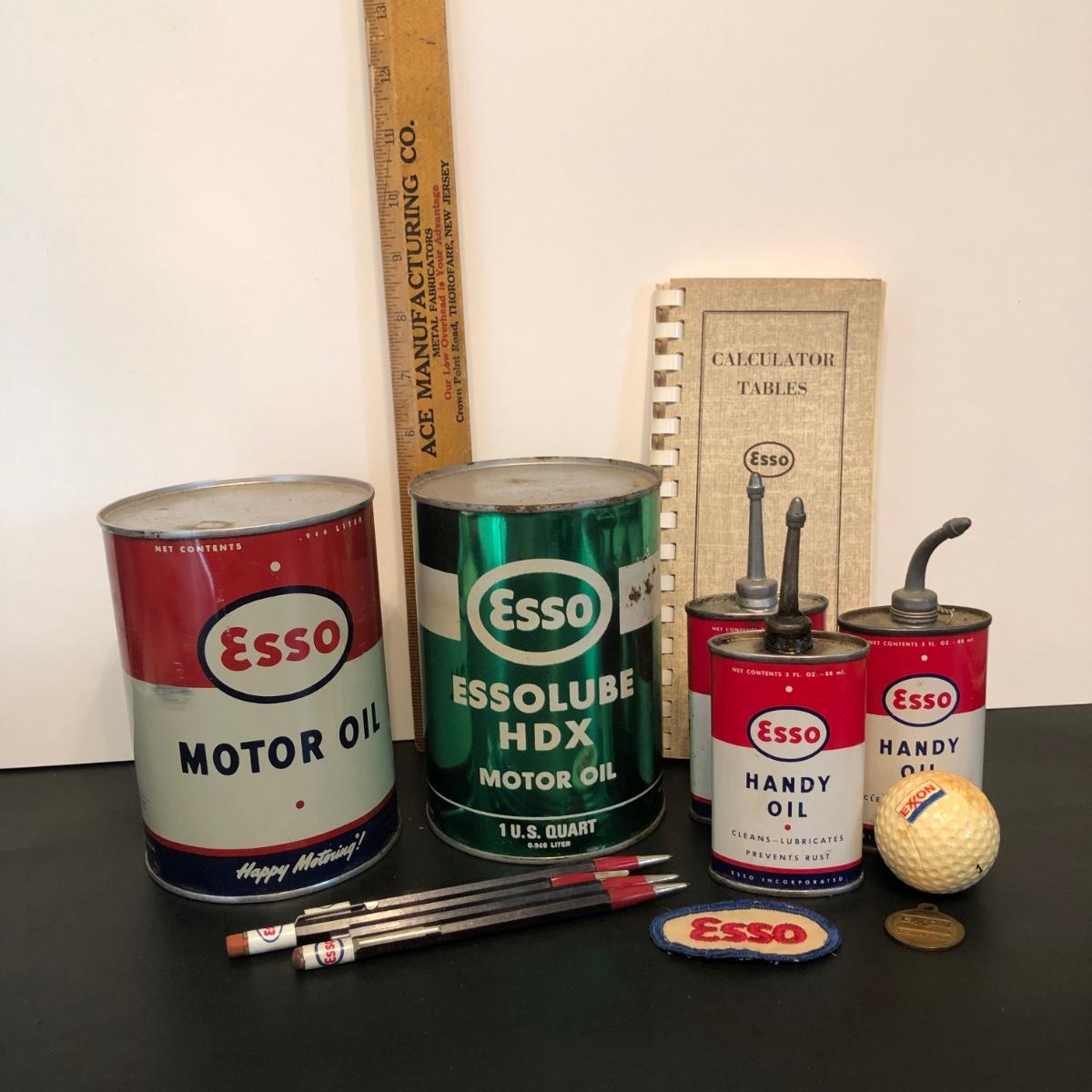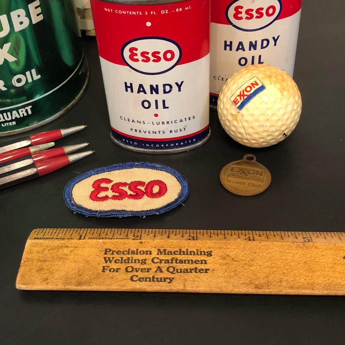LOT 154M: Esso Motor Oil, Handy Oil, Patch, Pencils & Calculator Tables w/ Exxon Golf Ball & Travel Club Coin