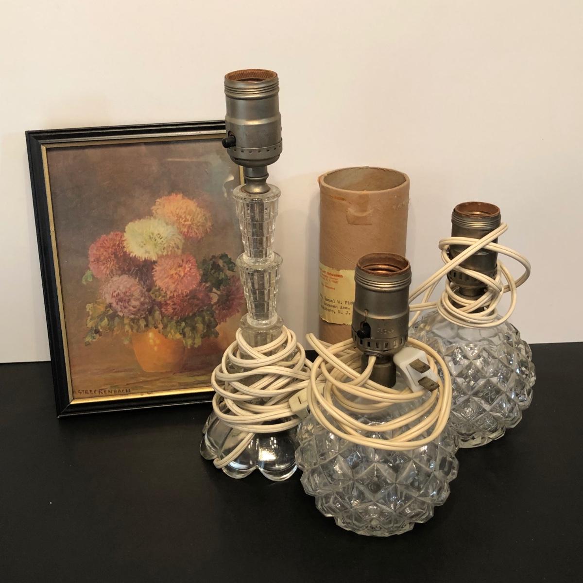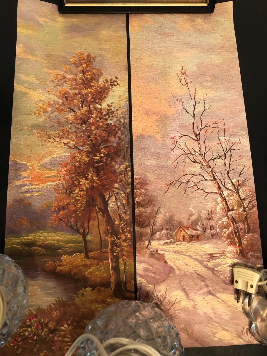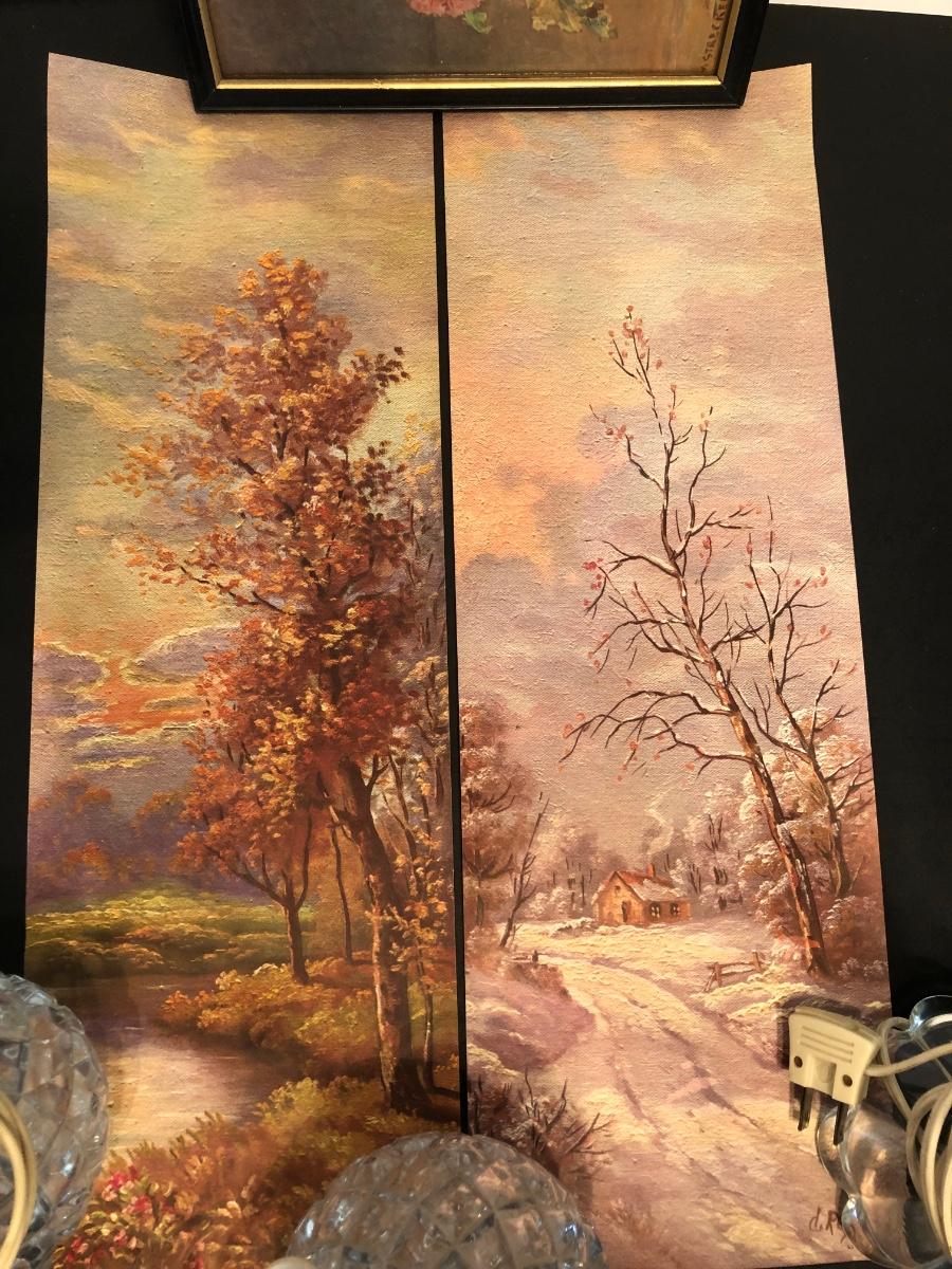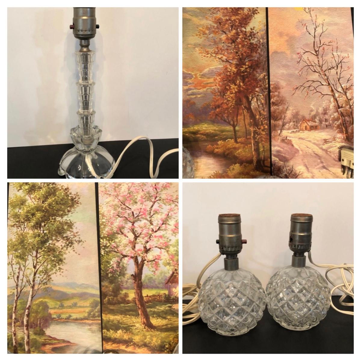 LOT 155M: Four Seasons Lithographs by C. Regan w/ Vintage Crystal Lamps & Signed Streckenbach Print