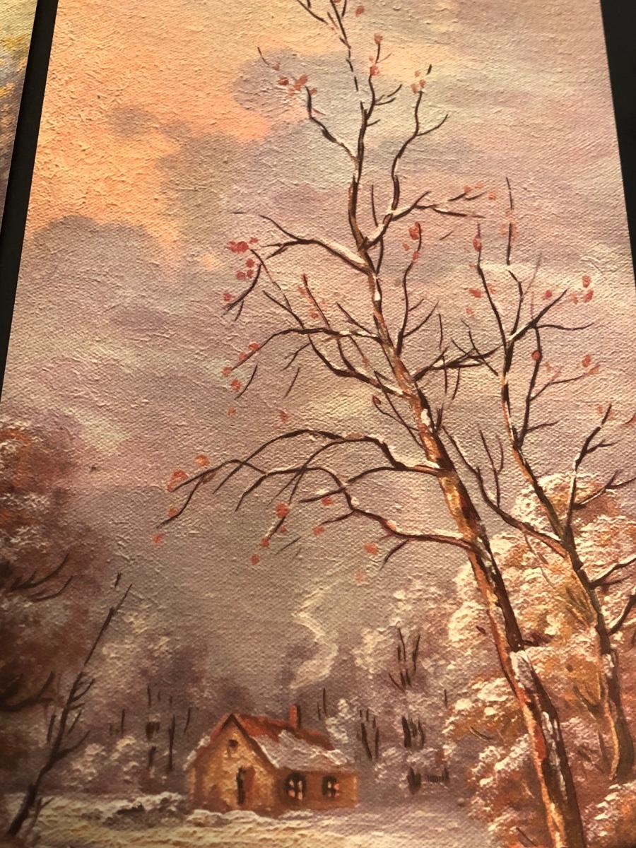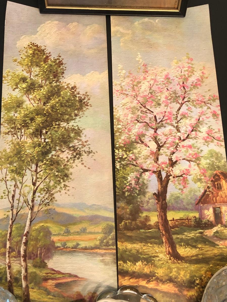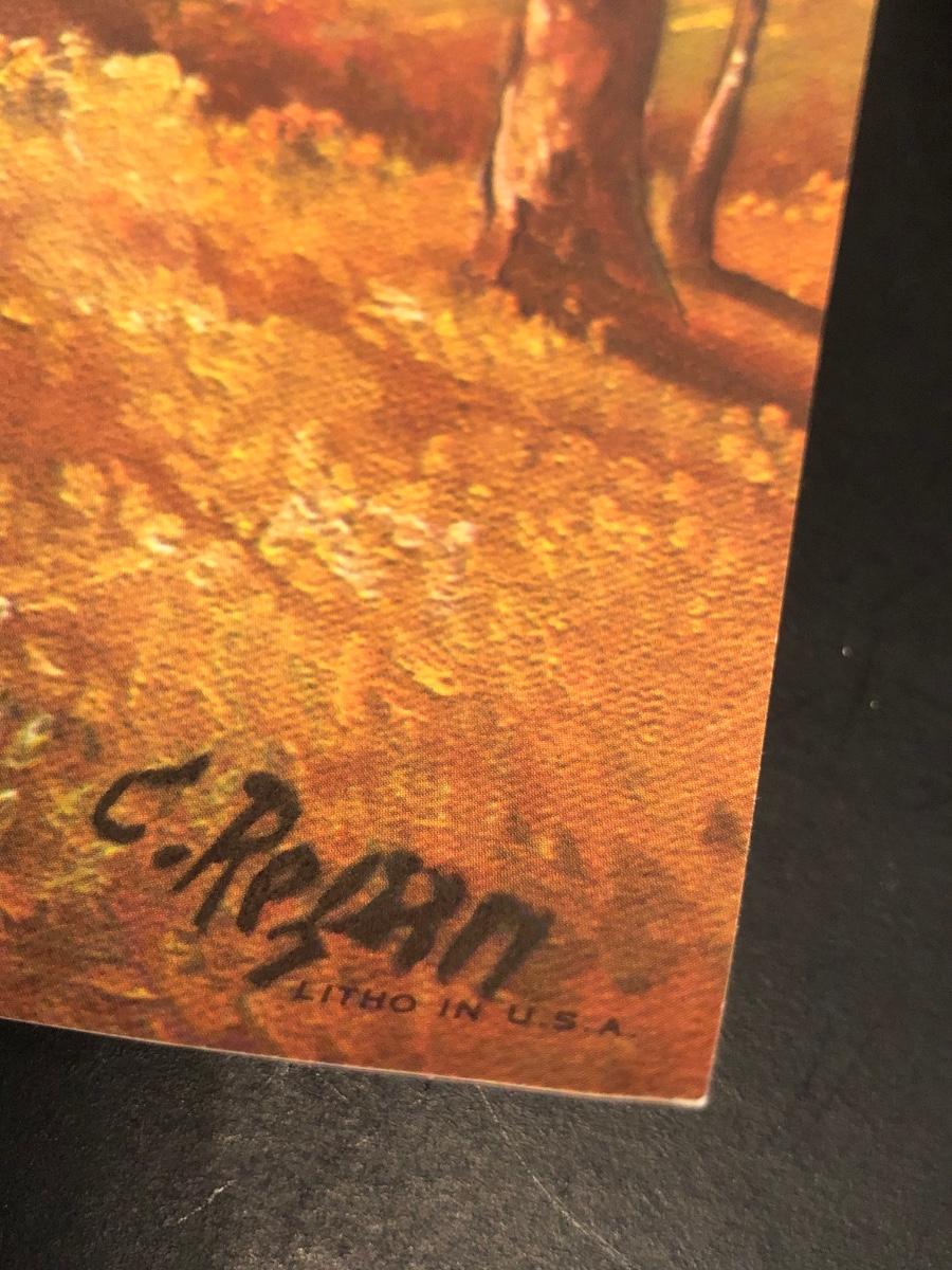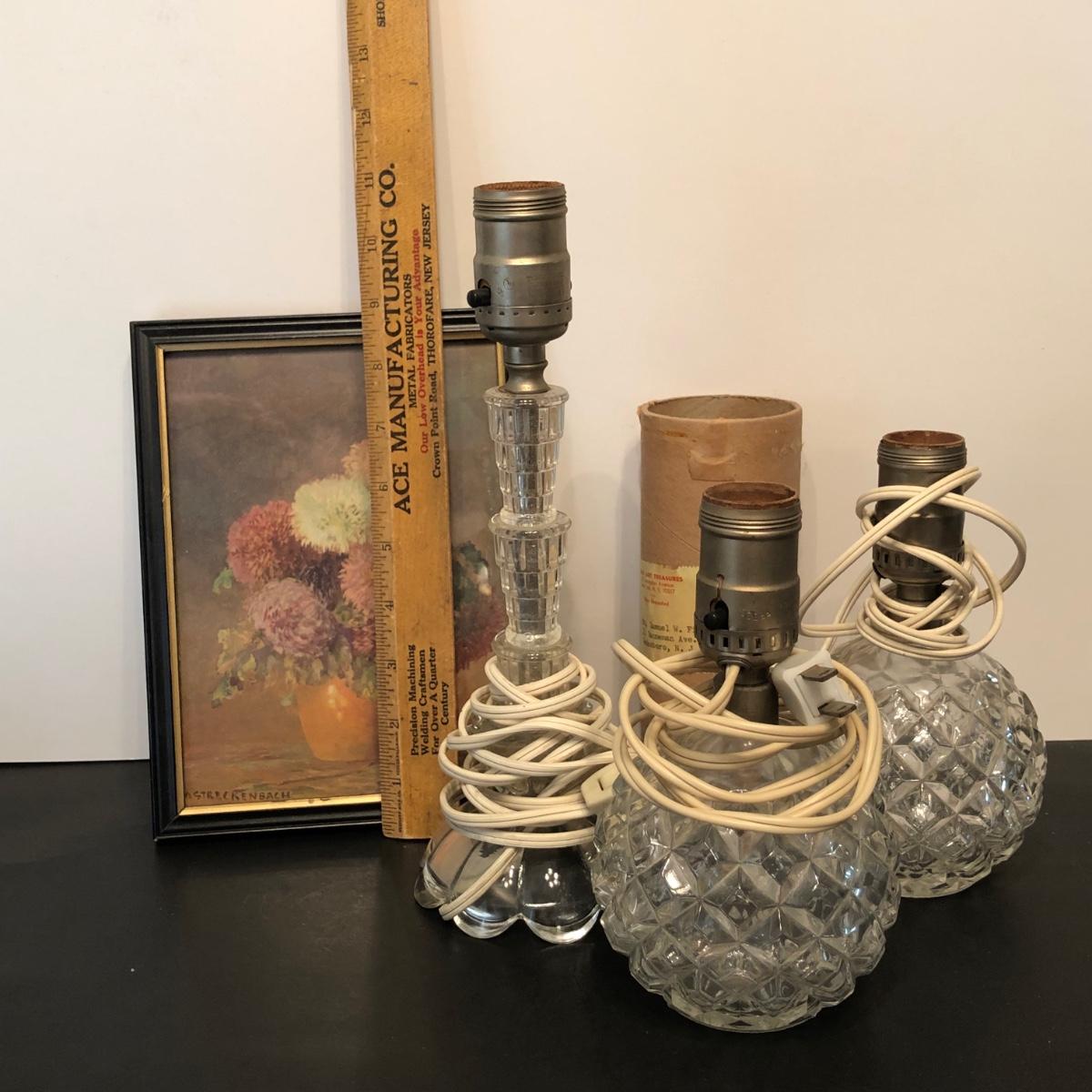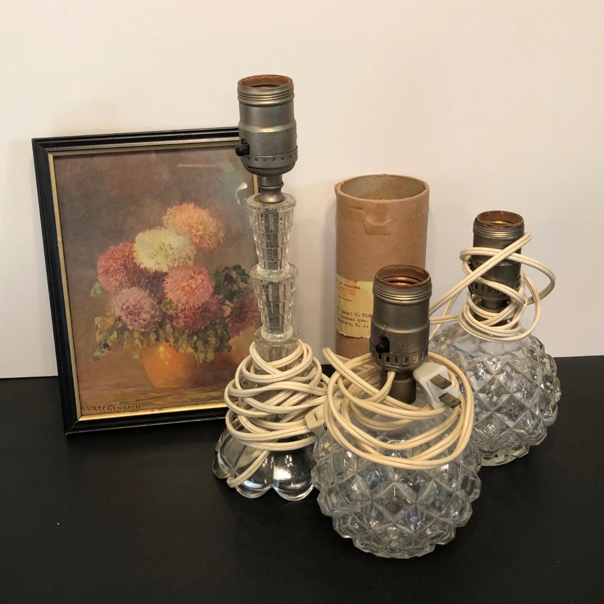 LOT 155M: Four Seasons Lithographs by C. Regan w/ Vintage Crystal Lamps & Signed Streckenbach Print