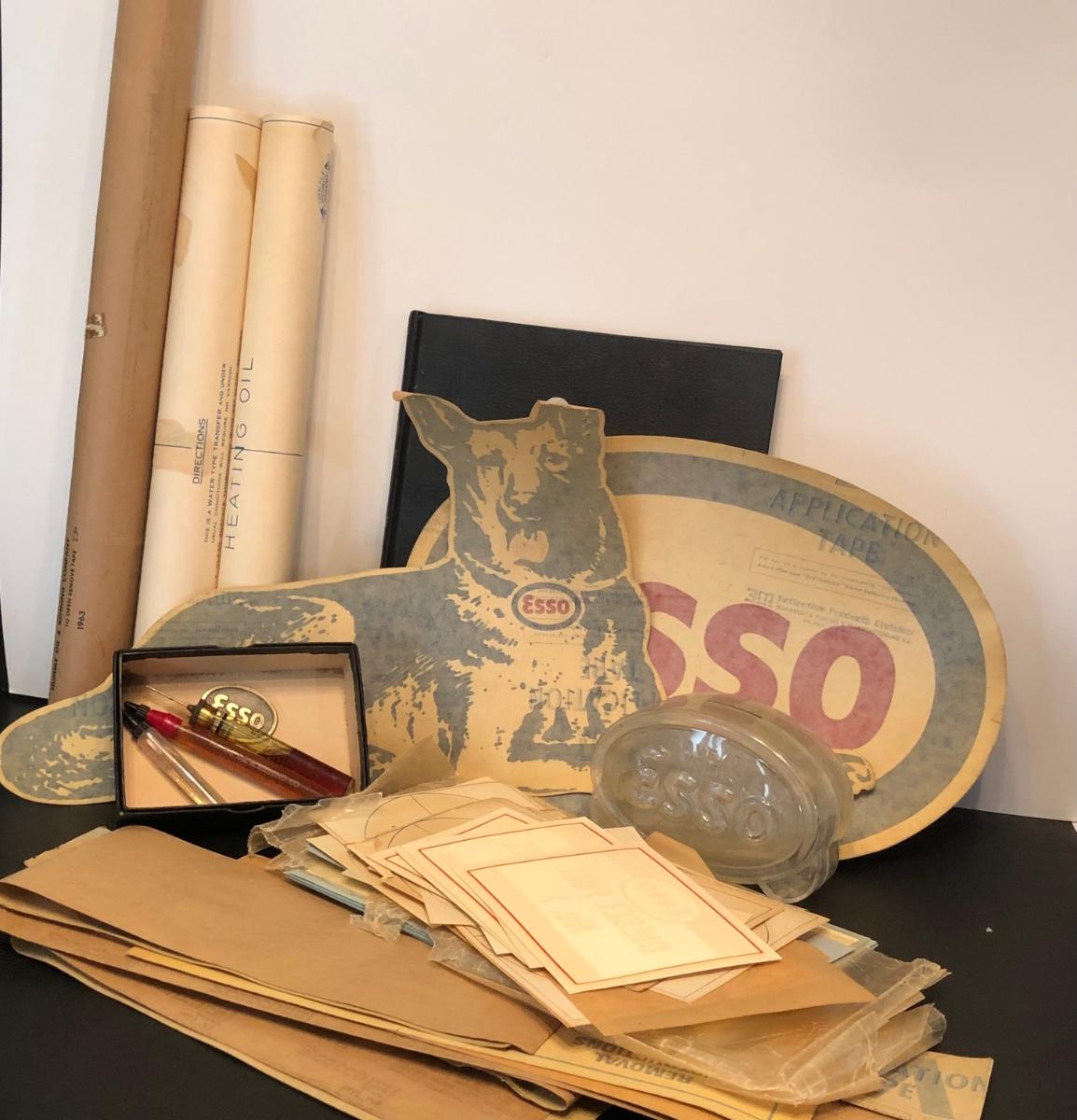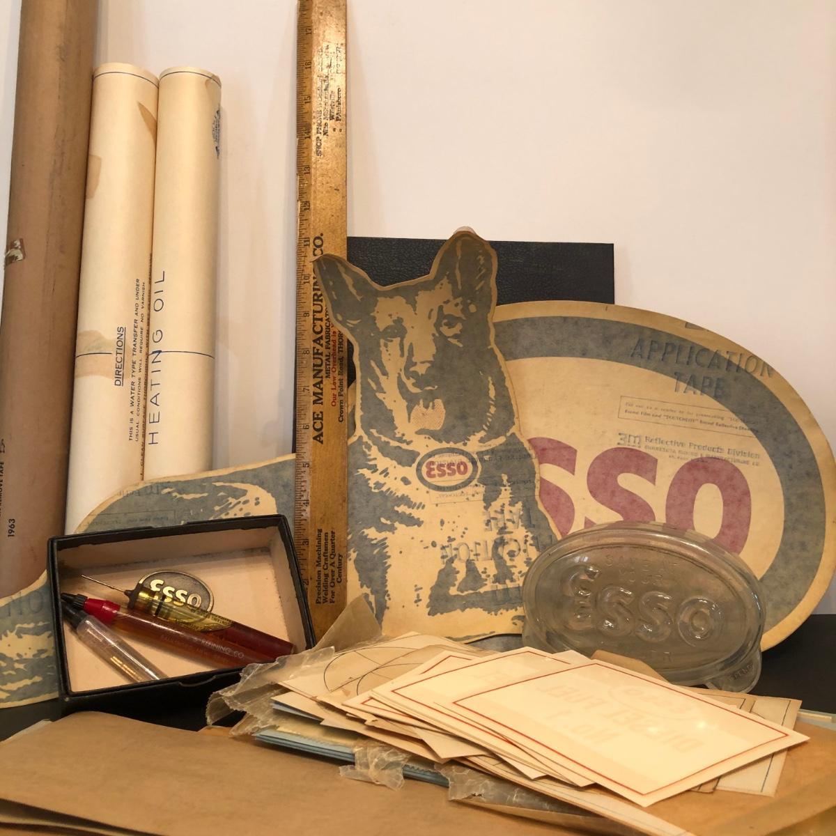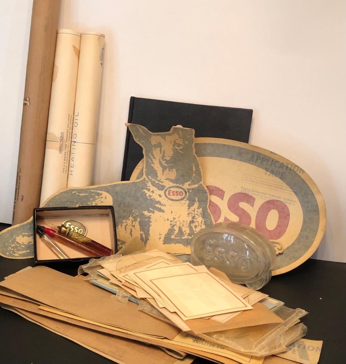 LOT 156M: Vintage Esso Heating & Oil Decals in Variety of Sizes w/ Plastic Esso Coin Bank & More