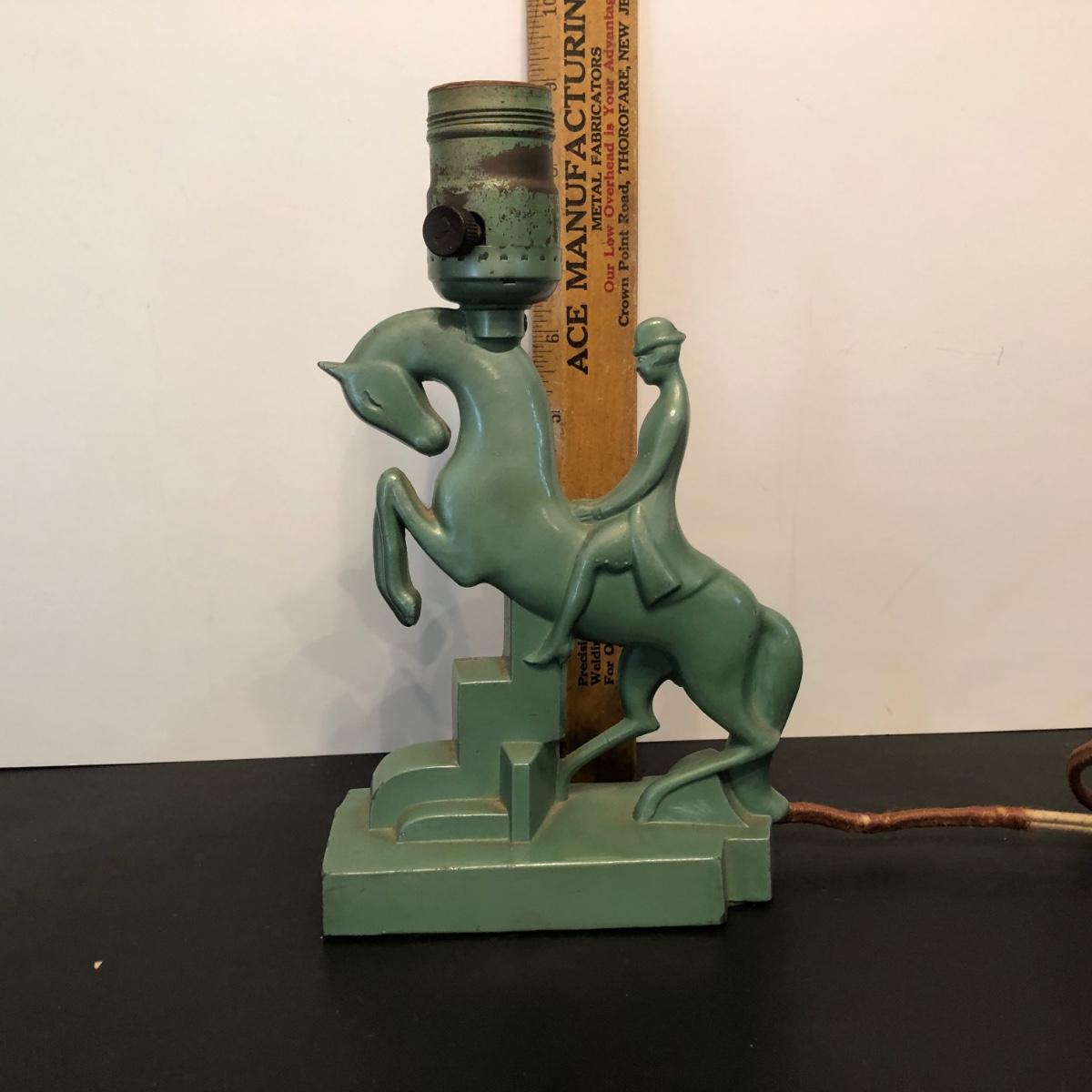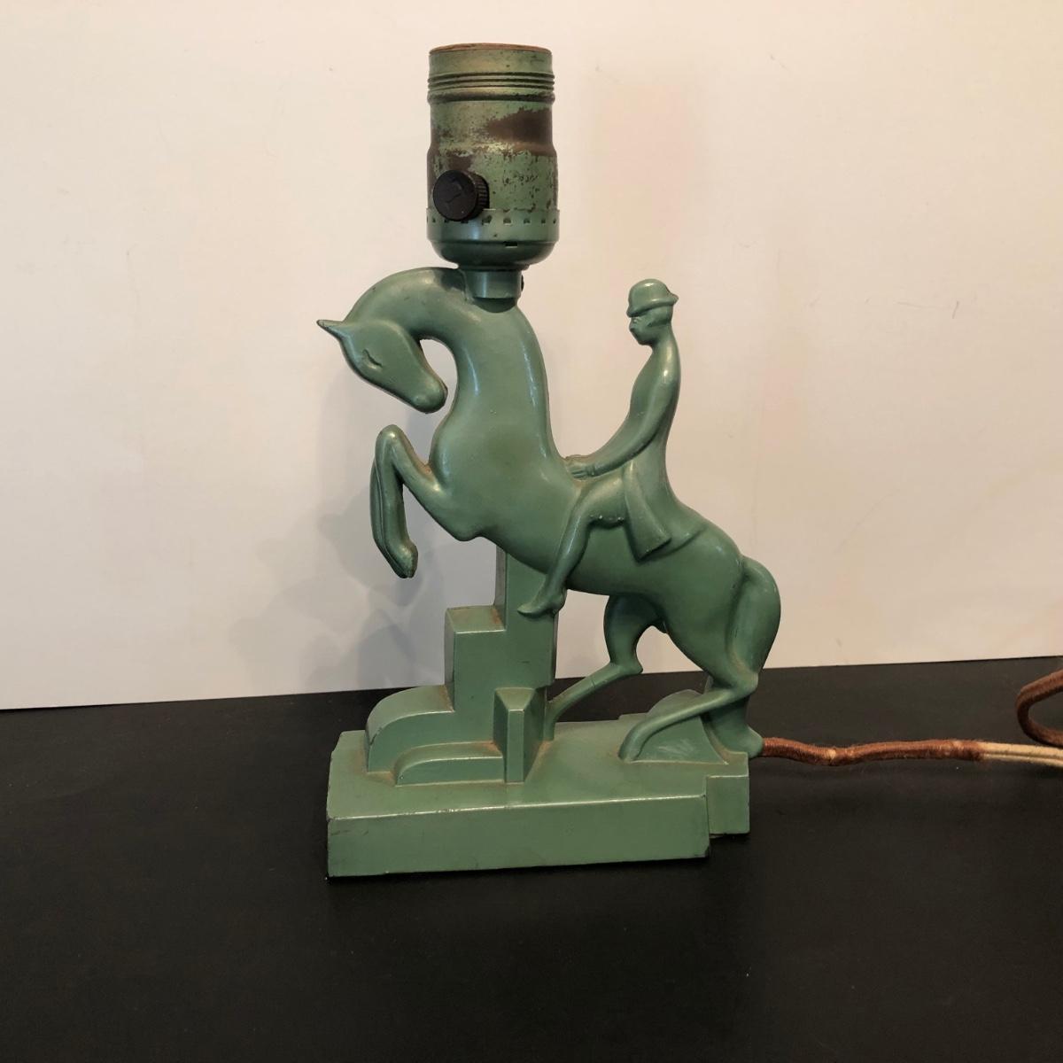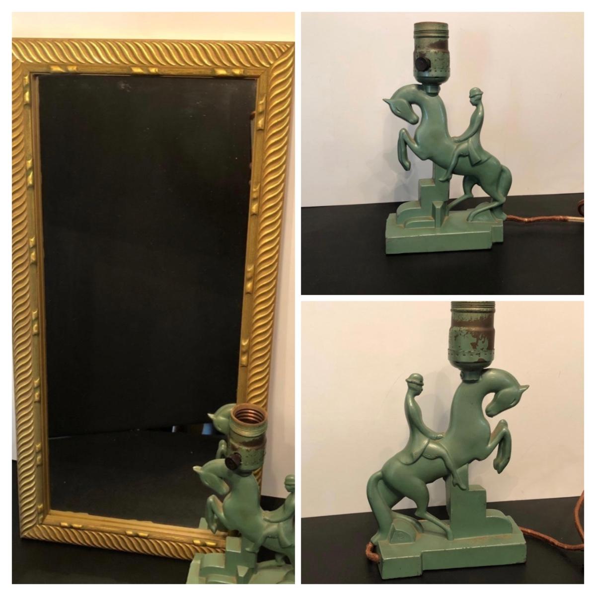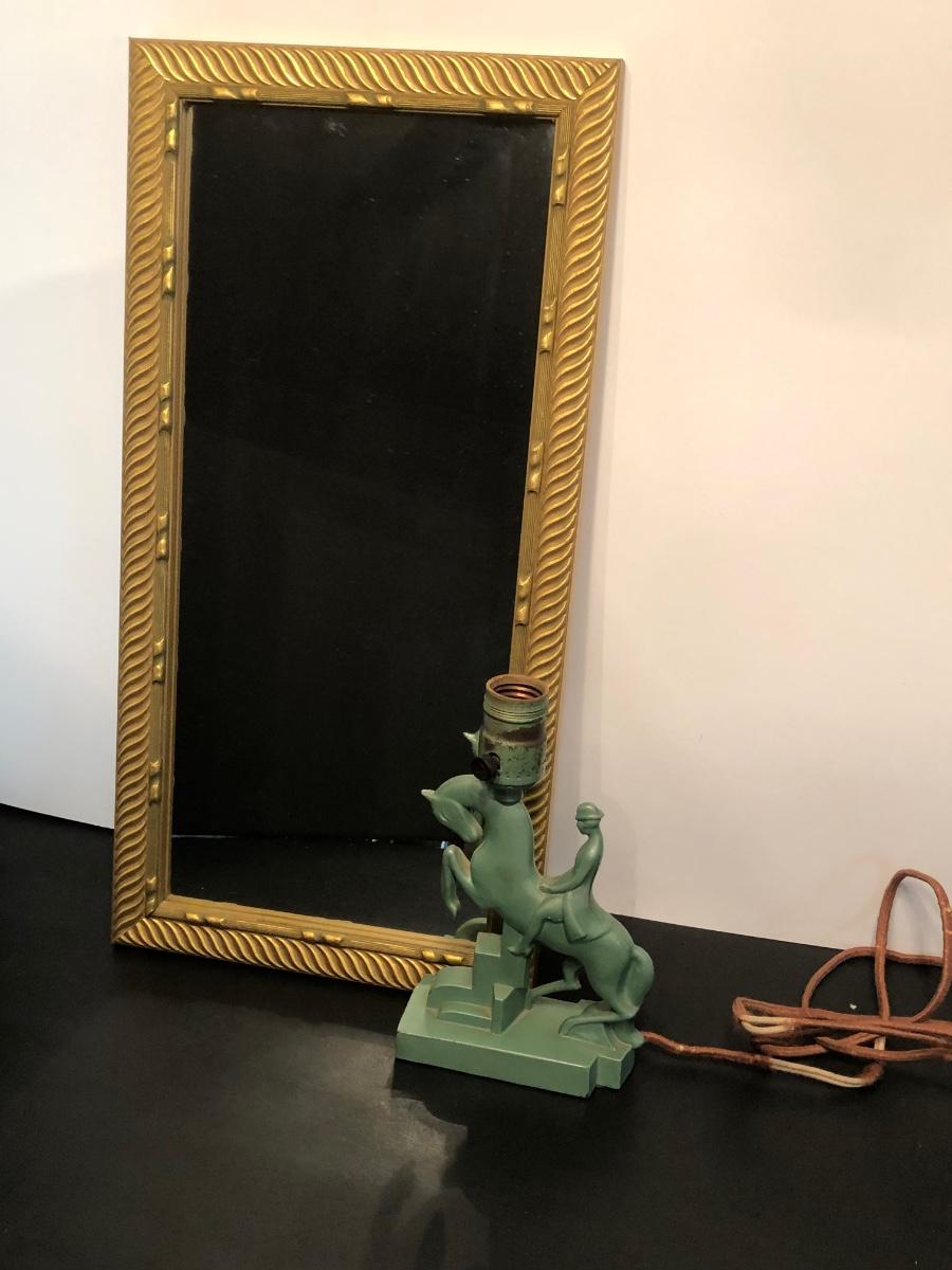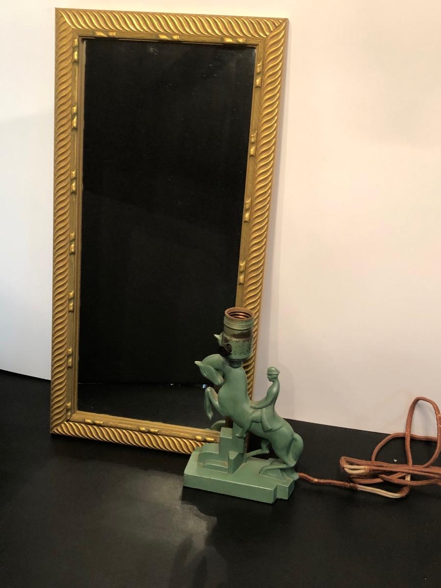 LOT 161M: Vintage Equestrian Rider Lamp w/ Gold Colored Mirror
