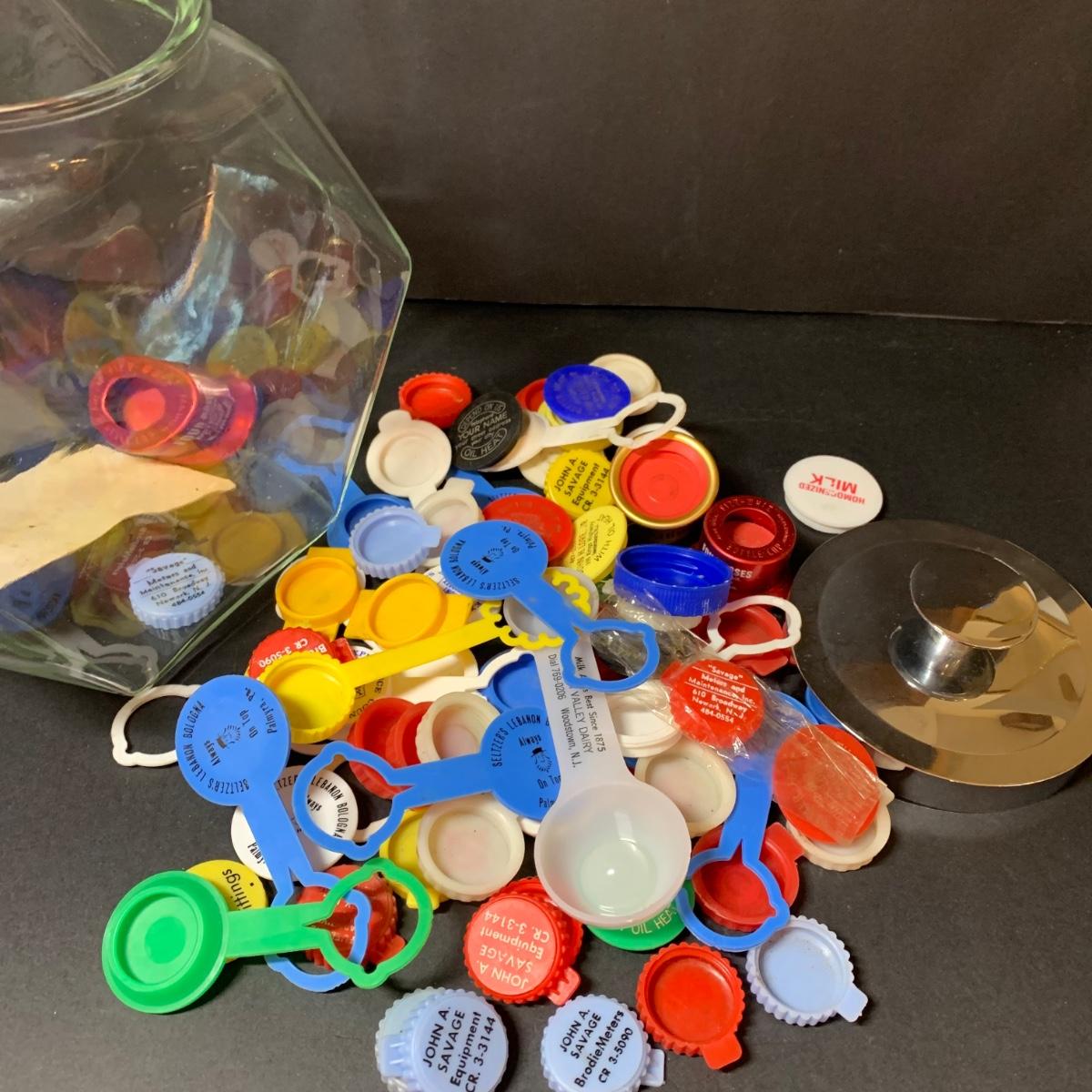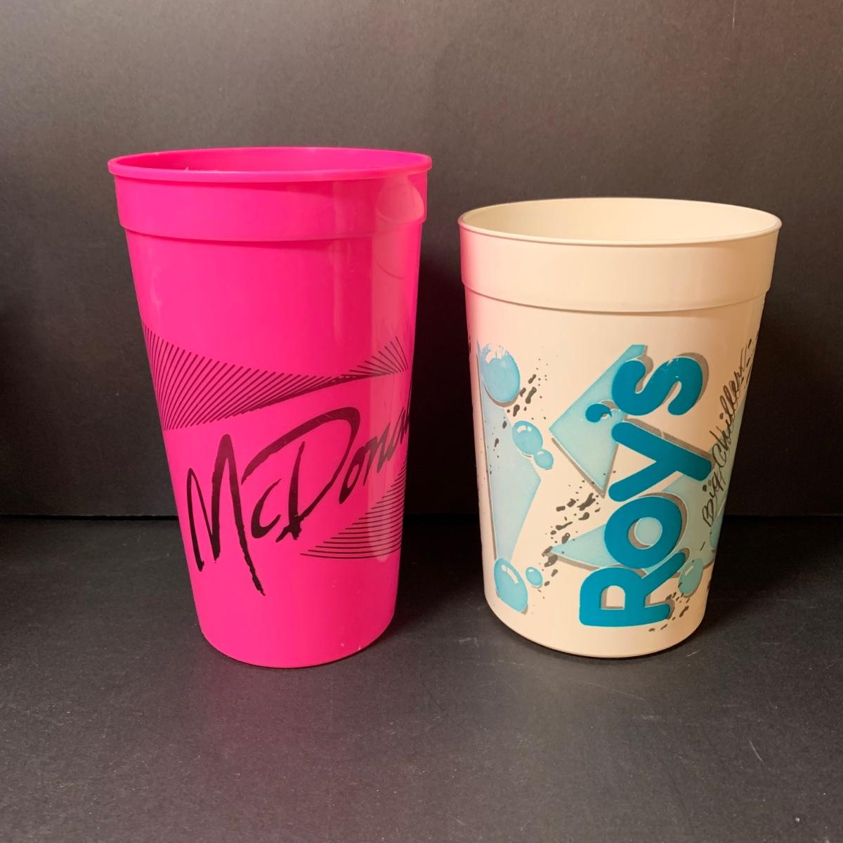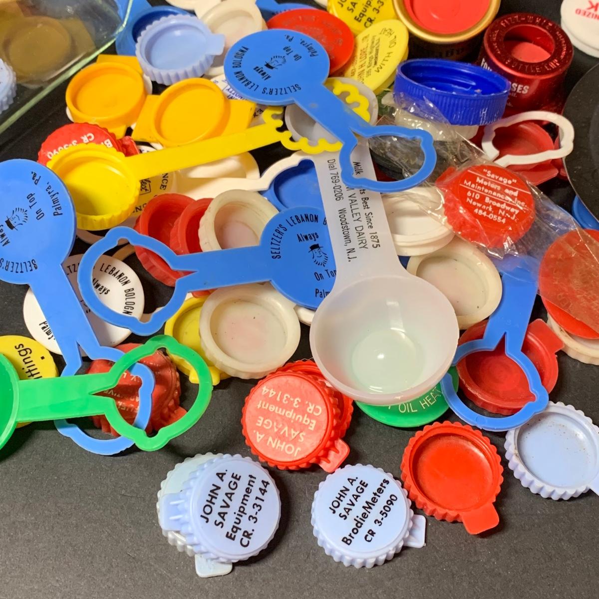 LOT 165R: Vintage Promotional Cups: Richman's Ice Cream, McDonalds, Mobil, Phillies & Vintage Advertising Old Pop/Soda Bottle Replaceable Lids