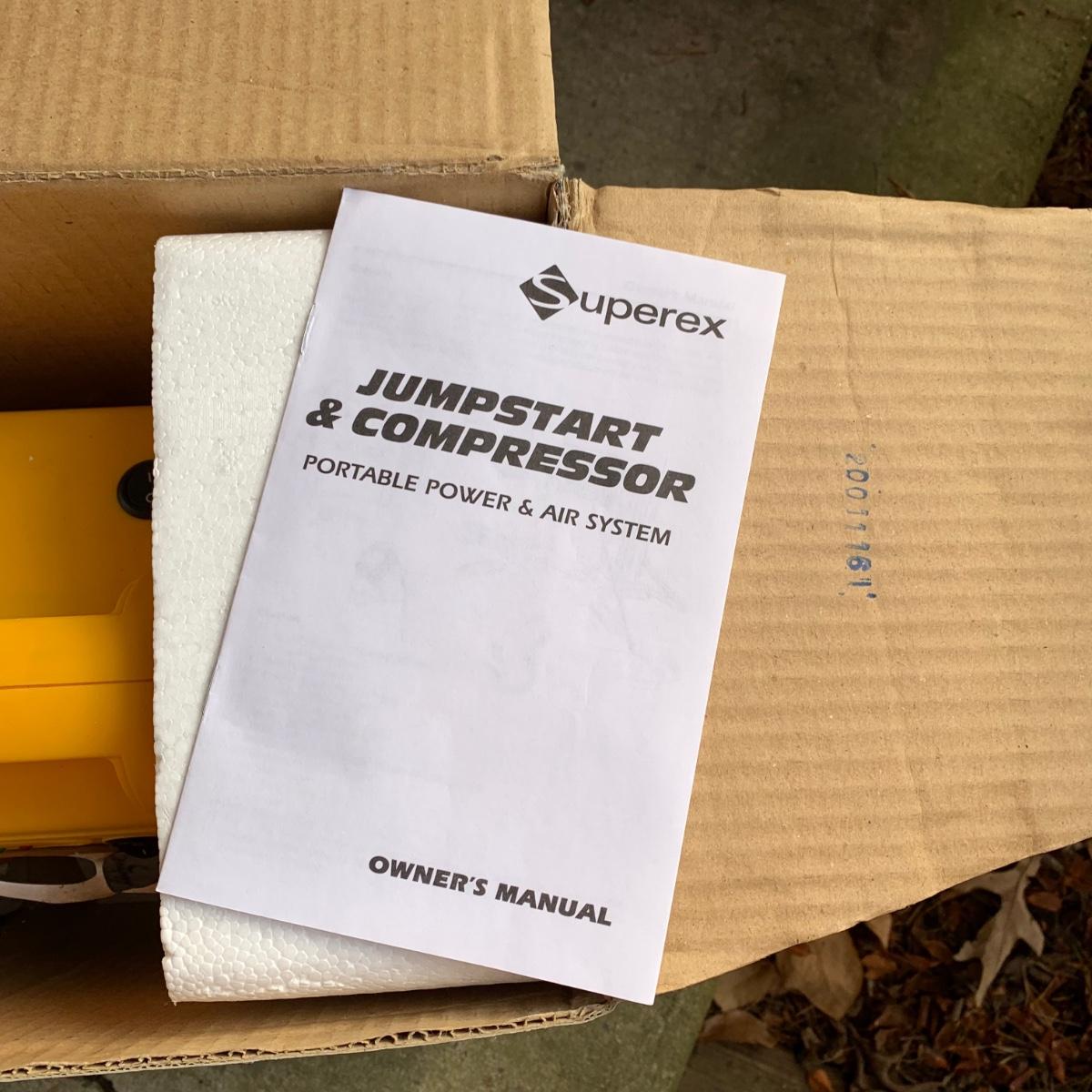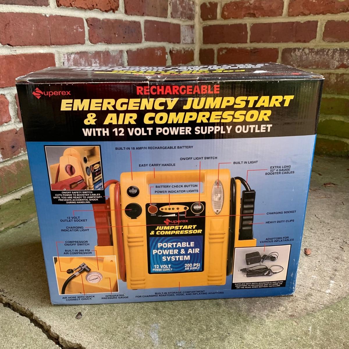 LOT 166R: Superex Rechargeable Emergency Jumpstart & Air Compressor