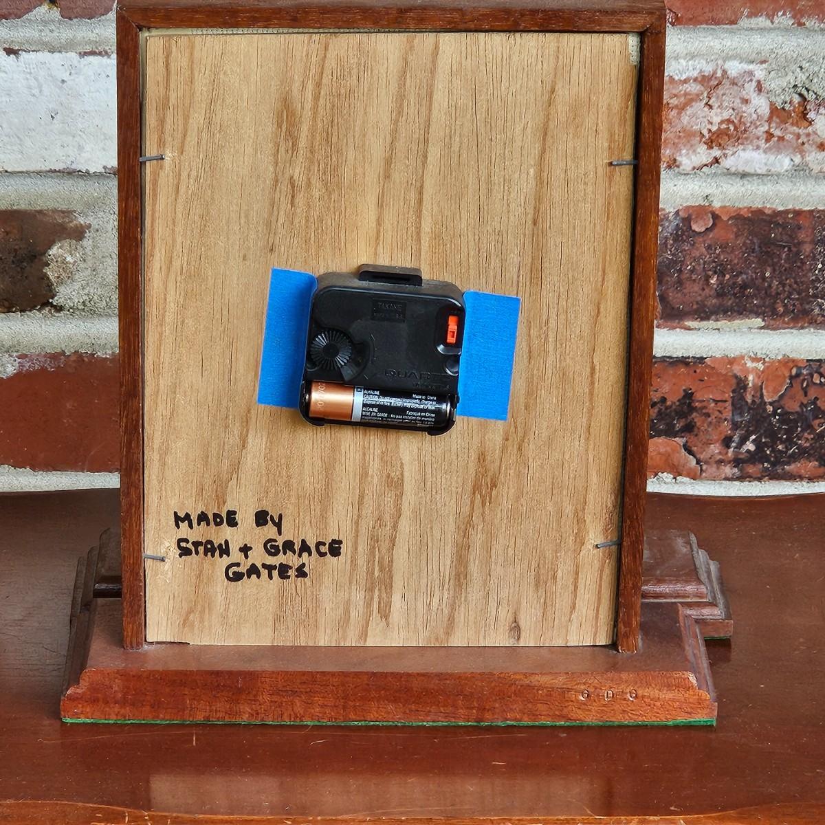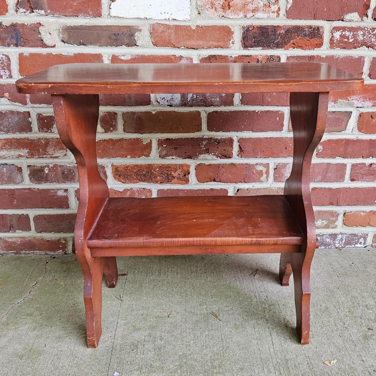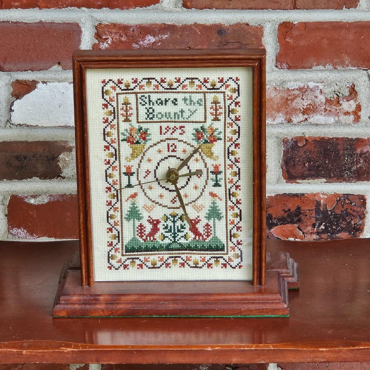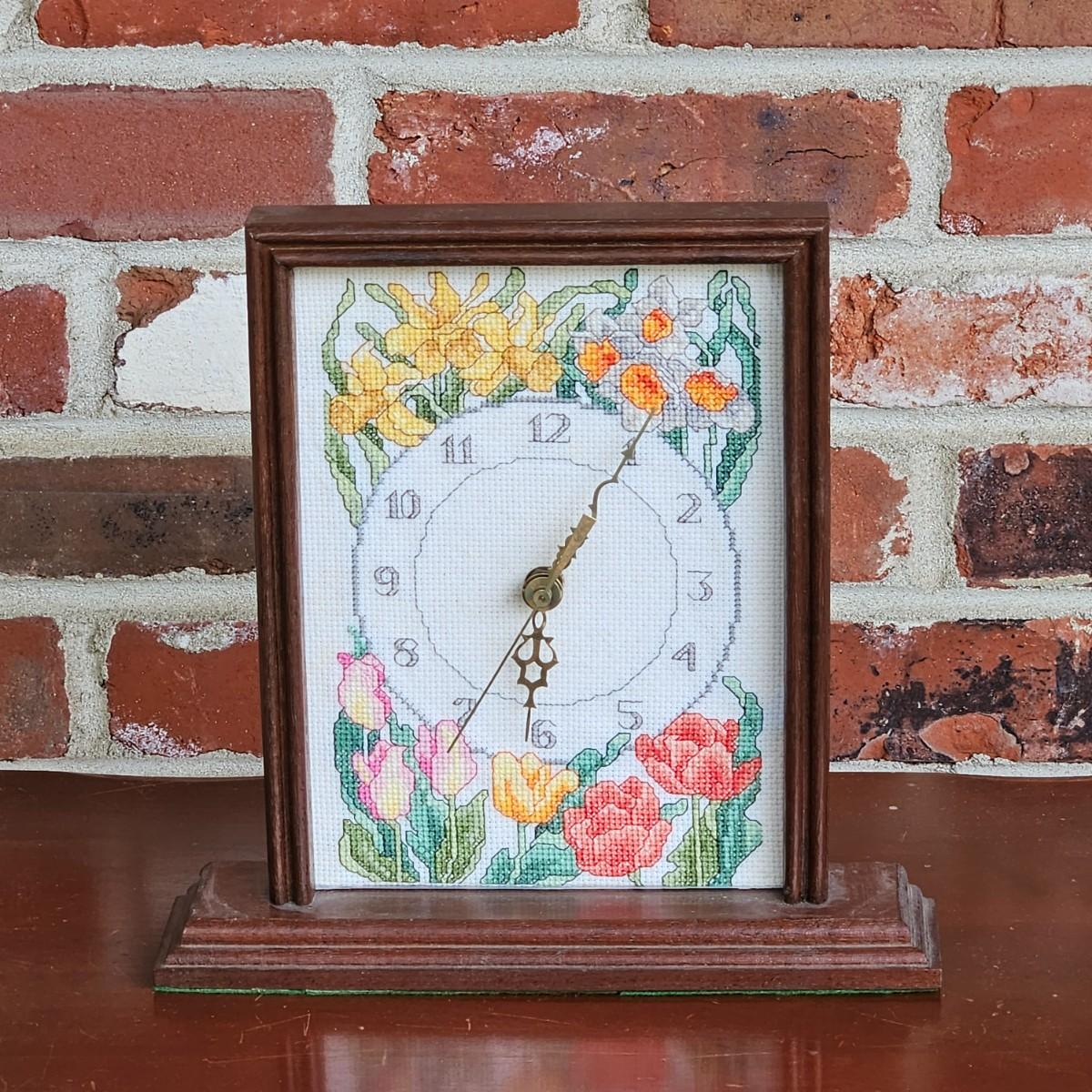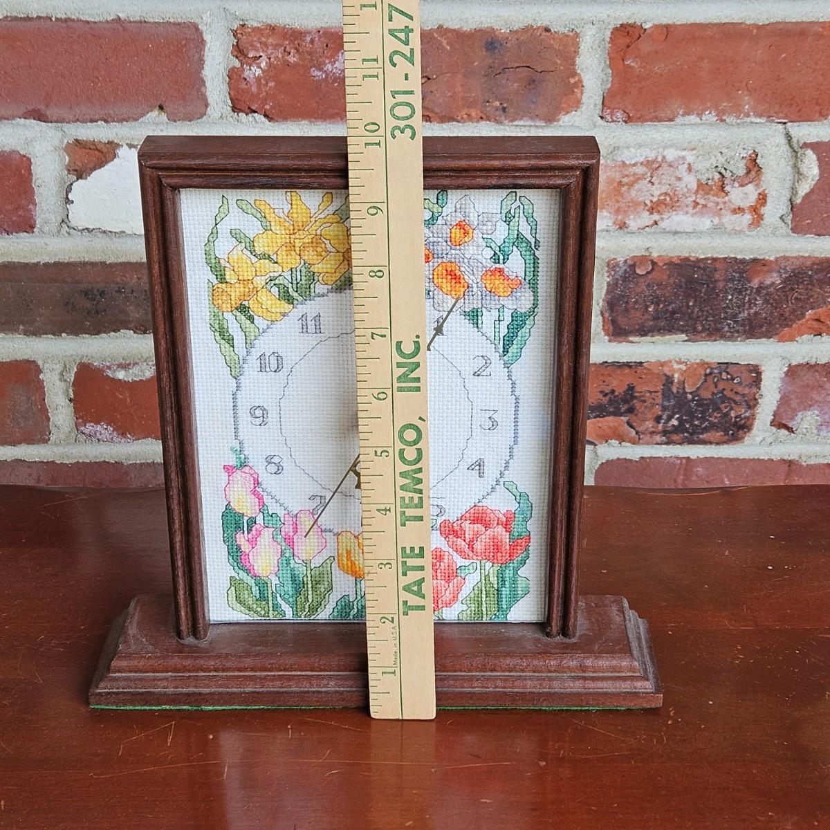 LOT 193S: Vintage Wooden Side Table & Crosstitch Clocks