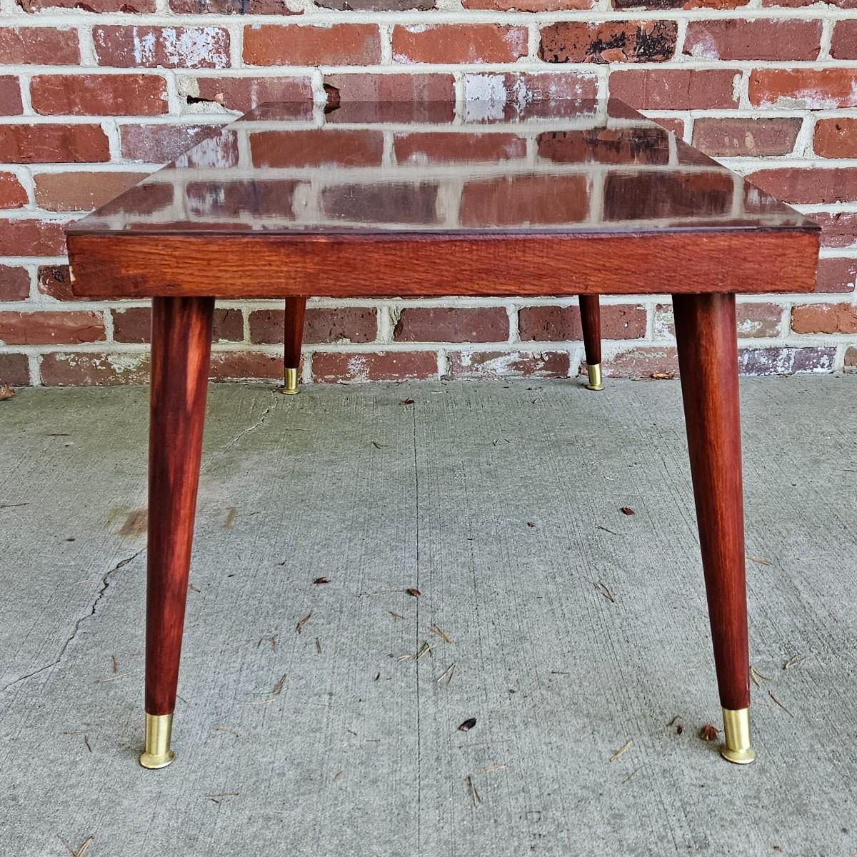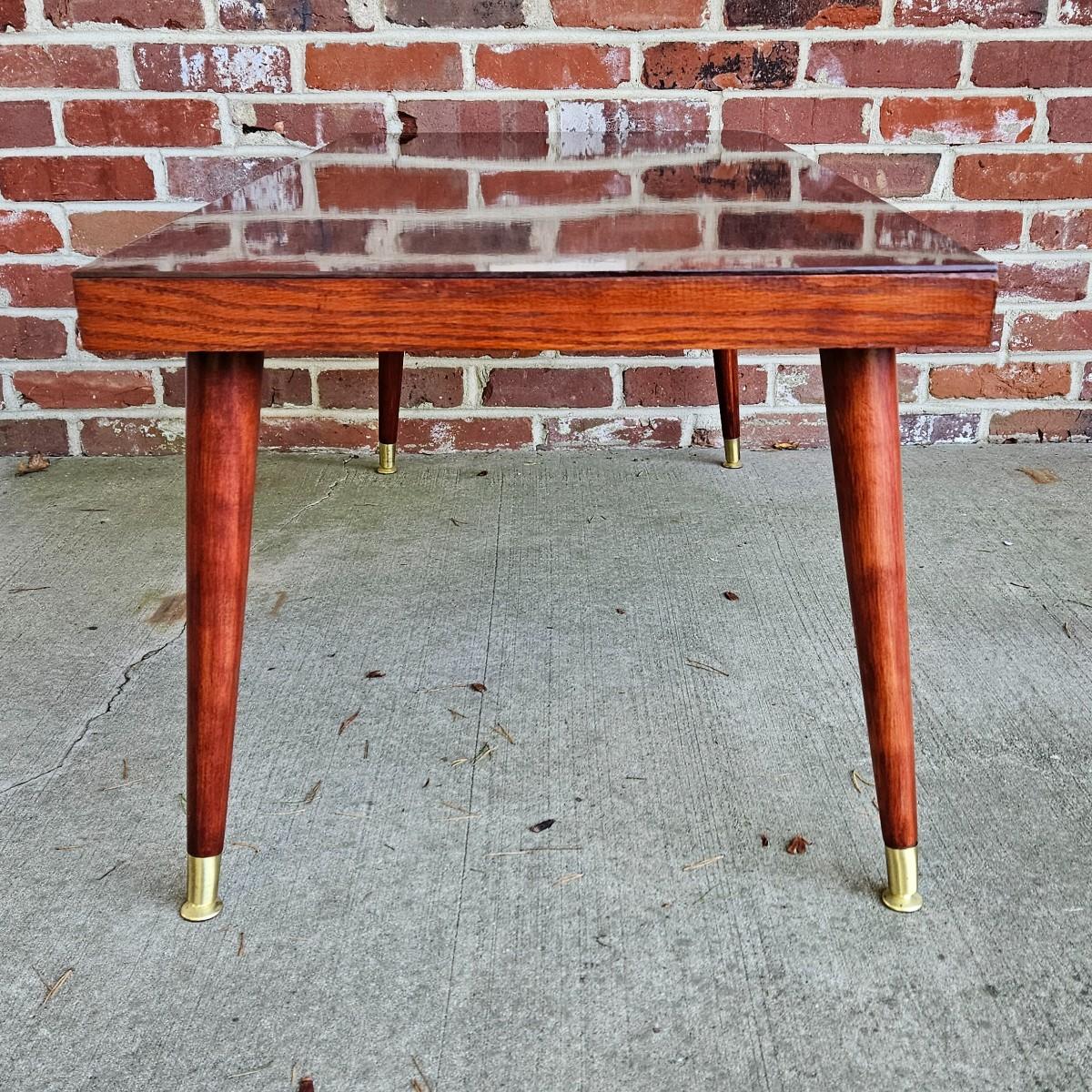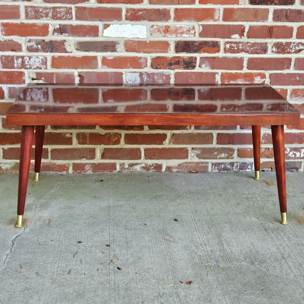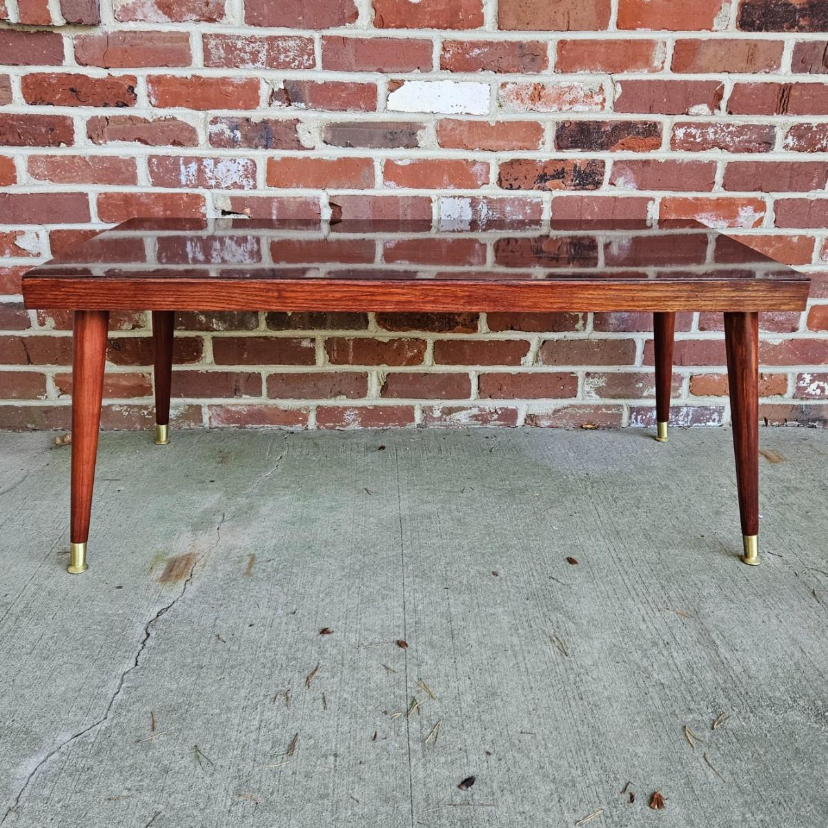 LOT 200S: MCM Wood Coffee Table with Brass Feet