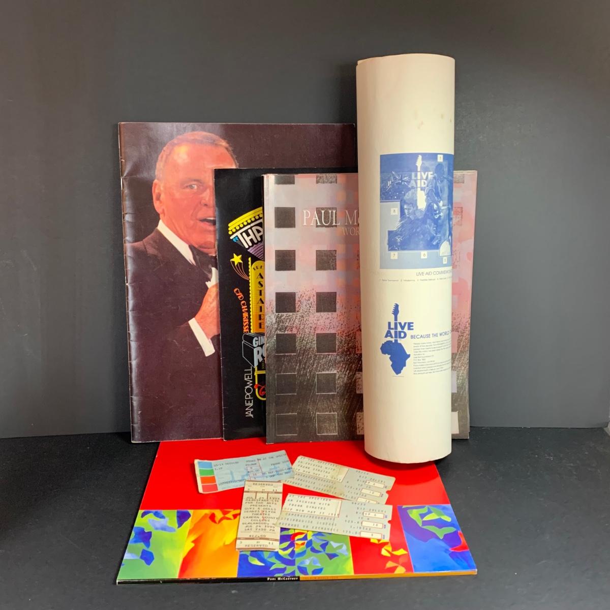 LOT 217R: Vintage Live Aid Poster, Ticket Stubs, Frank Sinatra Concert Program, Paul McCartney World Tour Books & Vintage PlayBills