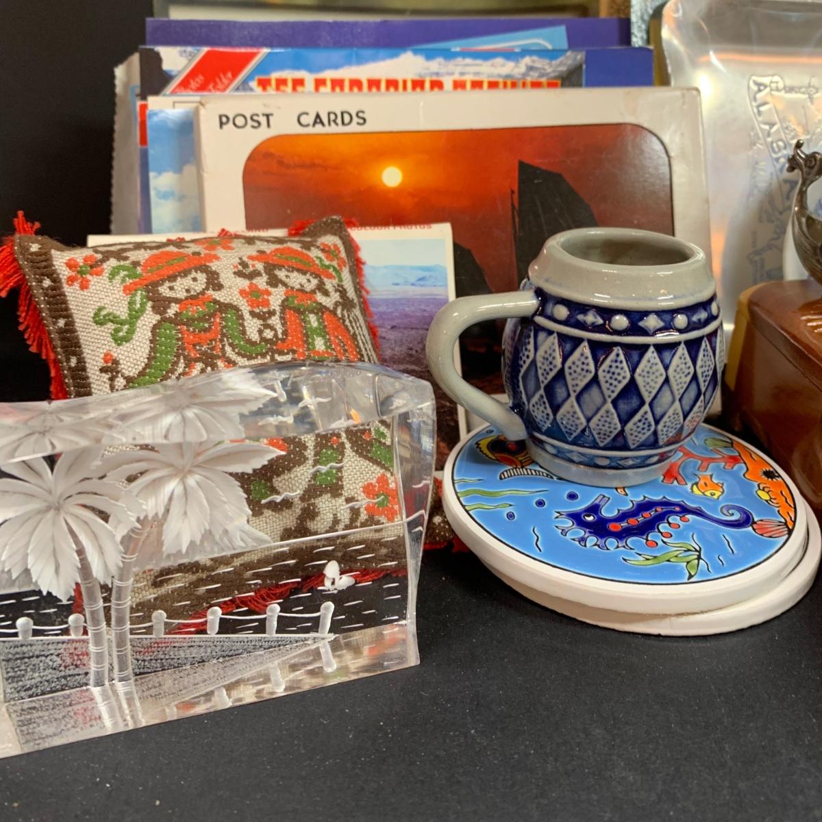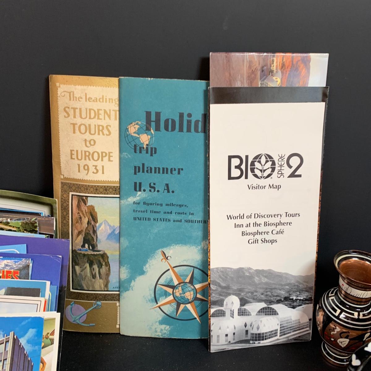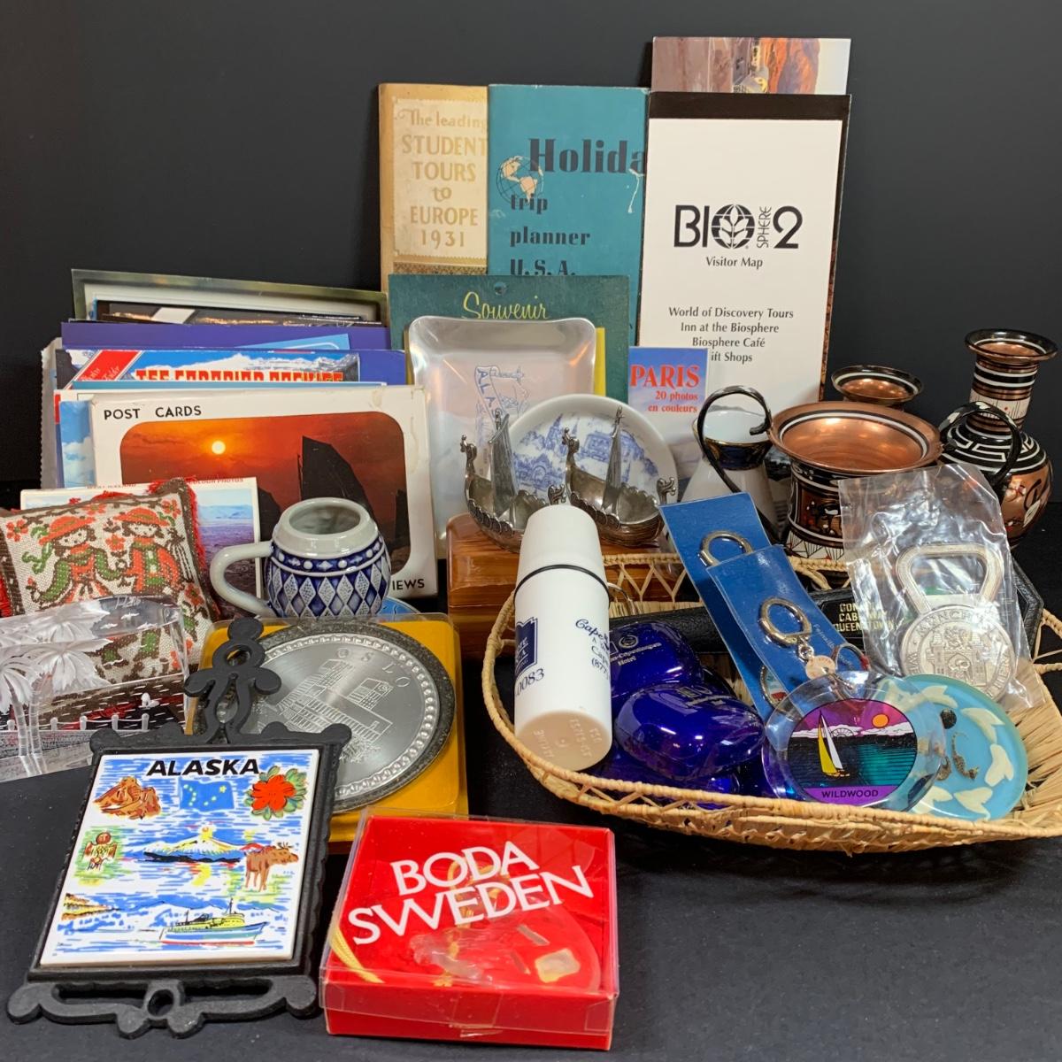 LOT 241R: Souvenirs & More Collection: Pamphlets, Post Cards, Key Chains, Vases Trivets - Just a fun lot to explore!
