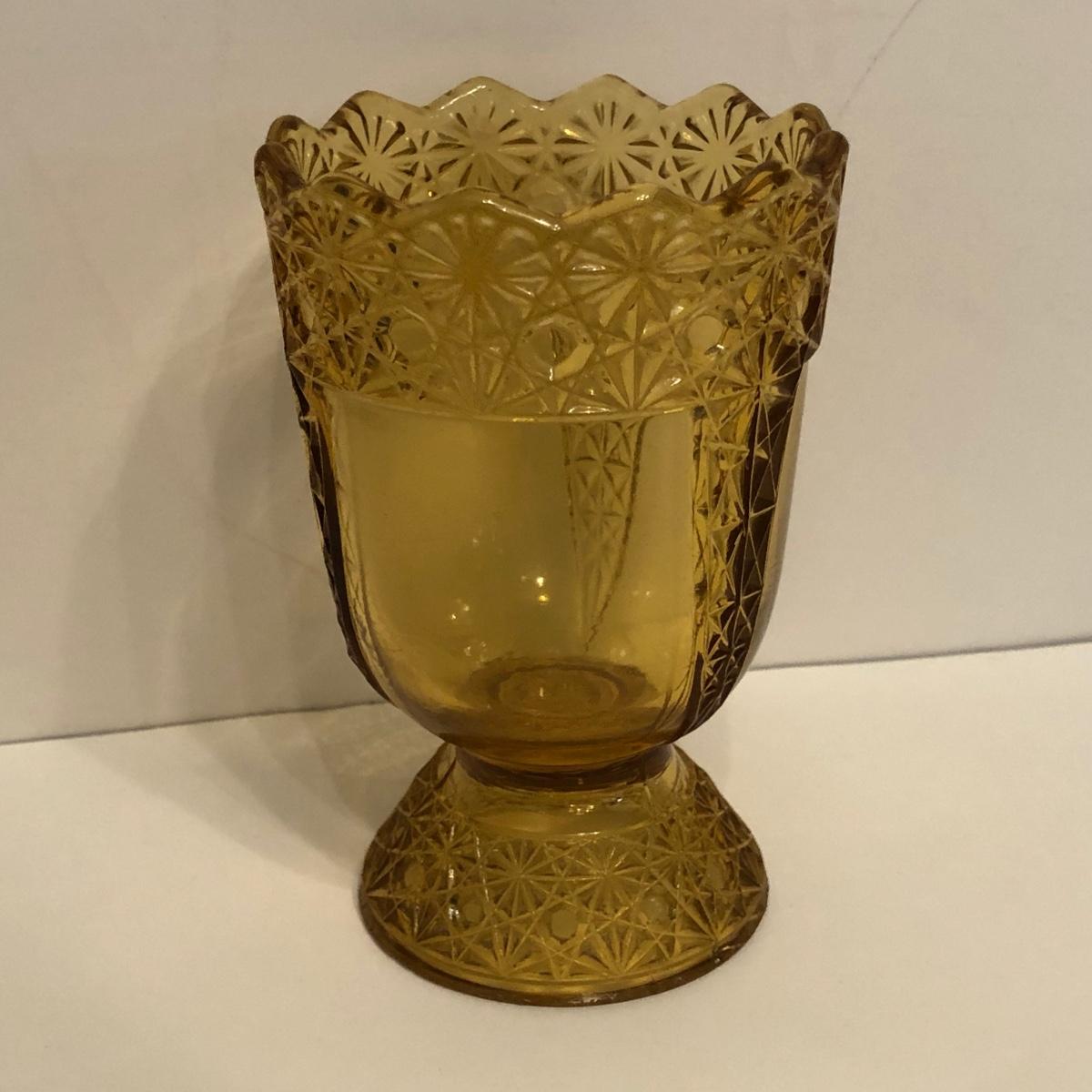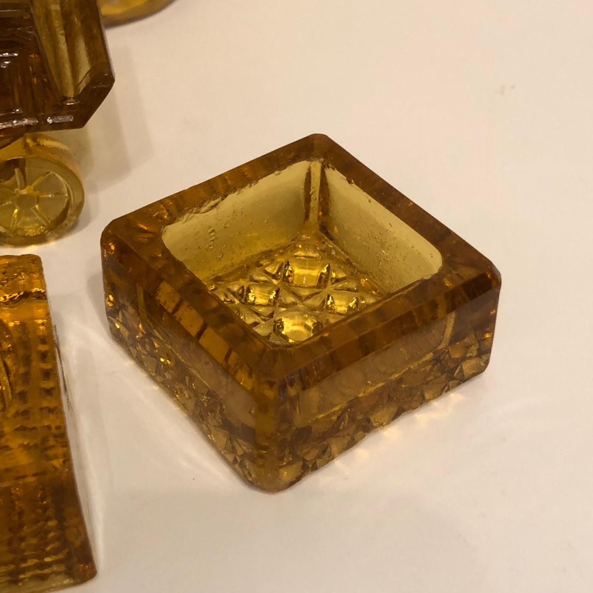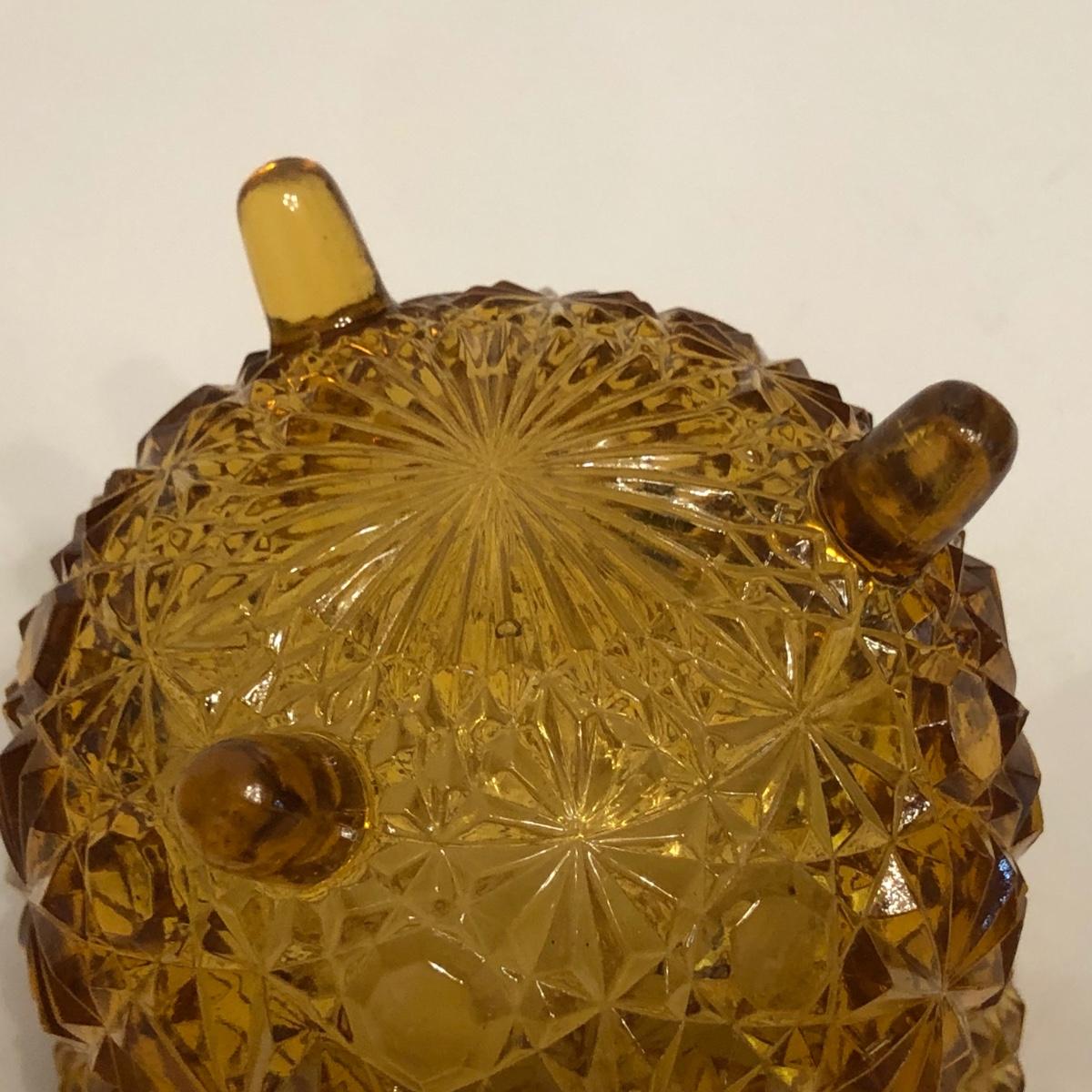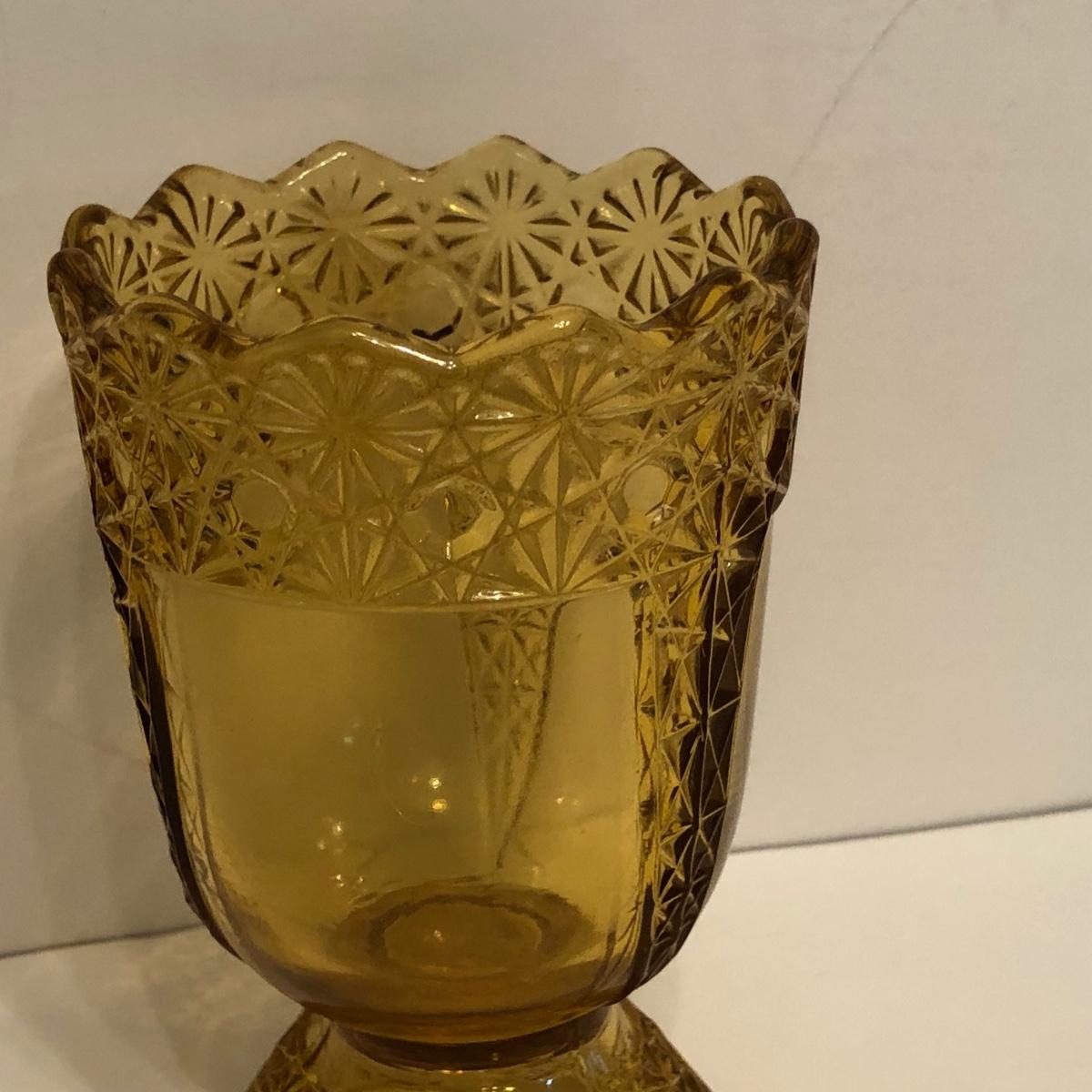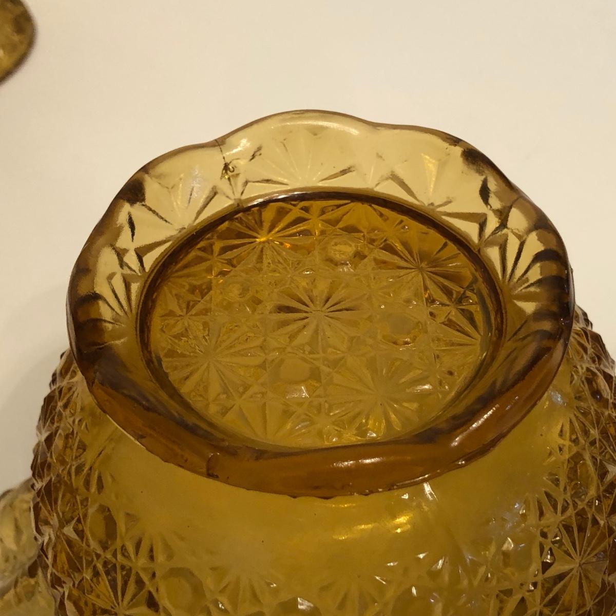 LOT 249M: Vintage Amber Cut Glass - Daisy & Button Crimp Edge Bowl, Daisy & Button Small Footed Bowl, Mid-Century Buggy & Salt Dishes
