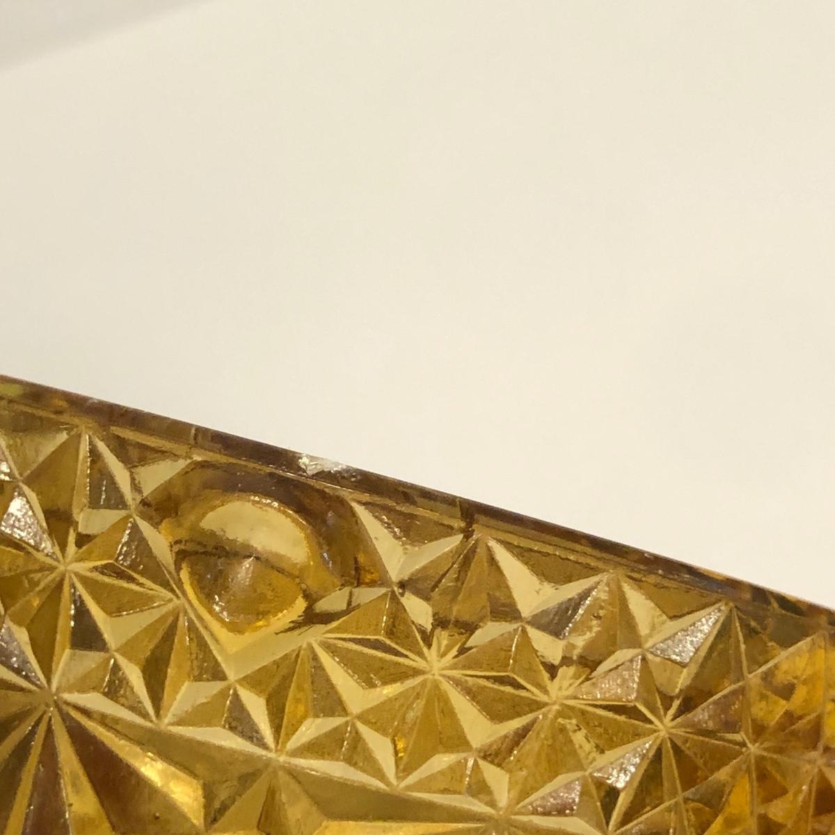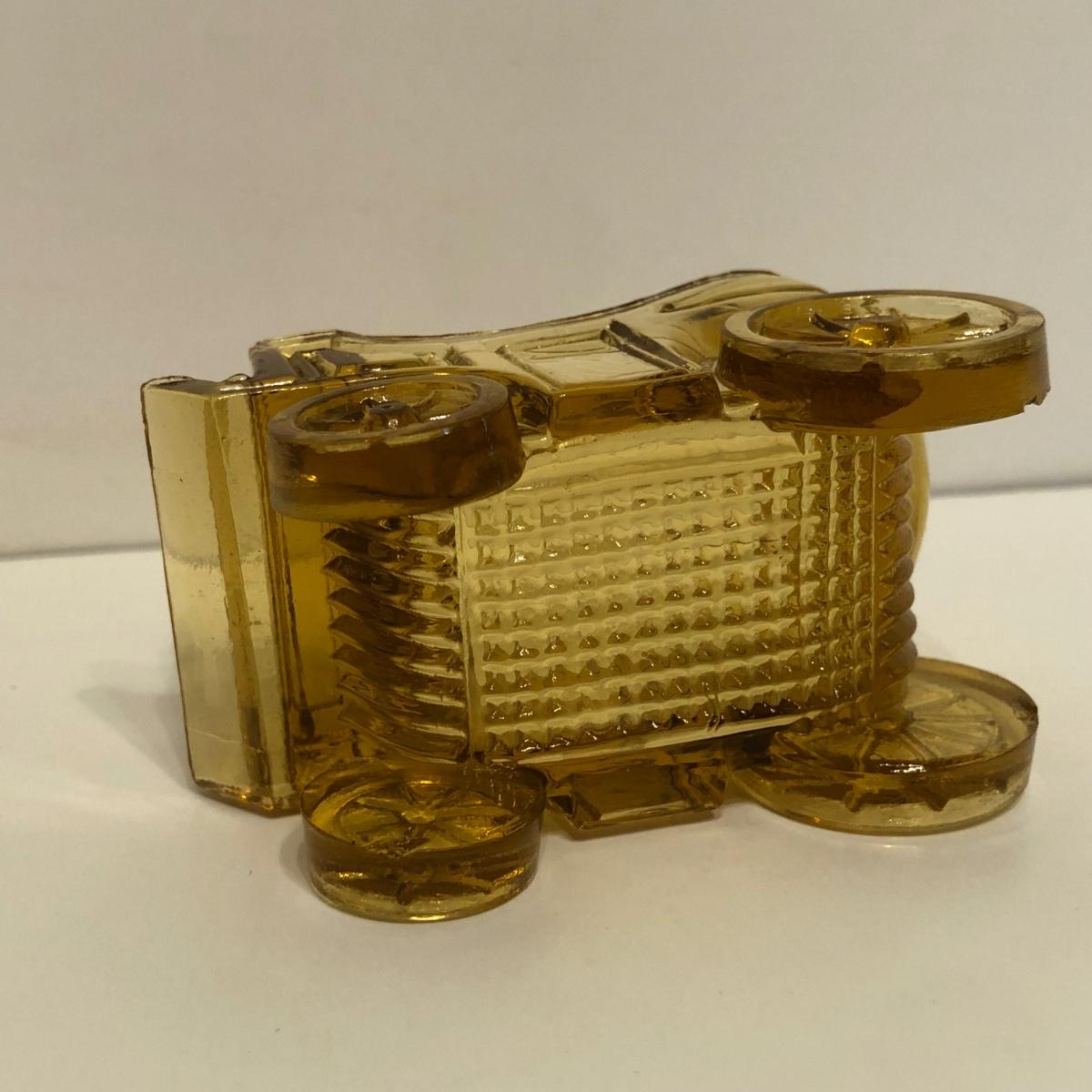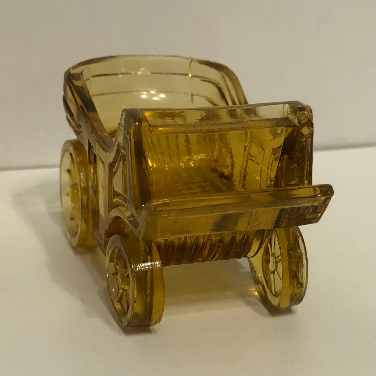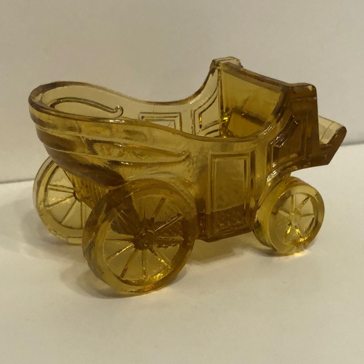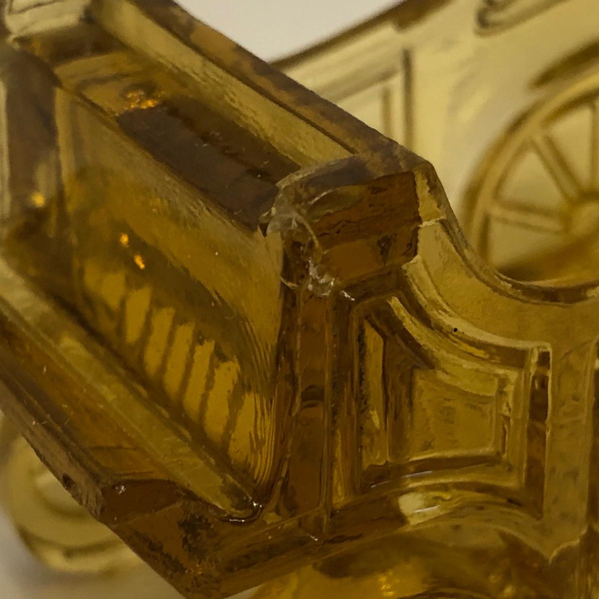 LOT 249M: Vintage Amber Cut Glass - Daisy & Button Crimp Edge Bowl, Daisy & Button Small Footed Bowl, Mid-Century Buggy & Salt Dishes