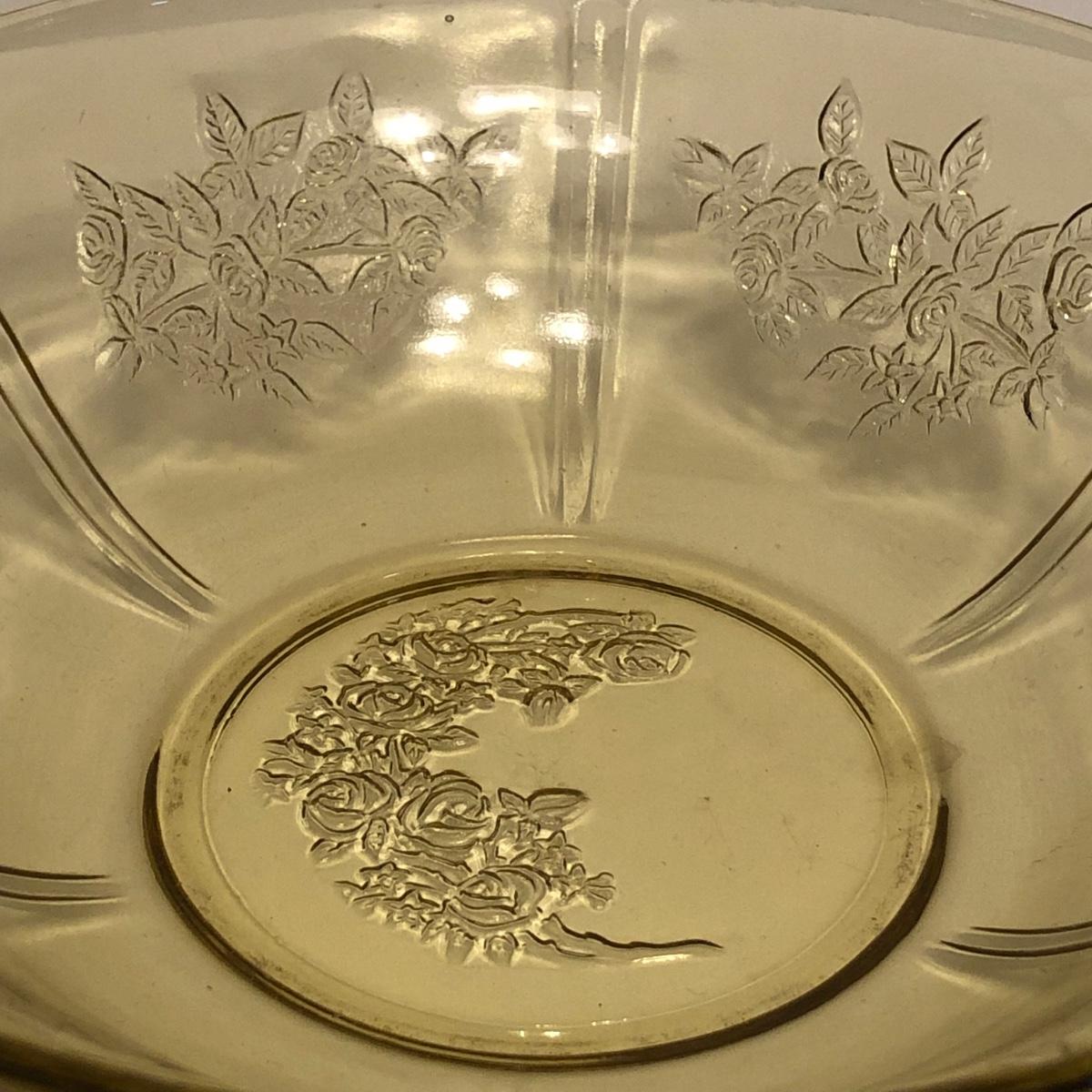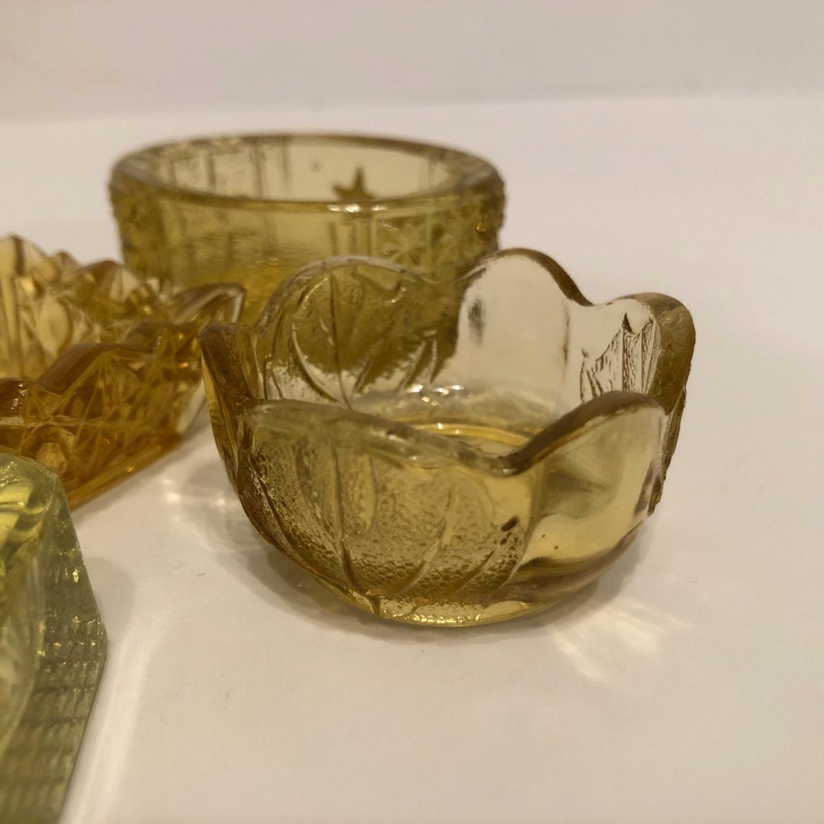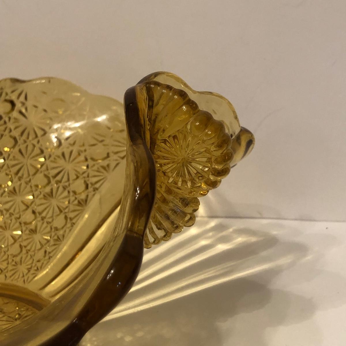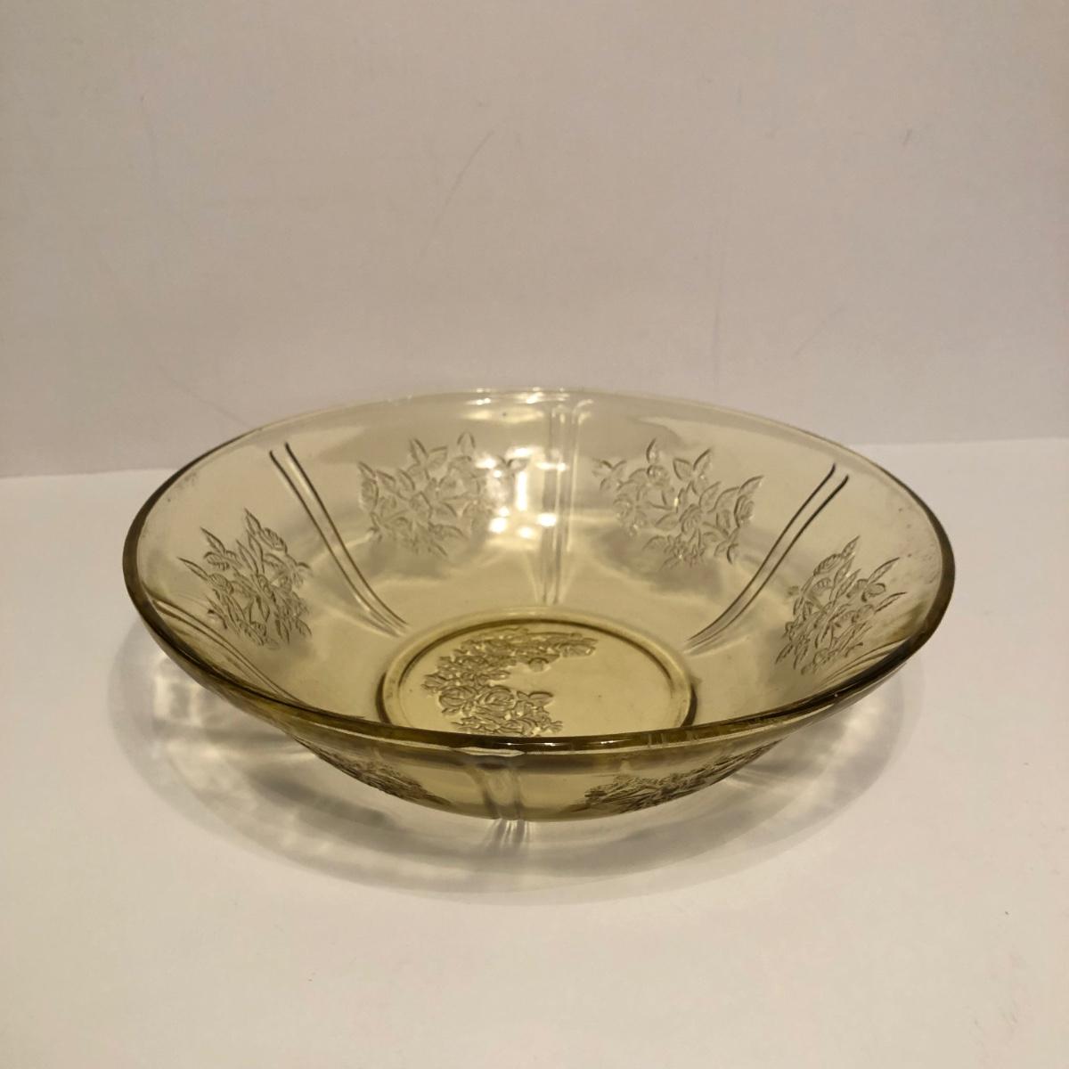 LOT 252M: Vintage Yellow & Amber Glass - Depression Sharon Cabbage Rose Bowl, Daisy & Button Winged Bowl & Salt Dishes