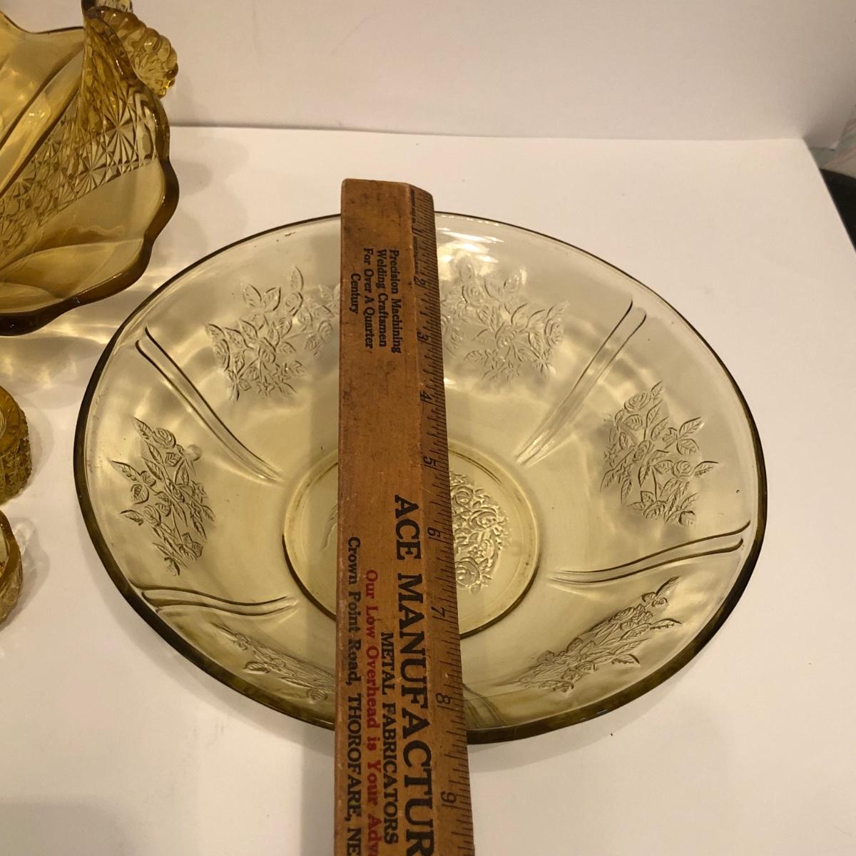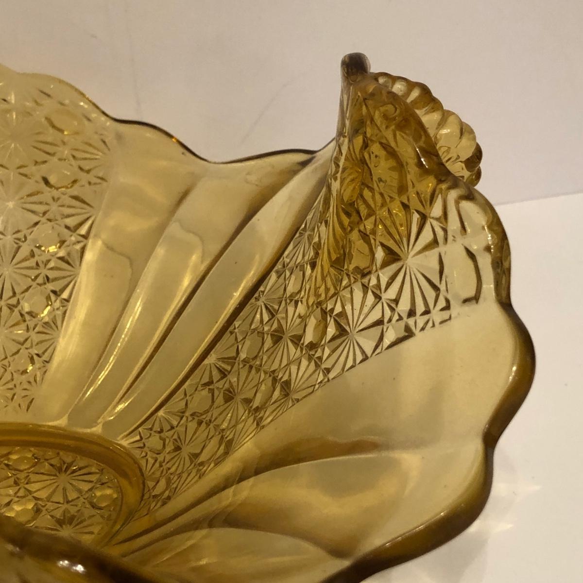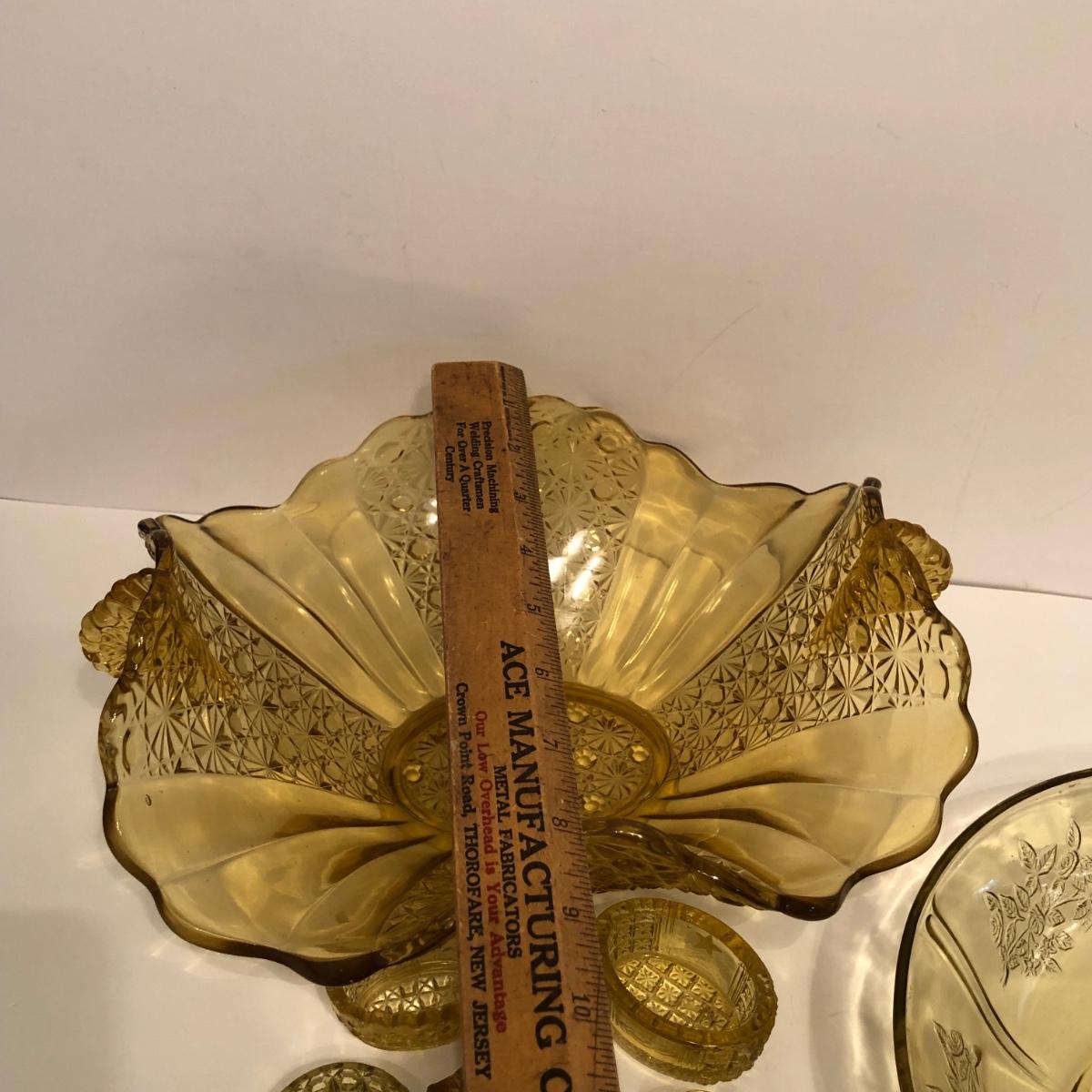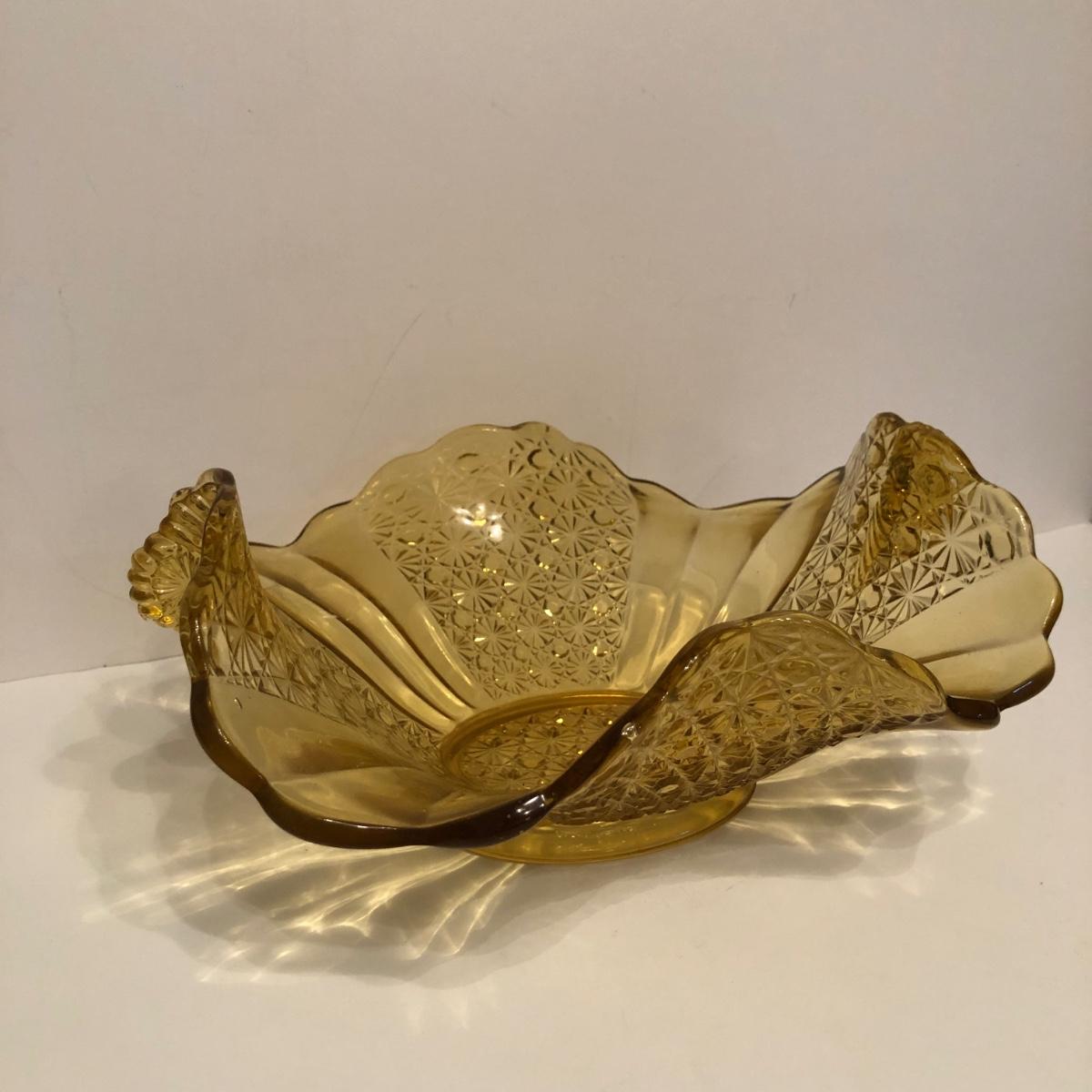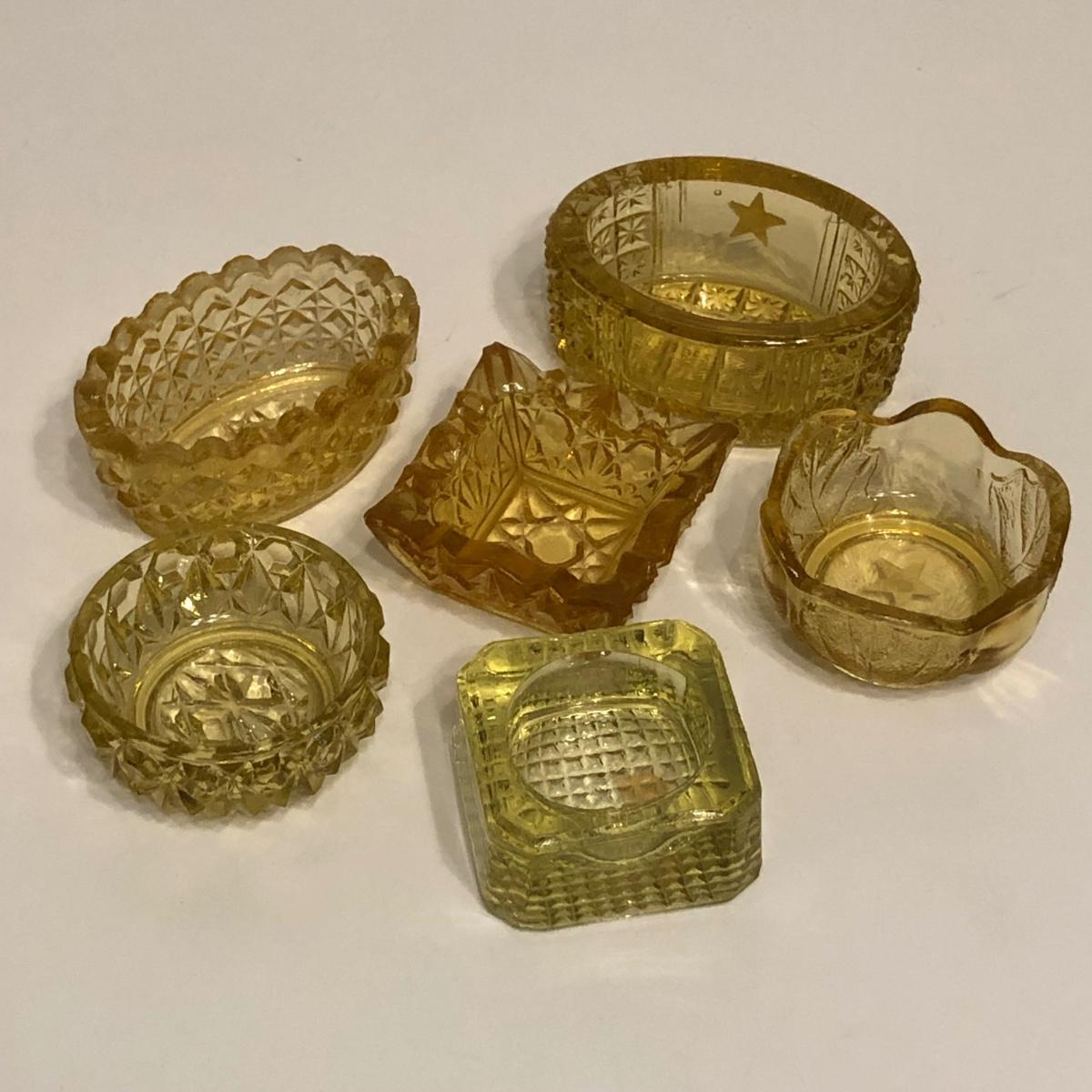 LOT 252M: Vintage Yellow & Amber Glass - Depression Sharon Cabbage Rose Bowl, Daisy & Button Winged Bowl & Salt Dishes