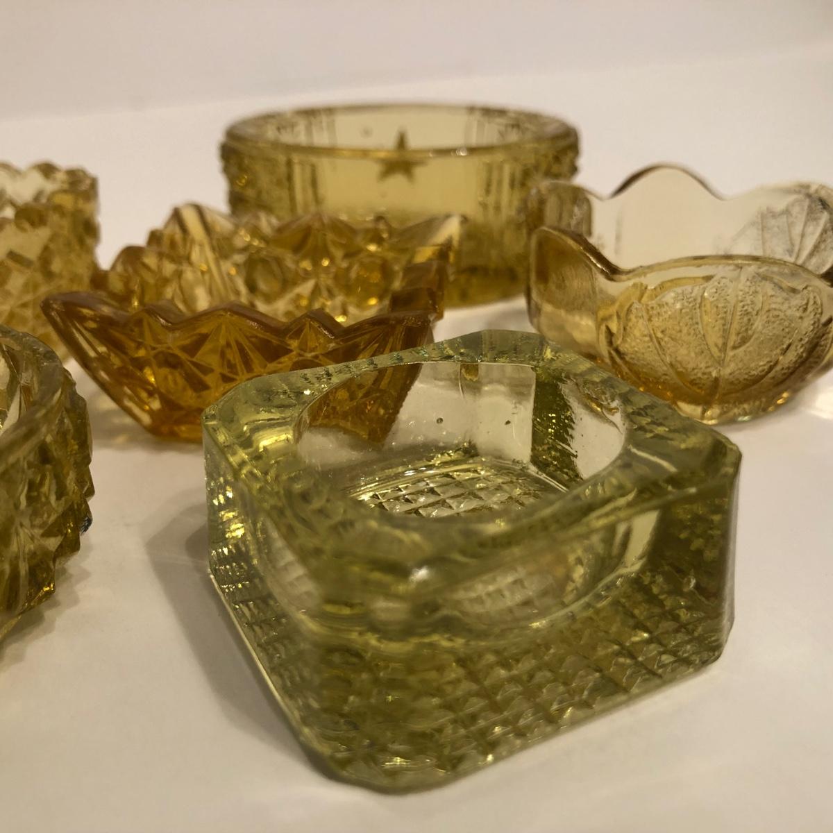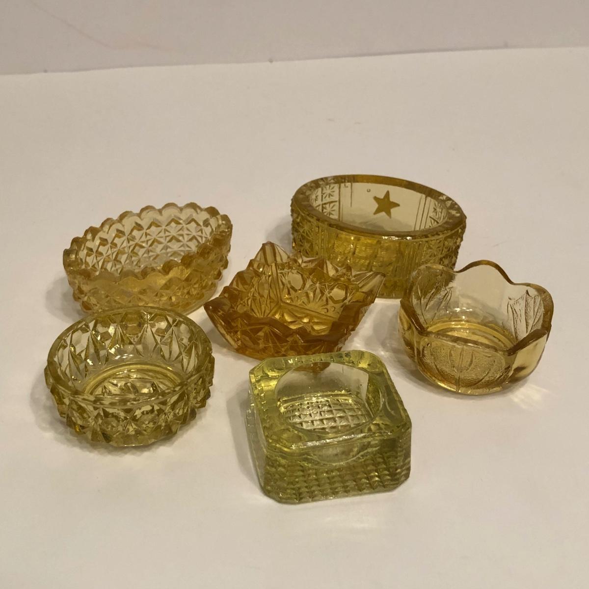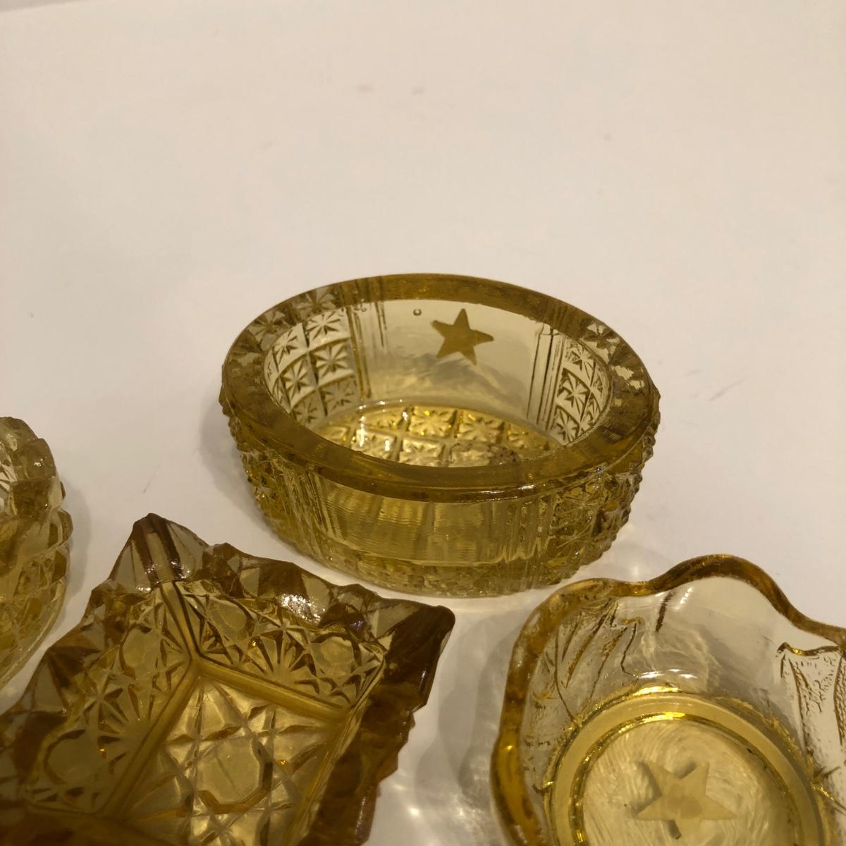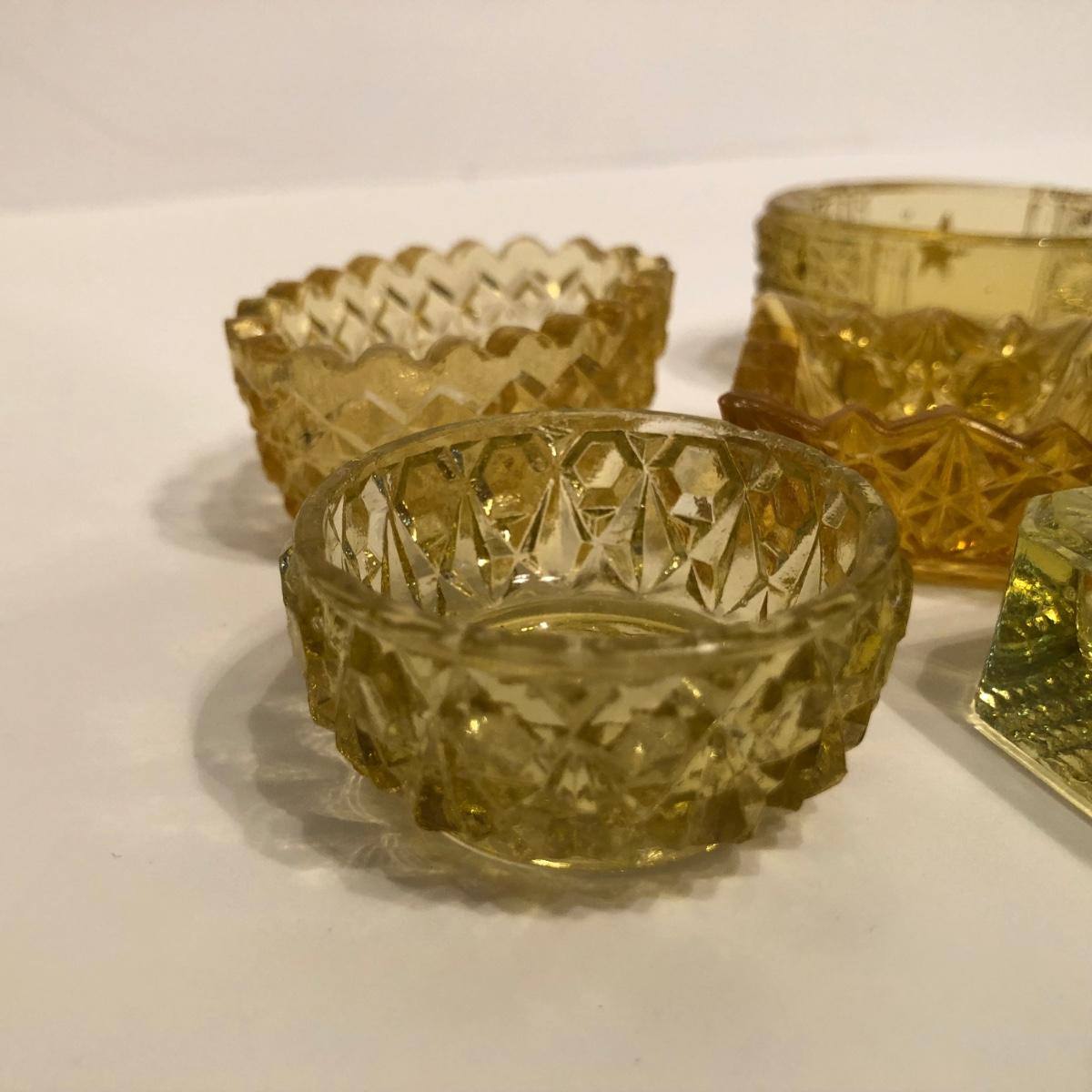 LOT 252M: Vintage Yellow & Amber Glass - Depression Sharon Cabbage Rose Bowl, Daisy & Button Winged Bowl & Salt Dishes