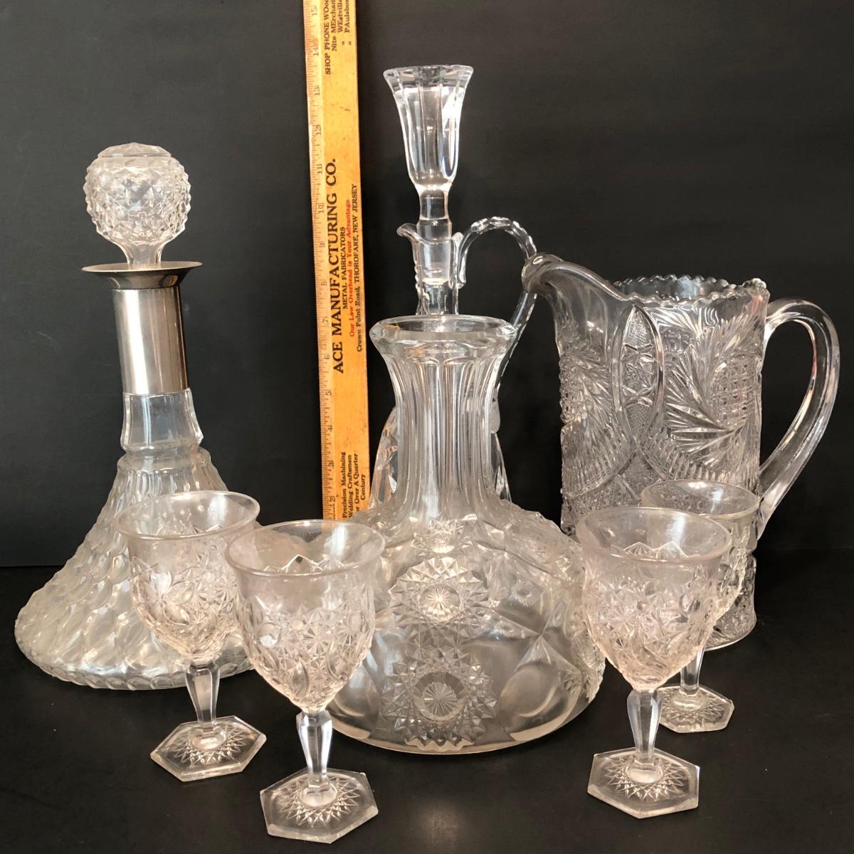 LOT 256M: Cut Crystal Decanters, Pitcher & Glasses
