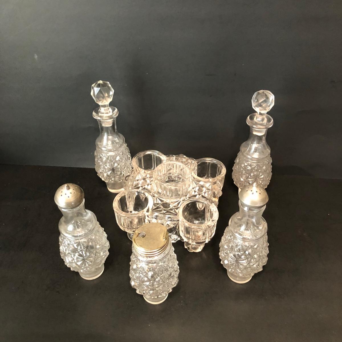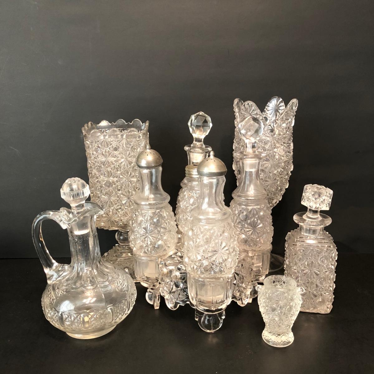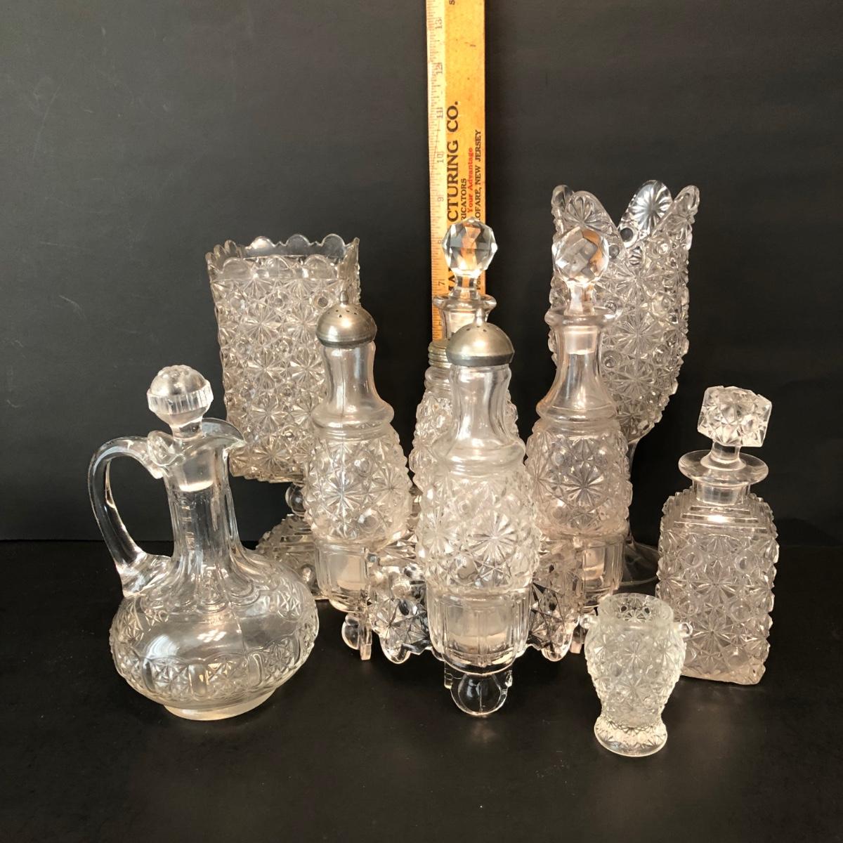 LOT 257M: Daisy & Button Crystal Collection - Condiment Cruet, Spooner, Tulip Shaped Vase & More