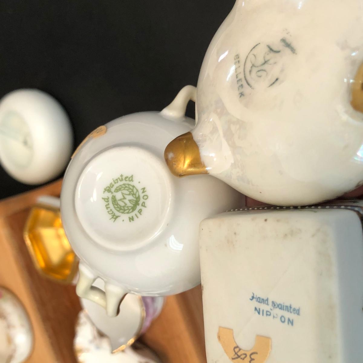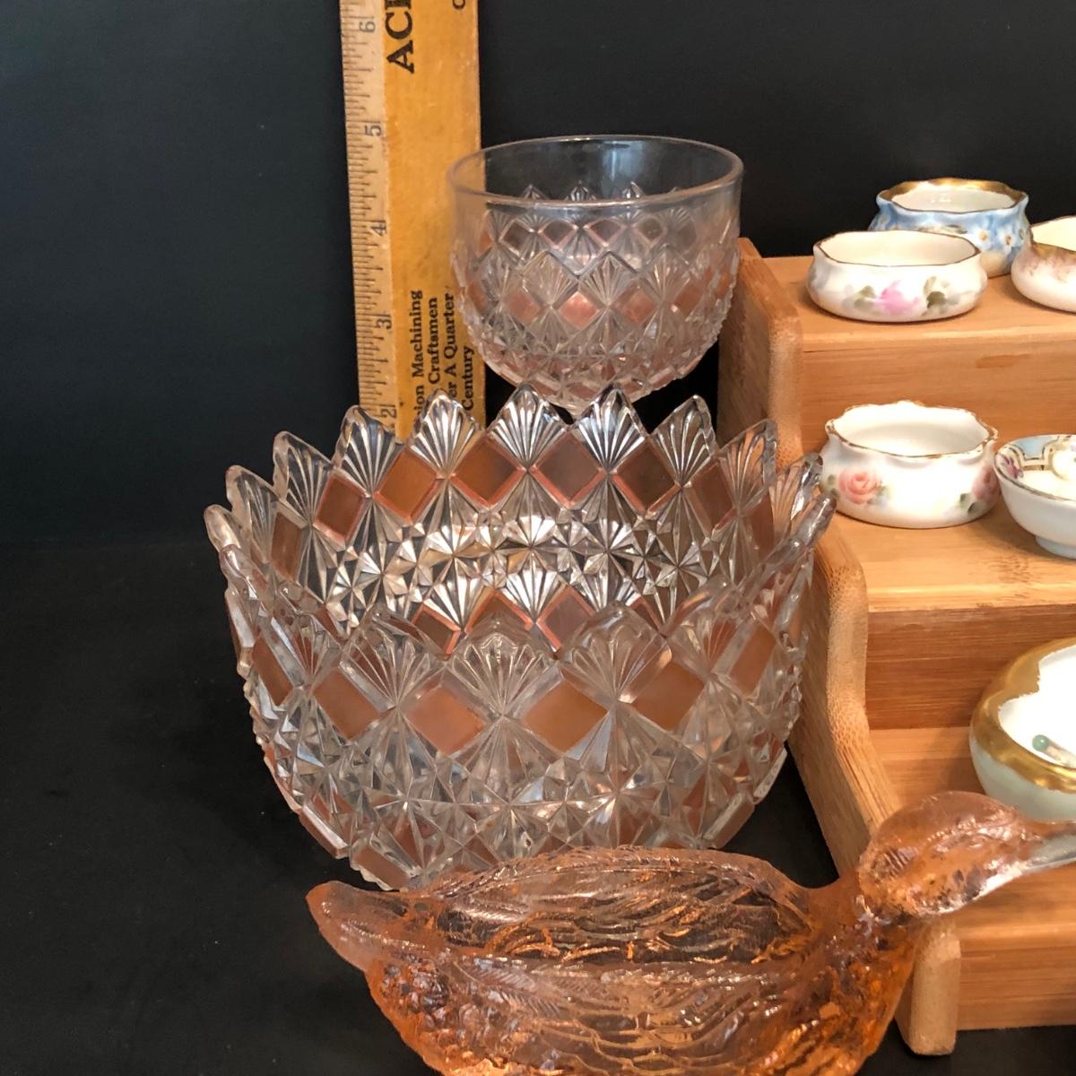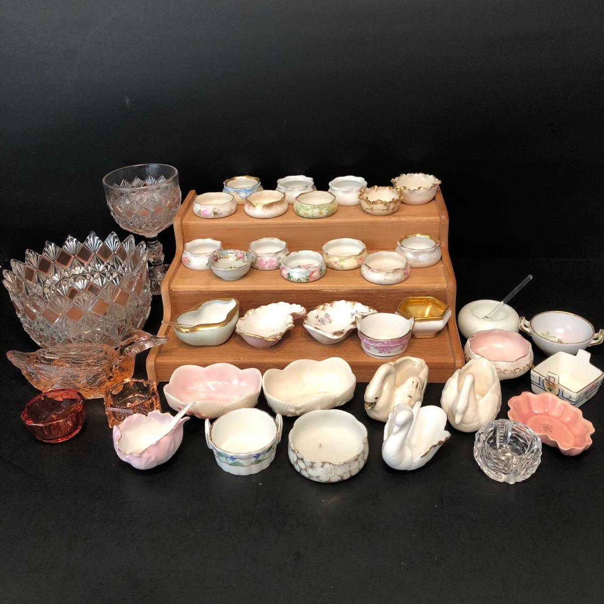 LOT 260M: Vintage Salt Dishes & Pink Glass - Lenox, Belleek, Nippon