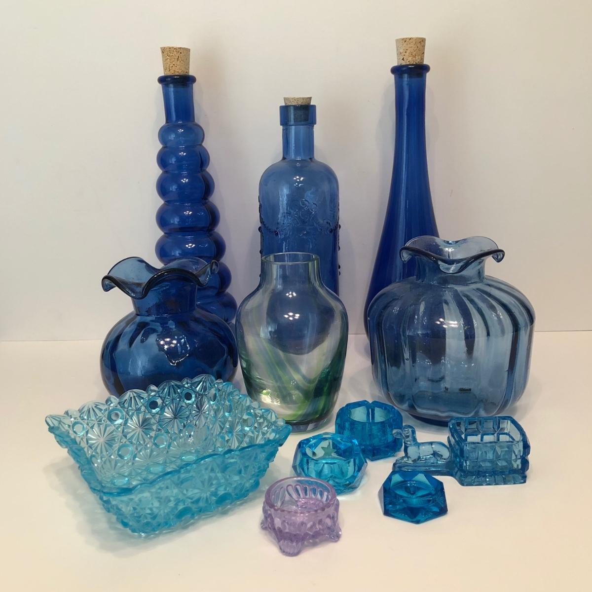LOT 265M: Blue Glass Collection - Bottles, Salt Dishes, Vases & More