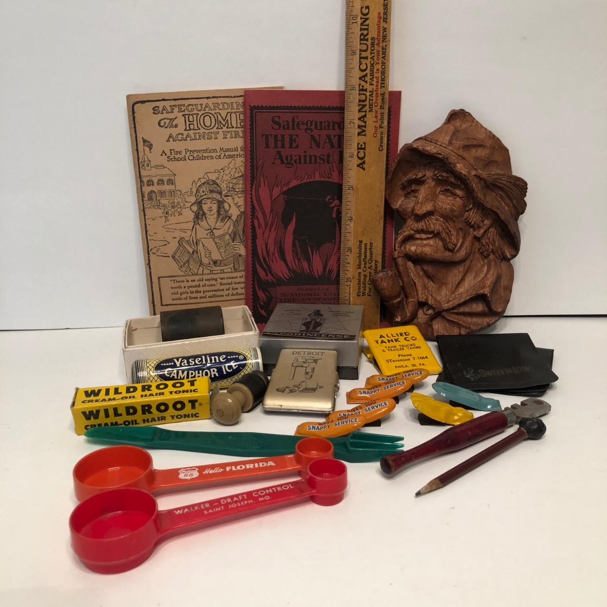 LOT 269M: Vintage Collection - Noise Makers, Wildroot, Wooden Wall Decor & More