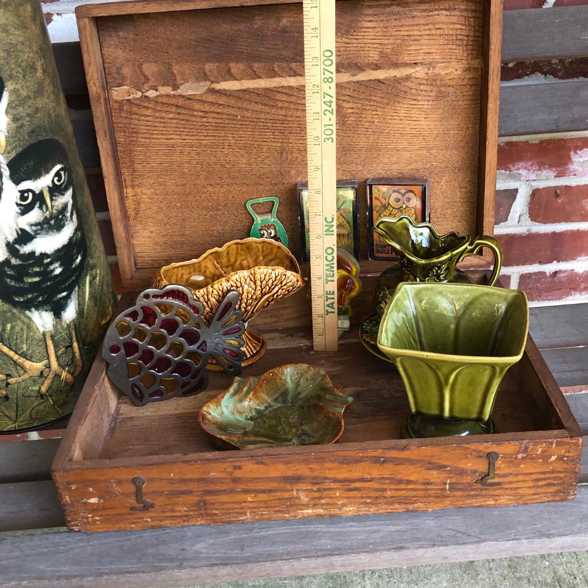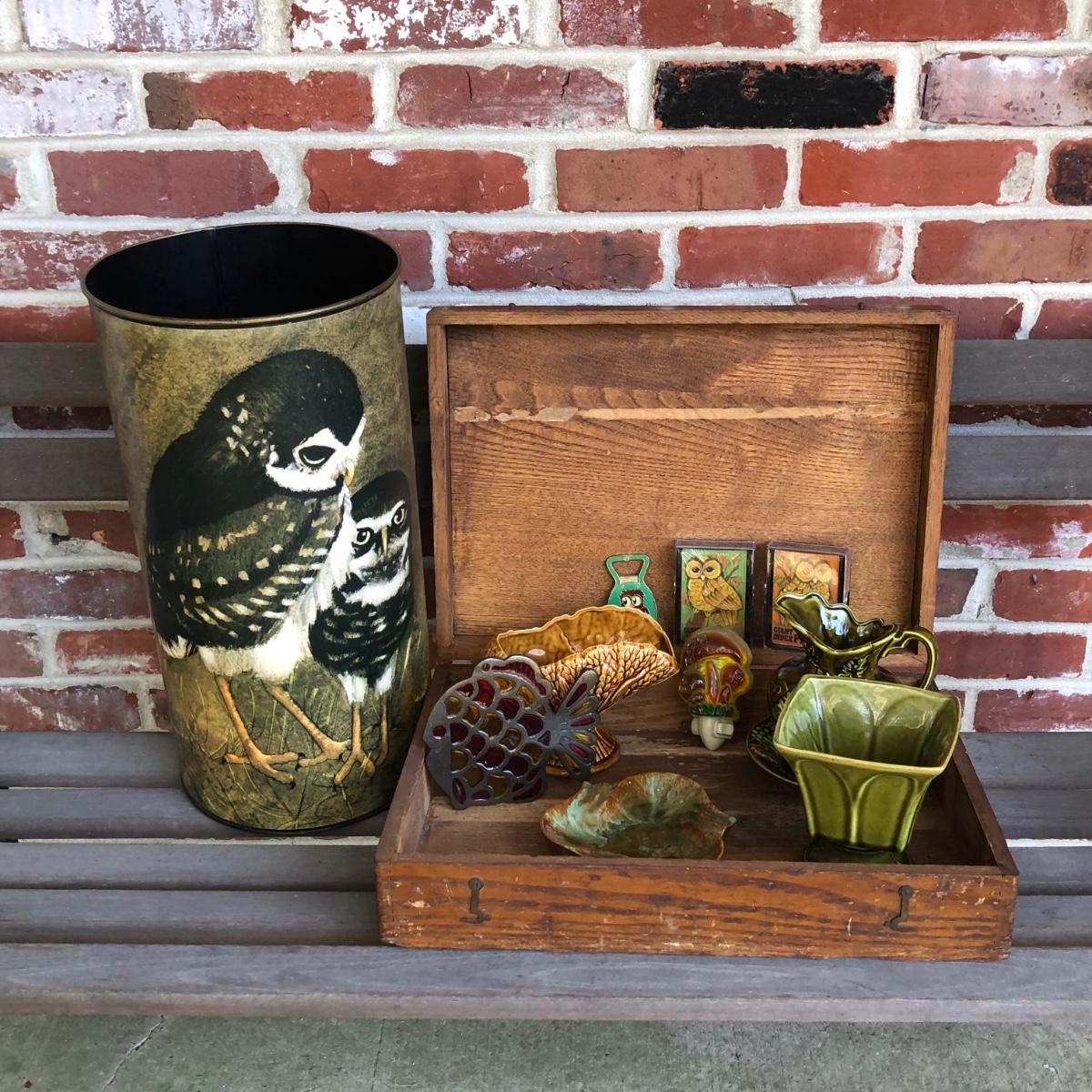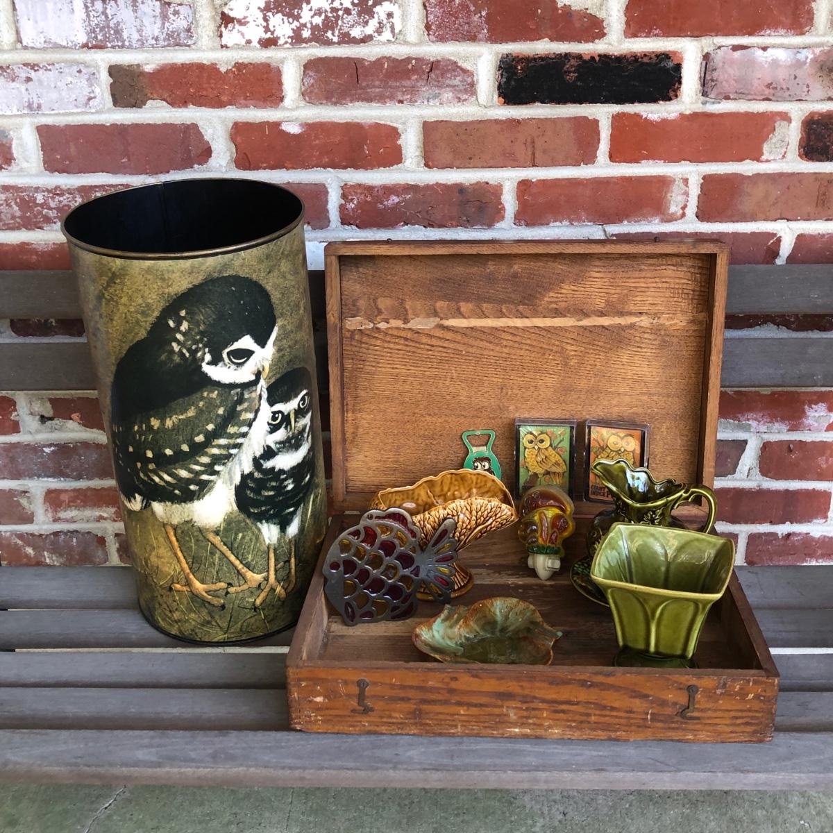 LOT 274M: Vintage Forest Collection - Owl Waste Bin, Pottery, Mushroom Night Light & More