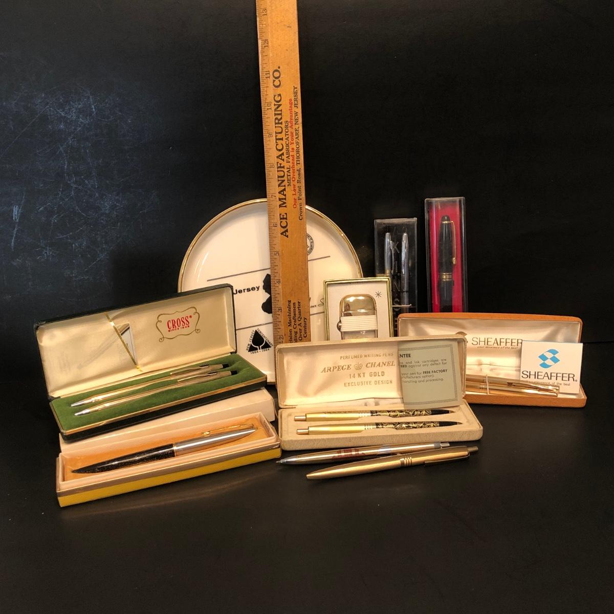 LOT 277M: Vintage Pens & More - Apege Chanel No. 5 14kt Gold Pen Set, Sheaffer, Cross 10kt Gold Pen/Pencil Set & More