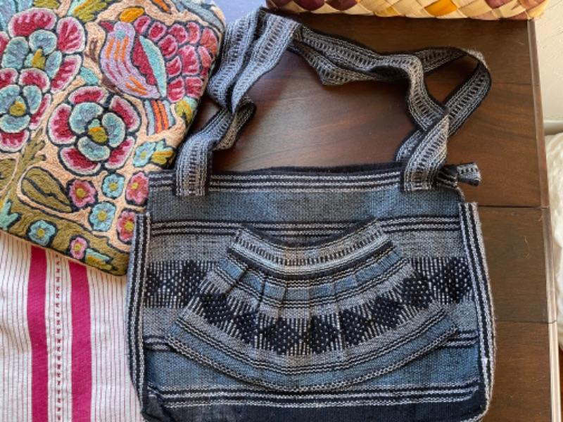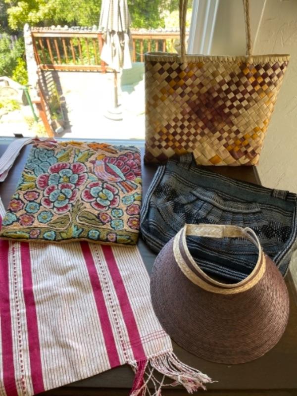 Lot 94BR. Four bags from Mexico, textile and wool), one straw visor and shoulder bag--$40