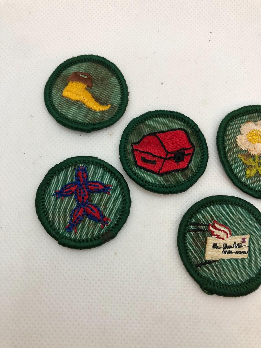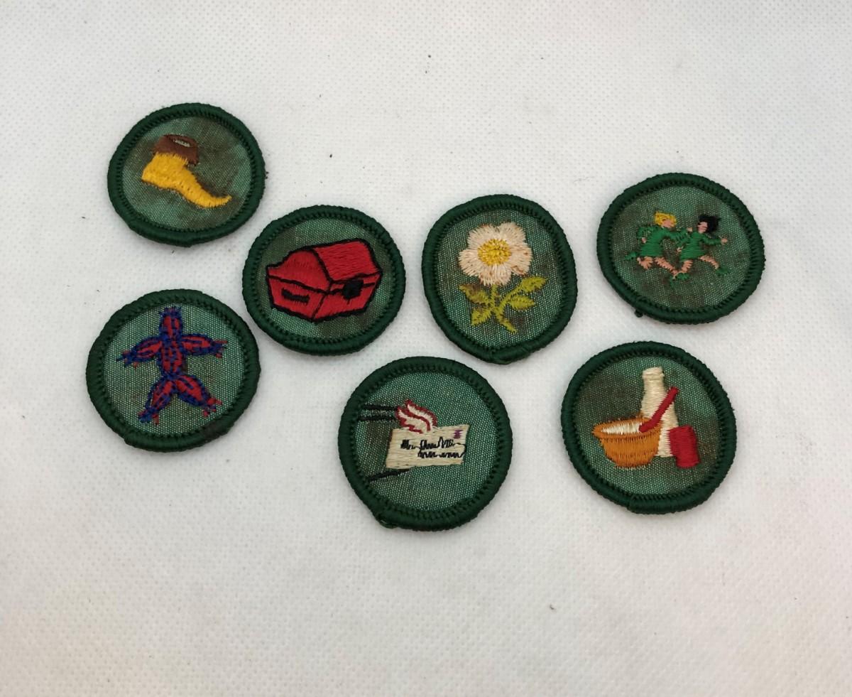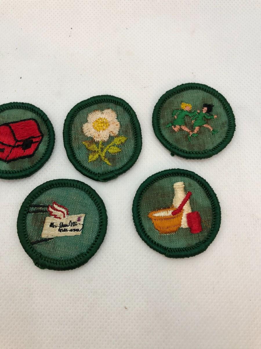 There are (7) badges that the consignor earned as a young girl in the late 1950s.