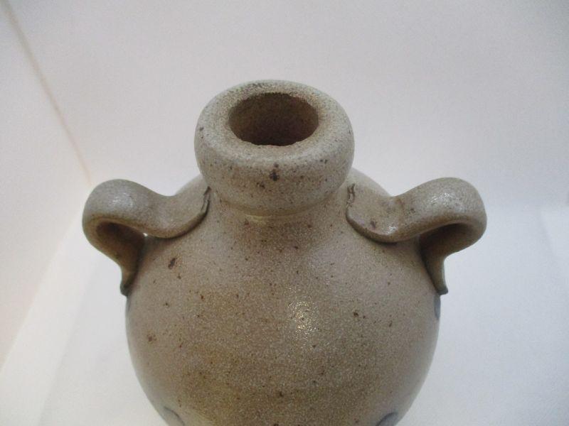 This piece is in excellent condition, but I couldn't tell you what it is for. I thought that maybe the big hole would get a spout (like for drinks or syrup) and then the two other holes are for "breathing" when the liquid is coming out. But I'm really a bit clueless. If you know what it is, please send me a message. It is about 6.5" tall.