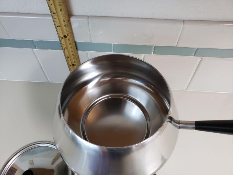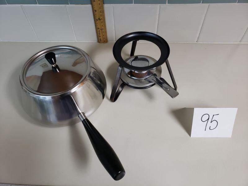 Lot 95: Mid Century Stainless Fondue Pot Made in Switzerland